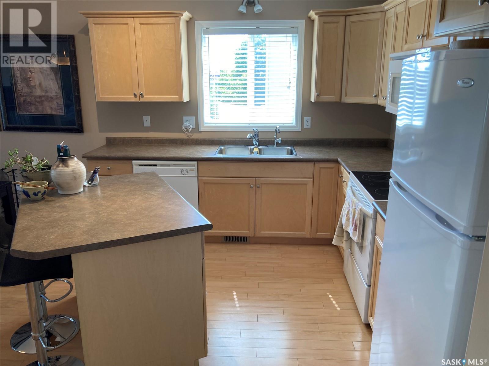 Looking for a great bungalow condo in Regina's Northwest? This move in ready 2 bedroom 2 bath condo is located in Lakeridge Lane Estates and is within close proximity to plenty of amenities, shopping, restaurants, parks and transportation. Nice open plan with vaulted ceiling throughout the main living area. This lovely unit offers Maple kitchen with island, full appliance package, main floor laundry, spacious primary bedroom with full 4 piece bath and walk in closet and direct entry to an insulated garage. Solid and dry basement is open for your development ideas. New roofing and shingles 2022 and new garage door and weather stripping around the the garage door 2022. This great home awaits new owners so come check out what this condo and location have to offer. (id:22211)