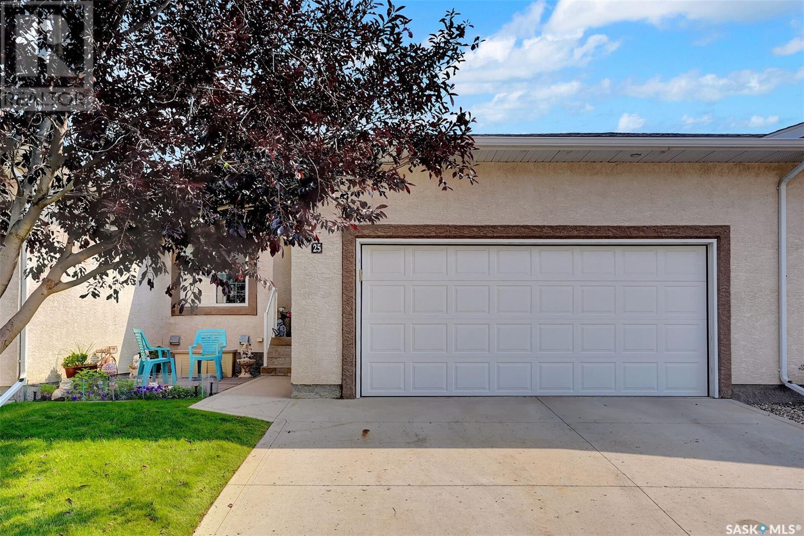 Here is a great opportunity to get into a rare bungalow condo with a double garage and a developed basement in a great area! Welcome to 4425 Nicurity Drive #25! This condo makes every day living easy with a great, functional, bright and open floor plan and is move in ready! As you enter, you are greeted with a good size foyer. Down the hall is access to the double, insulated garage, main bath, and main floor laundry. The main living area boosts an open plan with vaulted ceilings. The kitchen is a great size, has beautiful maple cabinets, and a complete high end appliance package. The dining area overlooks the east facing backyard, perfect for your morning cup of coffee! The living room is a good size and ready for friends to gather. The primary bedroom has a great 4 pc ensuite and walk in closet. The 2nd bedroom is perfect for either a spare bedroom, office, craft room, or work out room. The lower level is super cozy with a large rec room that will easily accomodate the big screen tv, a large den/office/flex room, another 3 pc bath, and great storage. Exterior upgrades include new shingles (2023) and new garage door (2023). The location is very handy being close to Rochdale Blvd that has all your shopping, restaurant, and health care needs. Just unpack and enjoy! (id:22211)