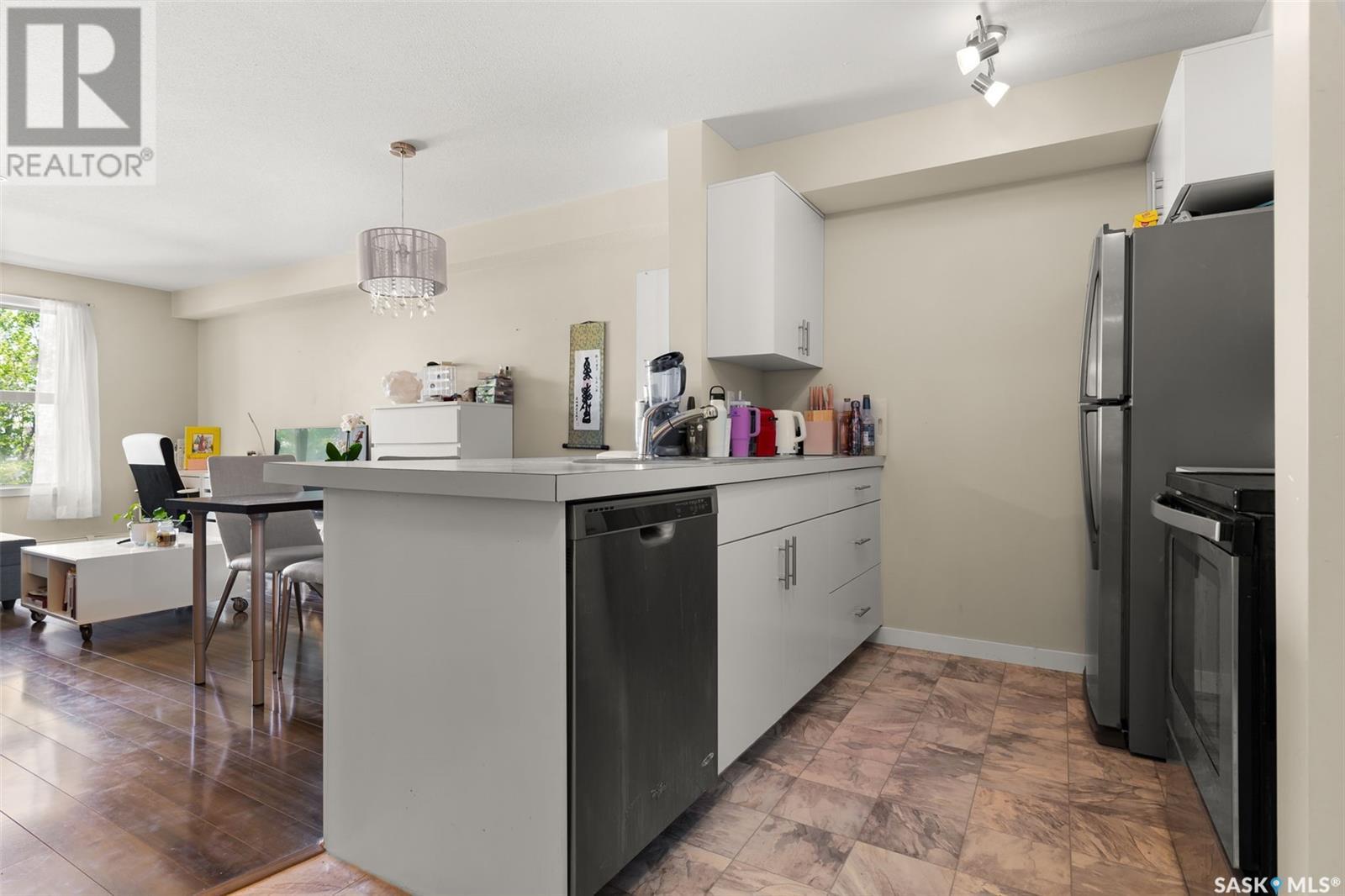 Modern condo living at its finest! This stylish unit offers a convenient layout and contemporary finishes. Enjoy the convenience of being close to amenities such as restaurants, shops, and parks. This sleekly designed condo, offers a young professional, student, or down-sizer, the perfect urban retreat for anyone looking for a blend of comfort and style close to all of Harbour Landing's wonderful amenities. This complex also offers a shared use patio space with natural gas BBQ and natural gas firepit! Perfect for hosting family and friends and taking advantage of Saskatchewan's fabulous summers! (id:22211)