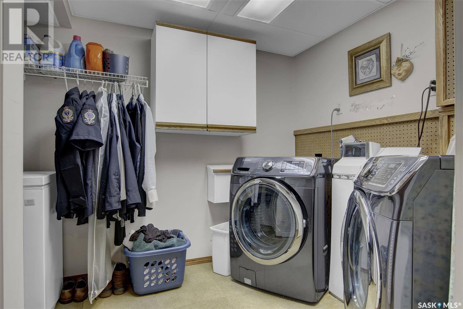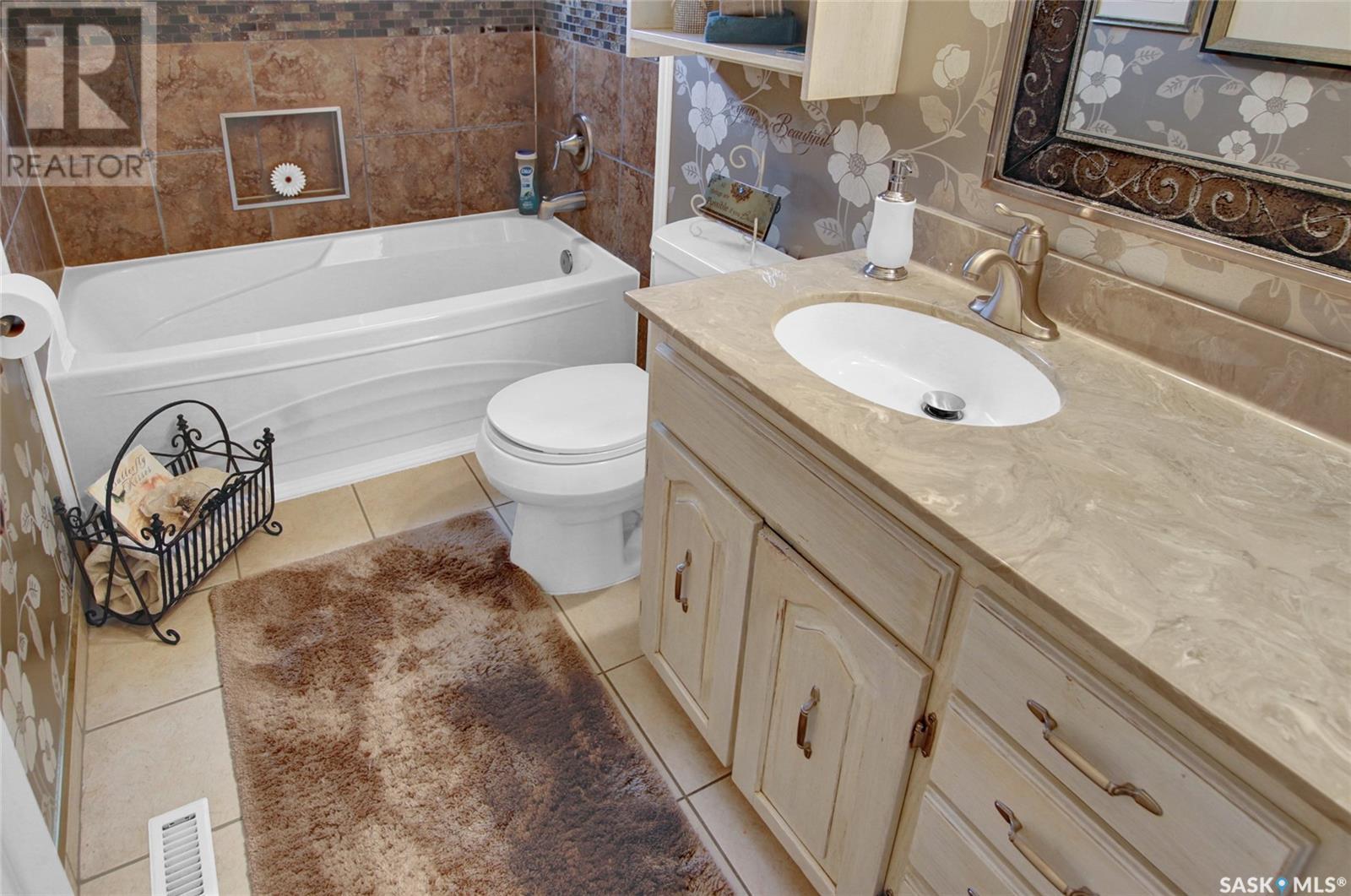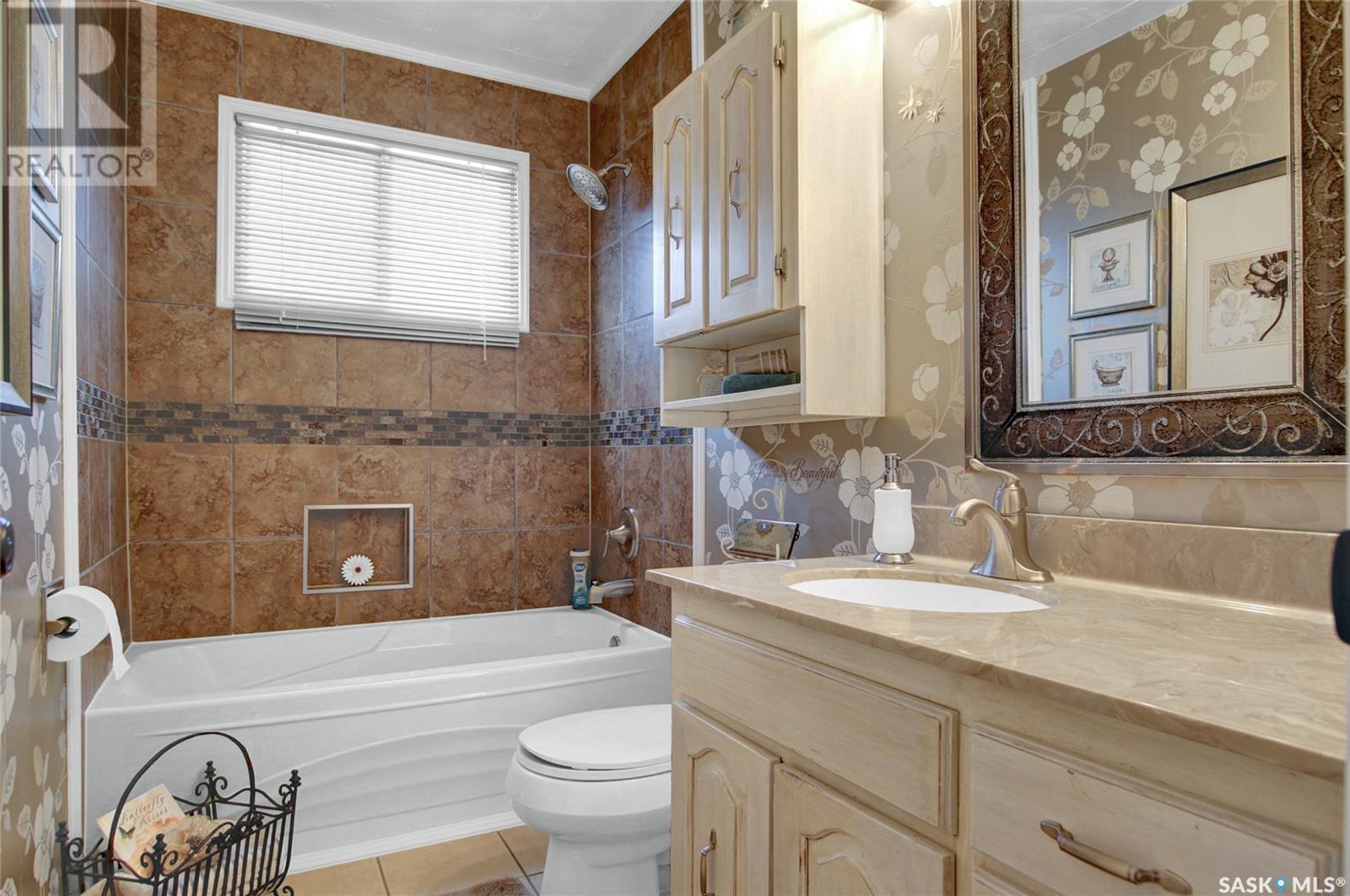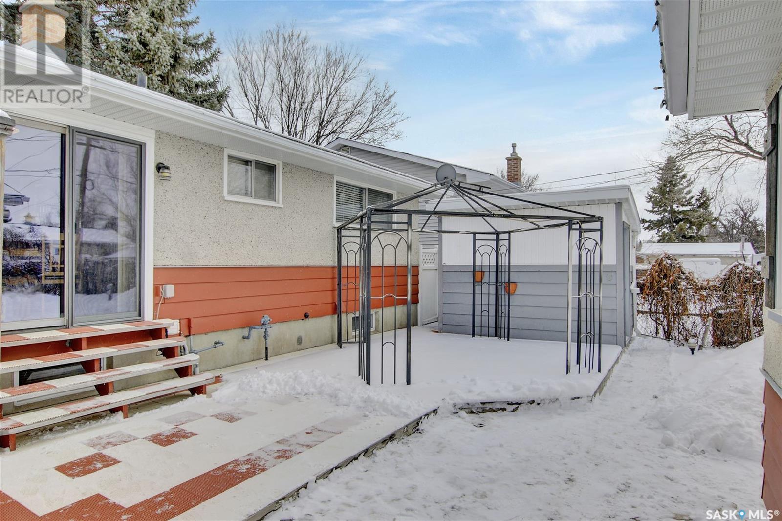 Welcome to this charming 5 bedroom, 2 bathroom bungalow nestled in the heart of Coronation Park. Boasting 1115 square feet of comfortable living space, this home is ideal for families seeking convenience and comfort. Located in a family-friendly neighbourhood, this home is just a stone's throw away from schools, close to many north end amenities, and offers quick access to the ring road. Major upgrades and improvements include shingles, driveway replacement, and central air conditioning. Kitchen has also been tastefully updated, providing a modern and functional space for culinary enthusiasts. The spacious living room is perfect for relaxing or entertaining guests. Three good size bedrooms and a lovely 4 piece bath complete the main level. The developed basement features some new carpet and paint, adding a fresh and inviting touch to the space. Cozy rec room, two additional large bedrooms (windows may not meet current egress), storage area and laundry room, and a 3 piece bath finish off the lower level. Step outside and discover the mature backyard oasis, complete with a deck space, patio area, tiki bar, storage sheds, and a gazebo, perfect for outdoor entertaining and relaxation. The 26x30 garage is fully insulated and heated, providing ample space for parking and storage (cabinets and work bench not included). A hobbyists dream space - great for woodworking projects, etc. Additional parking space is available, making this home perfect for families with multiple vehicles. Don't miss out on this wonderful opportunity! Contact sales agent for more info. (id:22211)
