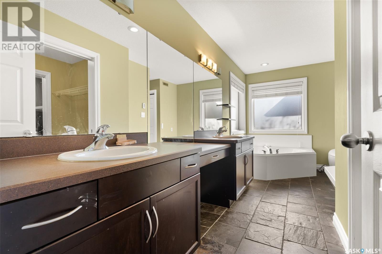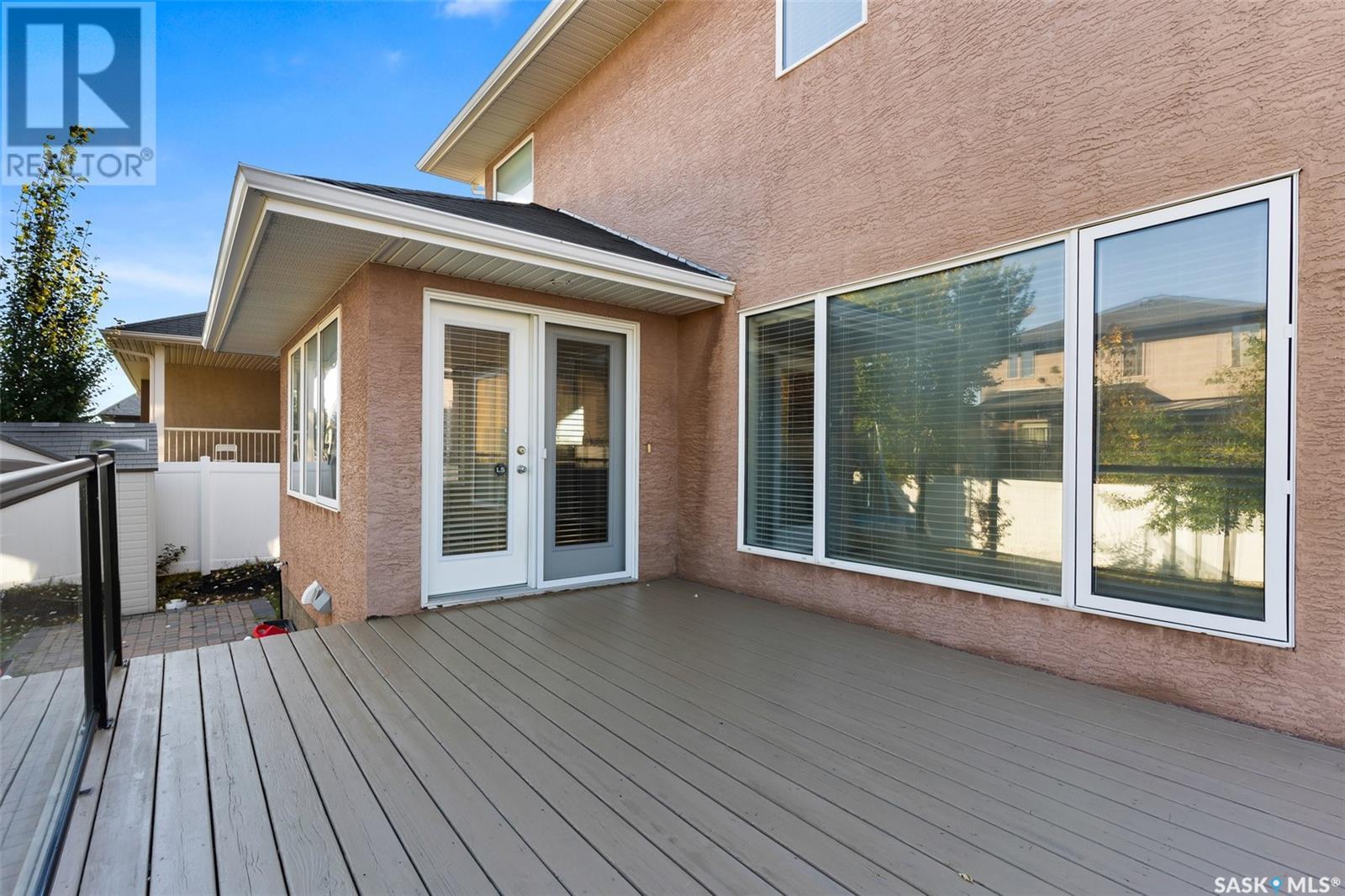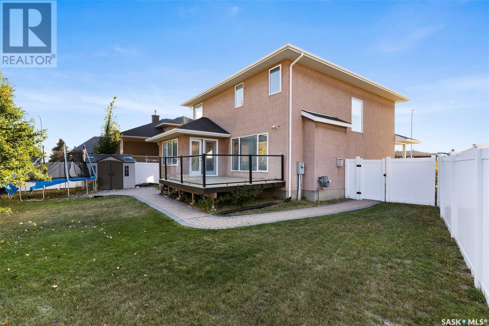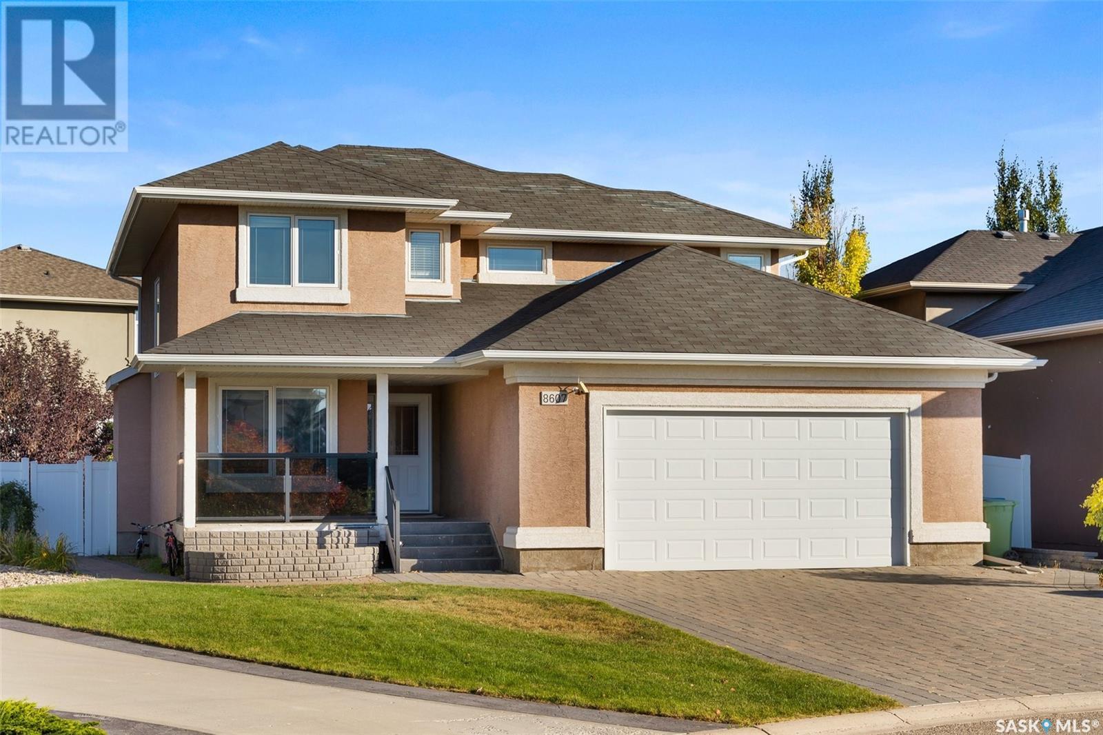 Welcome to 8607 Wascana Gardens Lane, located in desirable Wascana View. Residents of this tranquil neighbourhood enjoy an extensive park and trail system, including McKell Wascana Conservation Park. Arcola Avenue provides easy access to the Ring Road and Regina Bypass, as well as all east Victoria Avenue amenities. This 1996 square foot 2 story has great curb appeal with a 24x25 attached garage, and front deck with glass railing. The main foyer is spacious with tile flooring, leading to a den looking out to the front of the home, as well as the living room with hardwood flooring and a gas fireplace feature wall. The spacious kitchen offers hardwood flooring, granite countertops, espresso cabinets and drawers, a center island with built-in storage, and pantry. The dining area is surrounded by windows, with French-style patio doors that lead to the deck with aluminum and glass railing. A 2-piece bath completes the main floor. Upstairs, the primary bedroom features a spacious walk-in closet, and a 4-piece ensuite with soaker tub. This level also boasts two sizable bedrooms with walk-in closets, laundry, and a large 4-piece main bath. The basement features a large recreation room, den, 3-pc bath, and utility room. Mature trees offer privacy in the fully landscaped back yard. Value added features include all appliances, window coverings, alarm system, natural gas bbq hookup, central A/C, and central vac. Call your agent to schedule a showing today. (id:22211)