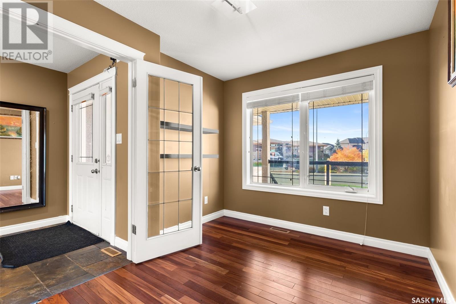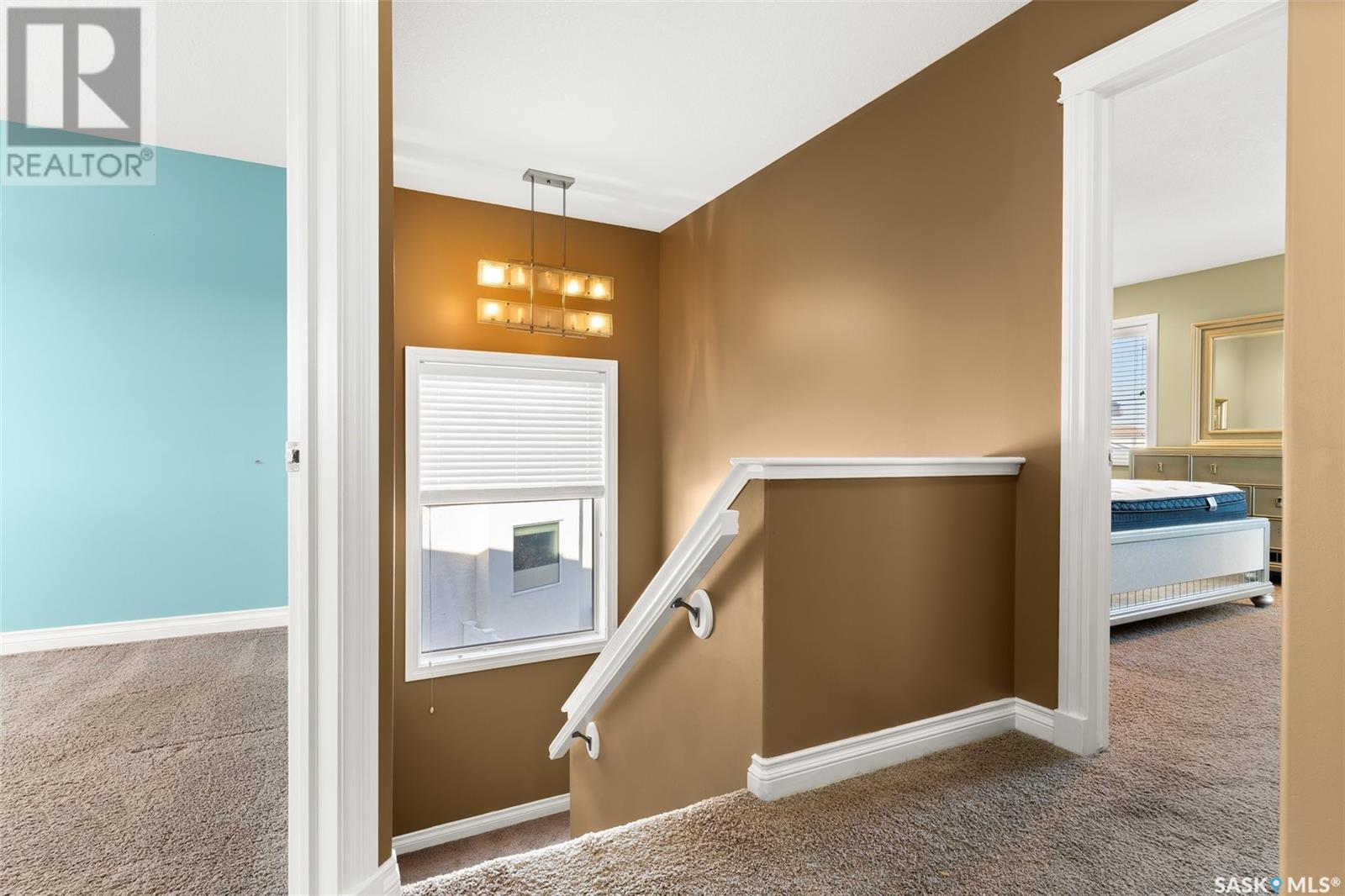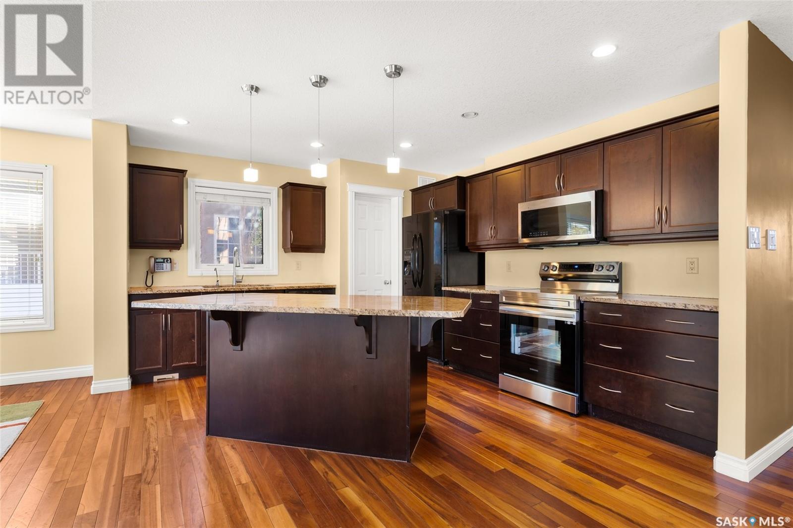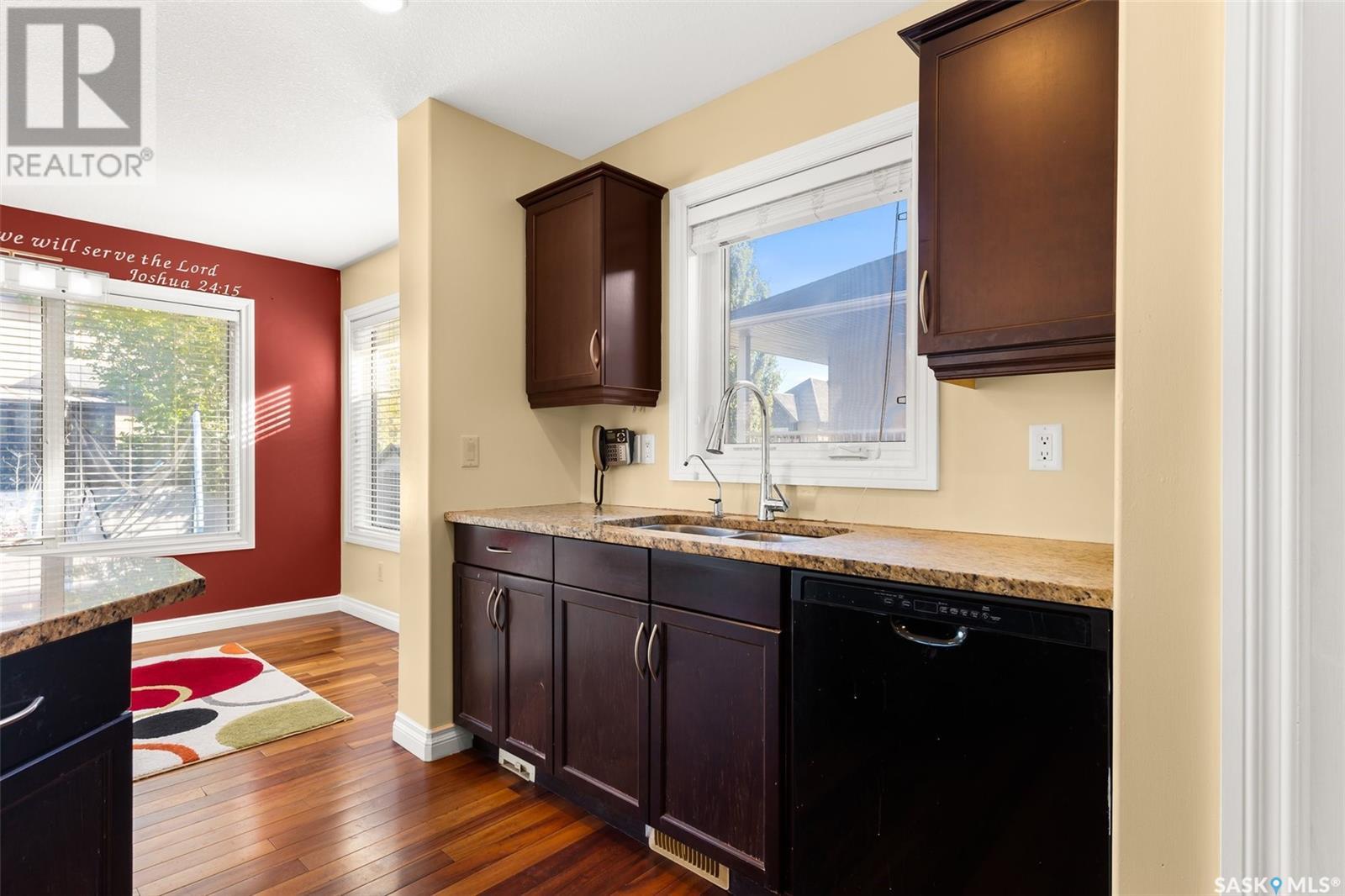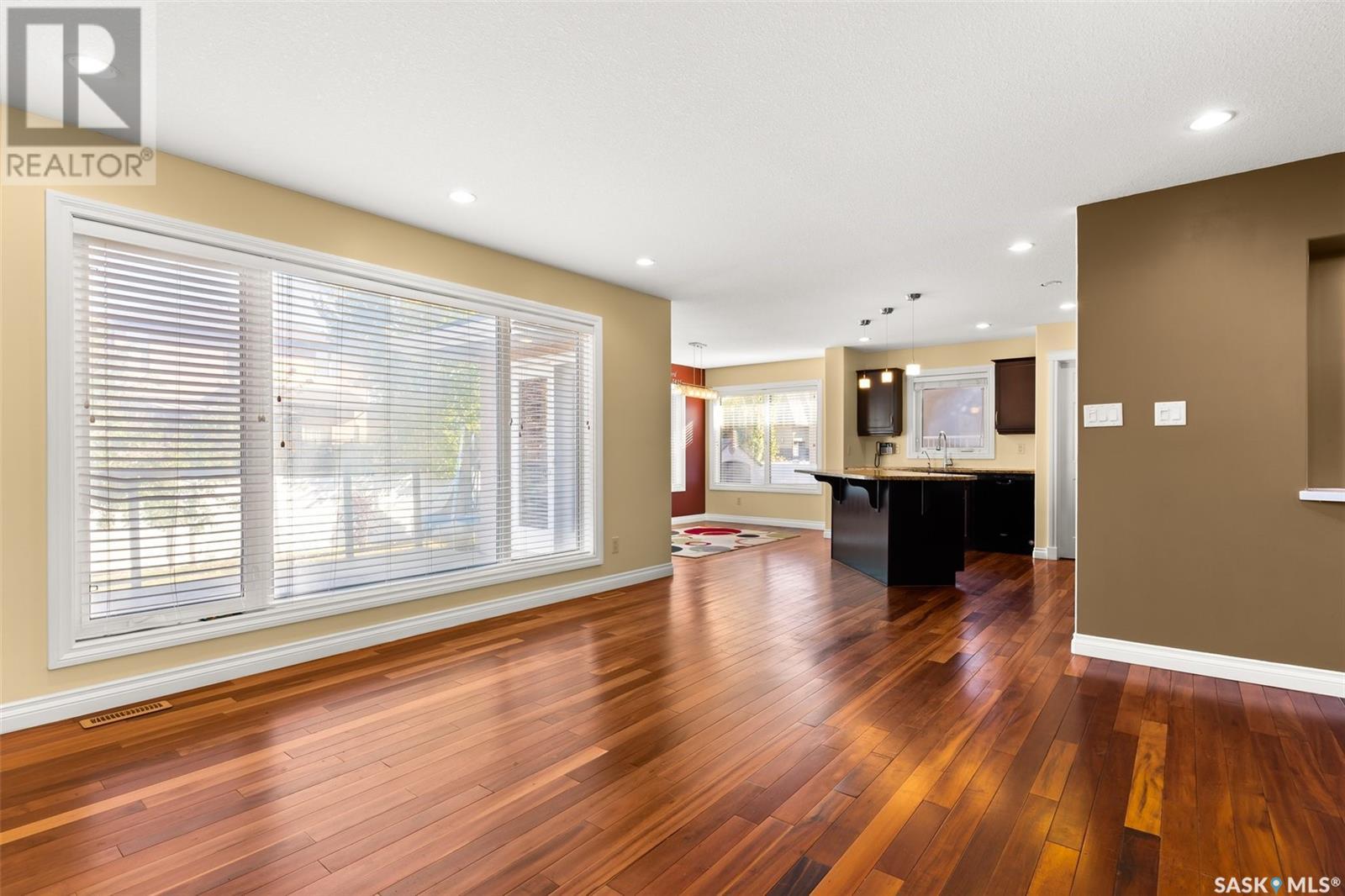 Welcome to 8607 Wascana Gardens Lane, located in desirable Wascana View. Residents of this tranquil neighbourhood enjoy an extensive park and trail system, including McKell Wascana Conservation Park. Arcola Avenue provides easy access to the Ring Road and Regina Bypass, as well as all east Victoria Avenue amenities. This 1996 square foot 2 story has great curb appeal with a 24x25 attached garage, and front deck with glass railing. The main foyer is spacious with tile flooring, leading to a den looking out to the front of the home, as well as the living room with hardwood flooring and a gas fireplace feature wall. The spacious kitchen offers hardwood flooring, granite countertops, espresso cabinets and drawers, a center island with built-in storage, and pantry. The dining area is surrounded by windows, with French-style patio doors that lead to the deck with aluminum and glass railing. A 2-piece bath completes the main floor. Upstairs, the primary bedroom features a spacious walk-in closet, and a 4-piece ensuite with soaker tub. This level also boasts two sizable bedrooms with walk-in closets, laundry, and a large 4-piece main bath. The basement features a large recreation room, den, 3-pc bath, and utility room. Mature trees offer privacy in the fully landscaped back yard. Value added features include all appliances, window coverings, alarm system, natural gas bbq hookup, central A/C, and central vac. Call your agent to schedule a showing today. (id:22211)