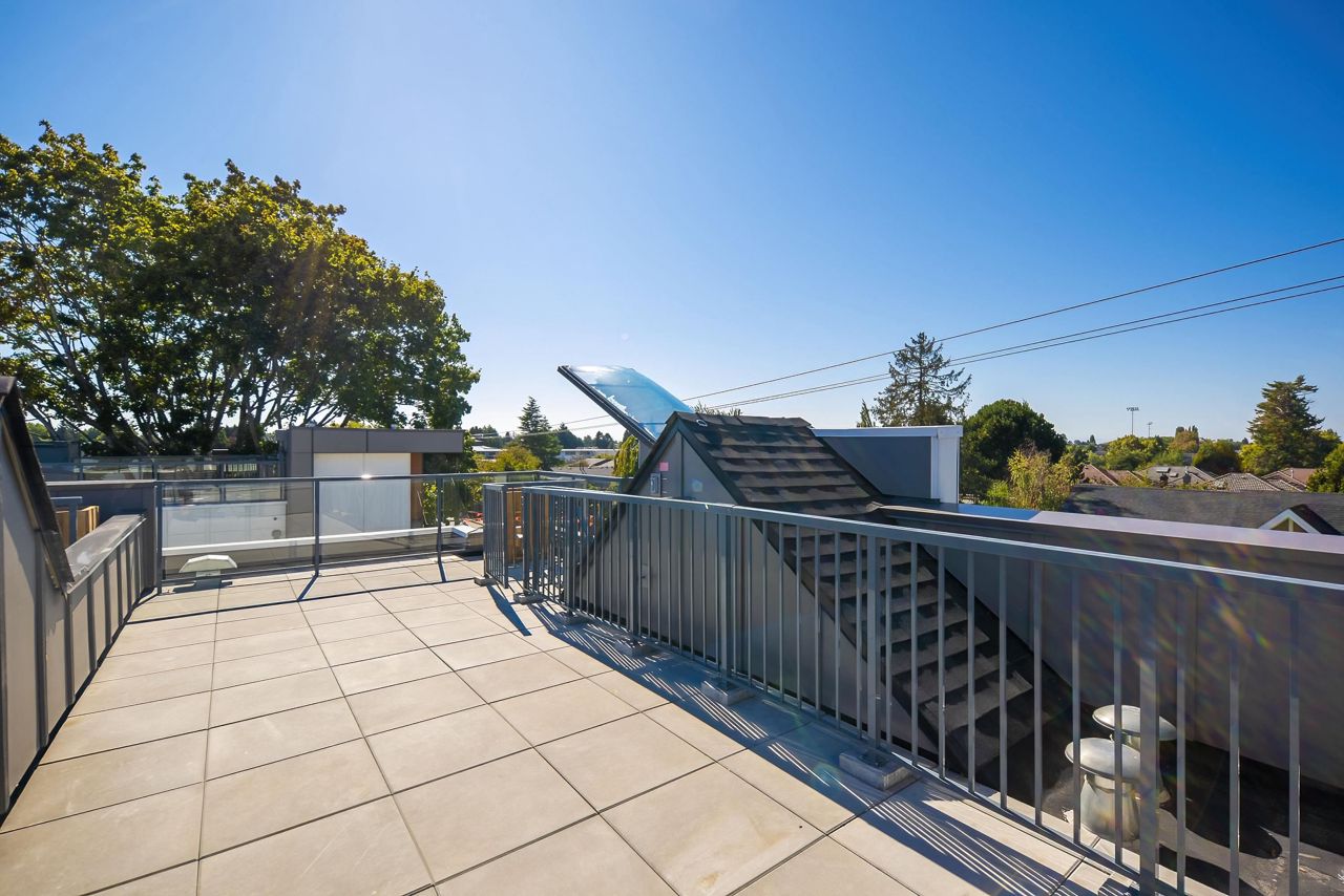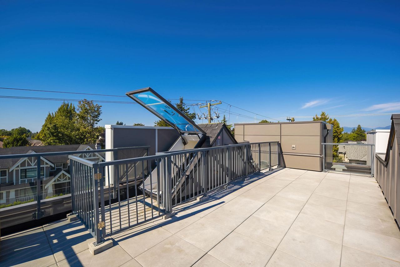 Luxurious Corner Unit Located in Richmond's prestigious Broadmoor area! An incredible opportunity to have this West Coast Modern Style unit with 3 beds & 3 baths, along with an exceptional ROOF TOP DECK over 300 sqft and Wrap-up PRIVATE YARD over 1000 sqft. This stunning and spacious home offers an open layout, a breathtaking 24's high stairwell, and independent balcony. The lux interior features the GERMAN-DESIGNED and CRAFTED Bauformat kitchens cabinetry using luxurious premium materials and finishes. The multi-functional island with versatile quartz countertop. The Liebherr fridge, Porter & Charles cooktop and oven, Blomberg dishwasher, Panasonic Microwave, EV charger and more luxurious features. Located in just minutes away Steveston-London secondary and Maple Lane Elementary.