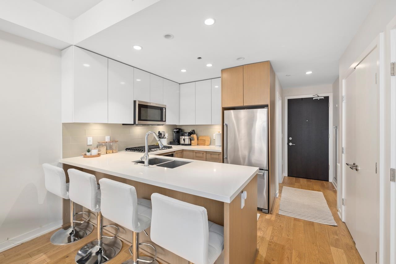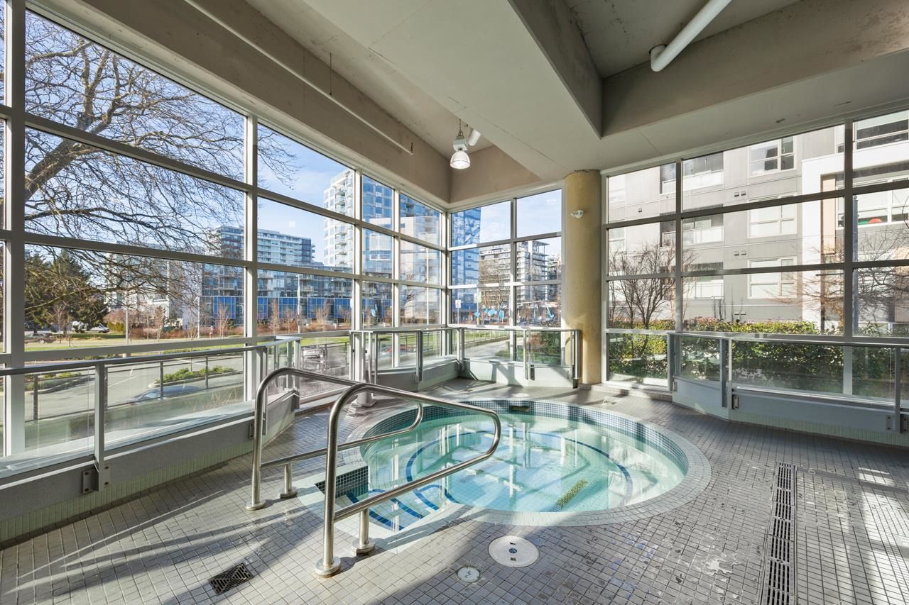 Rarely available one bedroom and den at RIVA 3 by ONNI. Conveniently located in one of the most desirable neighborhoods in Richmond near outstanding restaurants, shopping & transit. Only steps from the Canada Line Station, banks, T &T supermarket, coffee shops and both Lansdowne & RC Mall. Open concept living features Air Conditioning, premium KitchenAid S/S appl, Gas stove, Stone counters, engineered h/w floors & 9' ceilings + serene patio to enjoy your morning coffee. Feels like a townhouse w/ its own PRIVATE ENTRANCE. Great amenities center w/ indoor Pool & Hot tub, Sauna, Steam room, Theatre room, Party room, Fitness center, Concierge service and much more! Future Lulu Island city Park just step away!! Don't miss it! 1 Parking & 1 storage locker.