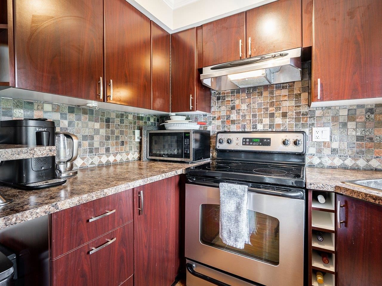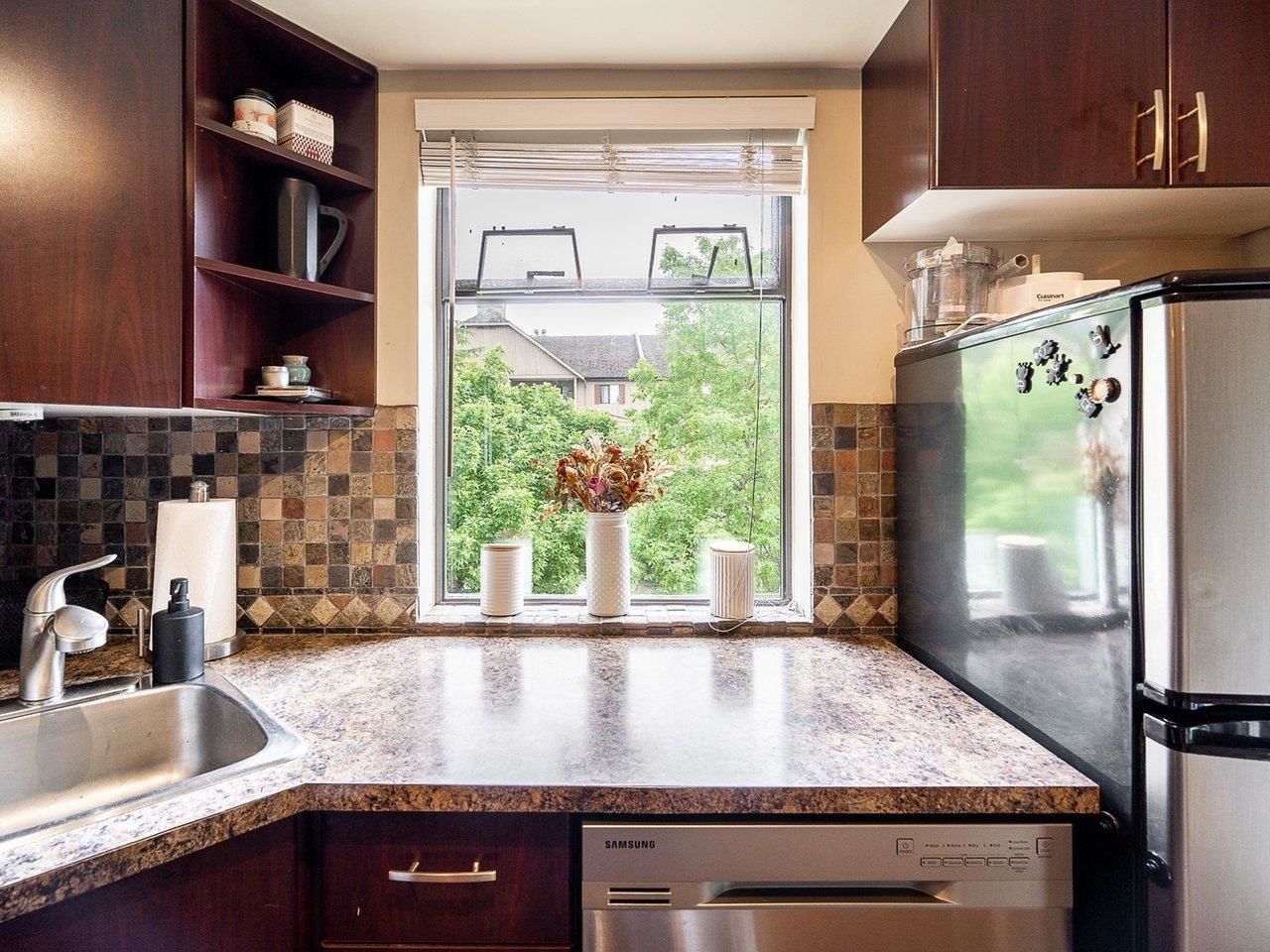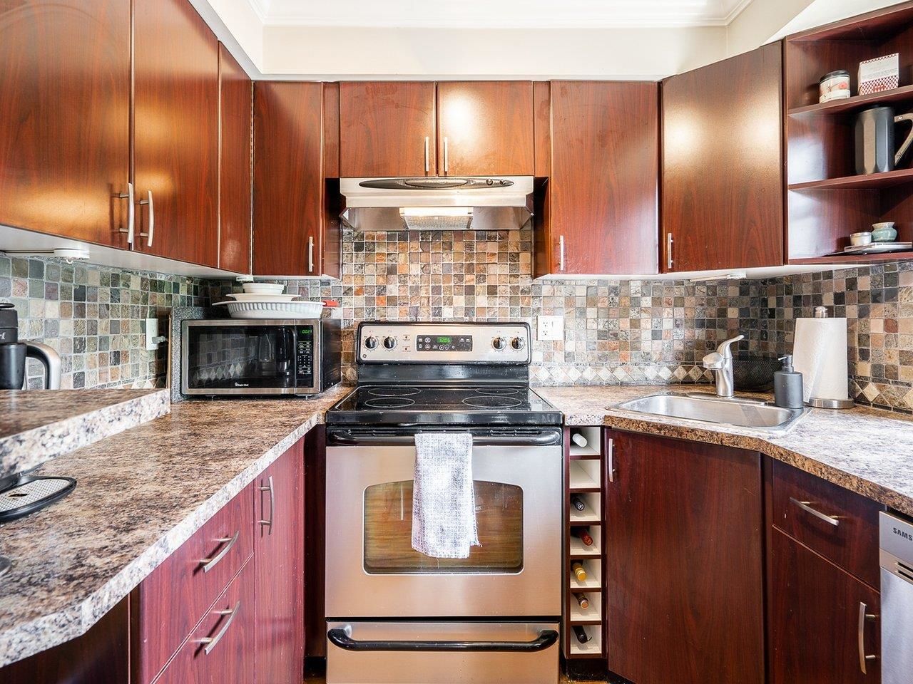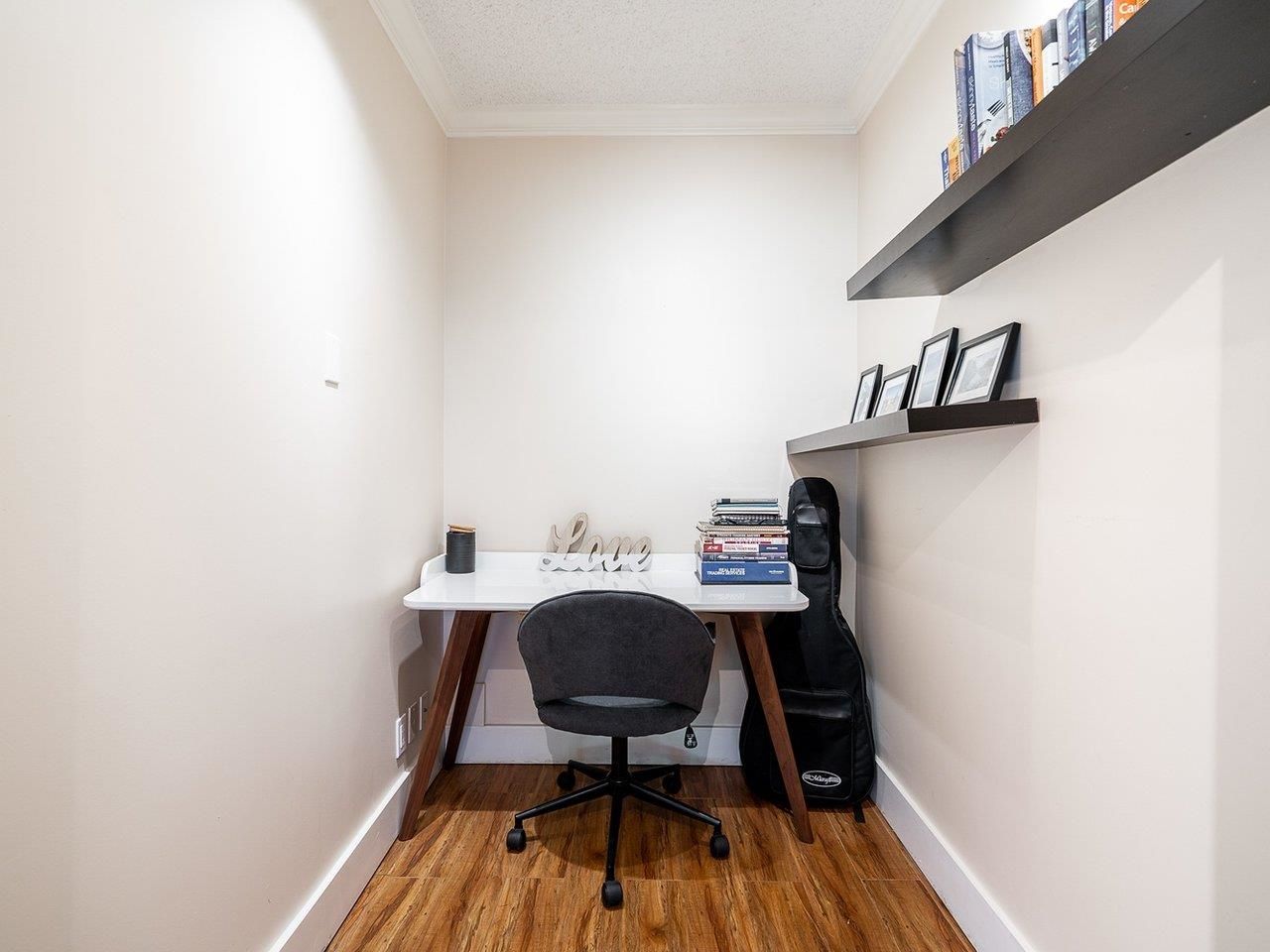 Come check out this amazing 1 bedroom plus den in ARBORETUM II! QUIET TOP FLOOR corner end unit facing courtyard! Windows at 2 ends of this unique condo with only one neighbouring wall. Updated kitchen with stainless steel appliances, updated bathroom, plank laminate flooring through out. Spacious 8'7 x 7'8 balcony perfect for your outdoor enjoyment. Convenience of in-suite laundry & secured parking. Stay cool this summer & take a dip in the outdoor pool! New roof completed in 2023, maintenance fees include hot water heating and city utilities. Fantastic central location with walking distance to T&T, Skytrain, Lansdowne Mall, Kwantlen University, restaurants, and shops! Don’t miss this outstanding opportunity to make this home yours!