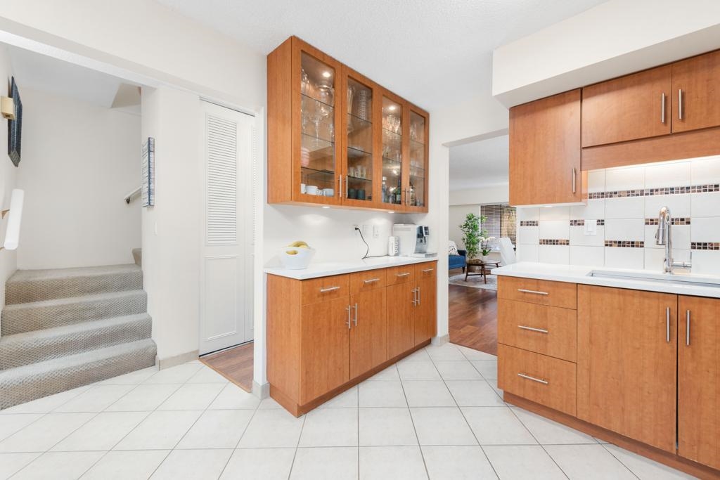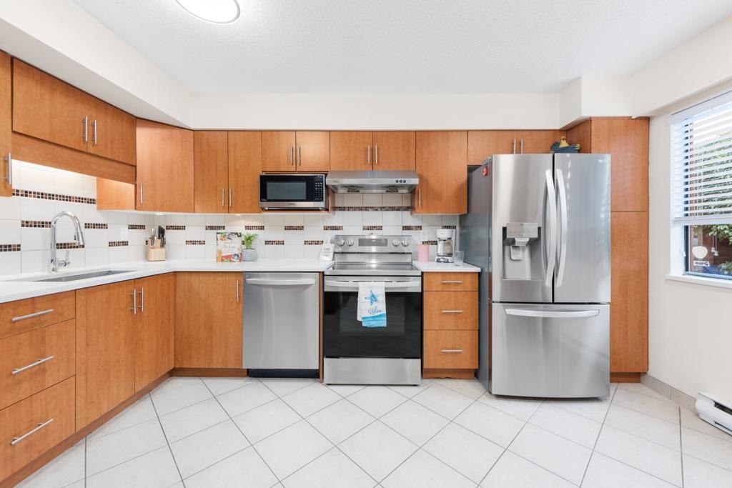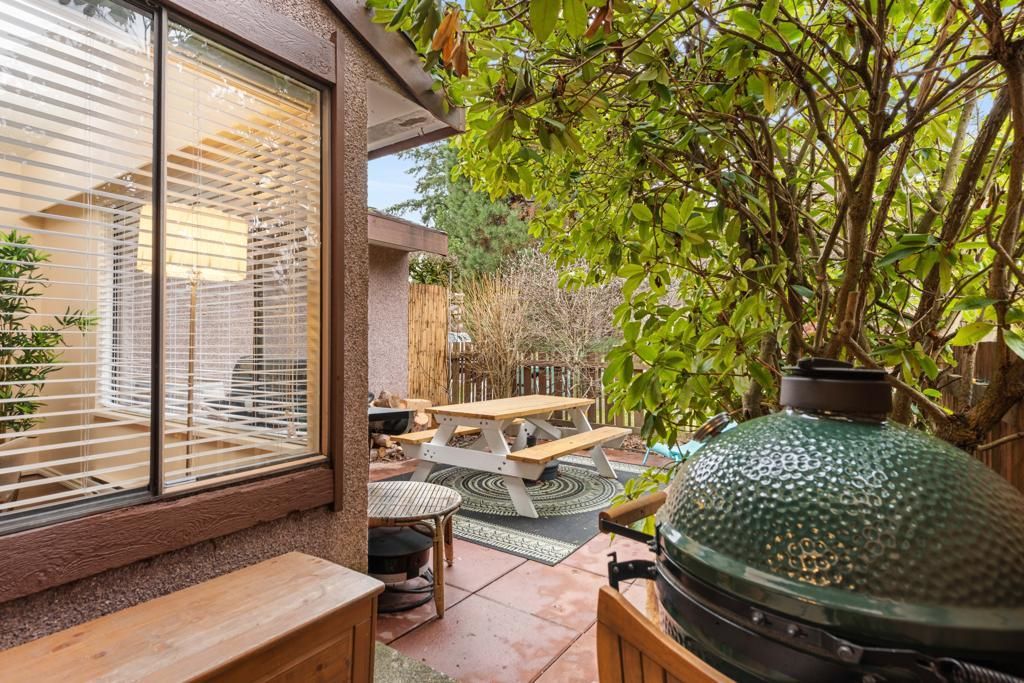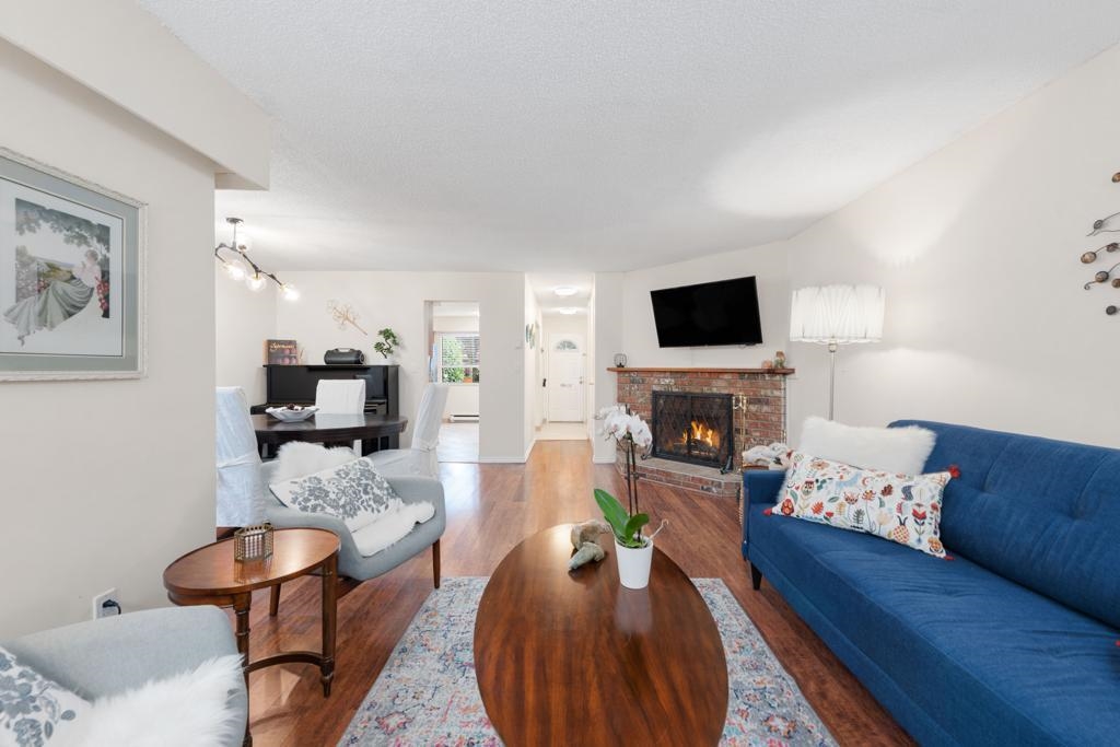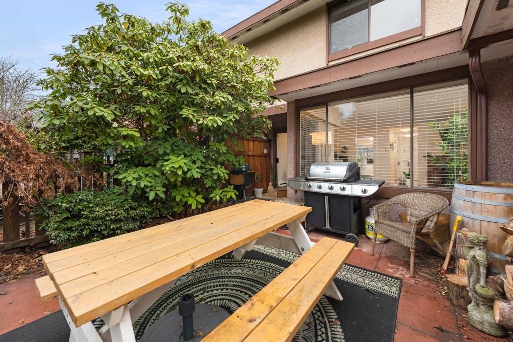 Welcome home to this bright & beautiful 3 bed & 2 bath townhome in the rarely available Kingswood Downes! This West facing unit features over 1400 sqft of living space, matching stainless steel appliances in the kitchen, open dining & living room for entertainment w/ a beautiful brick wood fireplace! Walk right out to your personal backyard that's filled w/ a relaxing oasis w/ a beautiful Japanese Maple Tree & Rhododendrum to warm your summer nights as you sip on wine! The home offers newer paint & light fixtures, newer hot water tank from 2021. Spa like amenities: indoor heated pool, sauna, gym, clubhouse & more! School catchment: Kingswood Elementary & Mcnair Secondary. Centrally located to Ironwood Plaza, rest, groceries, transit, schools & easy access to Hwy 99,91, 17A!