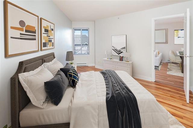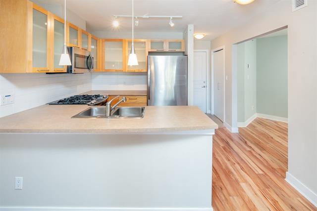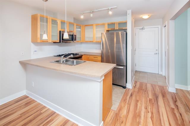 TOP FLOOR, NORTH-WEST FACING suite with mountain and courtyard view at Trellaine. This spacious 1 bed + den suite is 778 sf with a functional layout featuring a walk-in closet, big bathroom, ensuite storage and a 71 sf balcony! newer laminate wood floor, washer/dryer and stainless steel kitchen appliances. 1 parking under the building. Well managed complex with low maintenance fee that includes gas. Right across from the 21 acre Garden City Community Park, steps to Anderson French Immersion Elementary and MacNeill Secondary, 5 min. drive to Walmart shopping centre/restaurants and within 10 min. drive to Richmond Centre/Skytrain/shopping and DT Richmond buzz. MOVE IN READY. **COVID PROTOCOLS IN PLACE, MASKS ARE REQUIRED.**