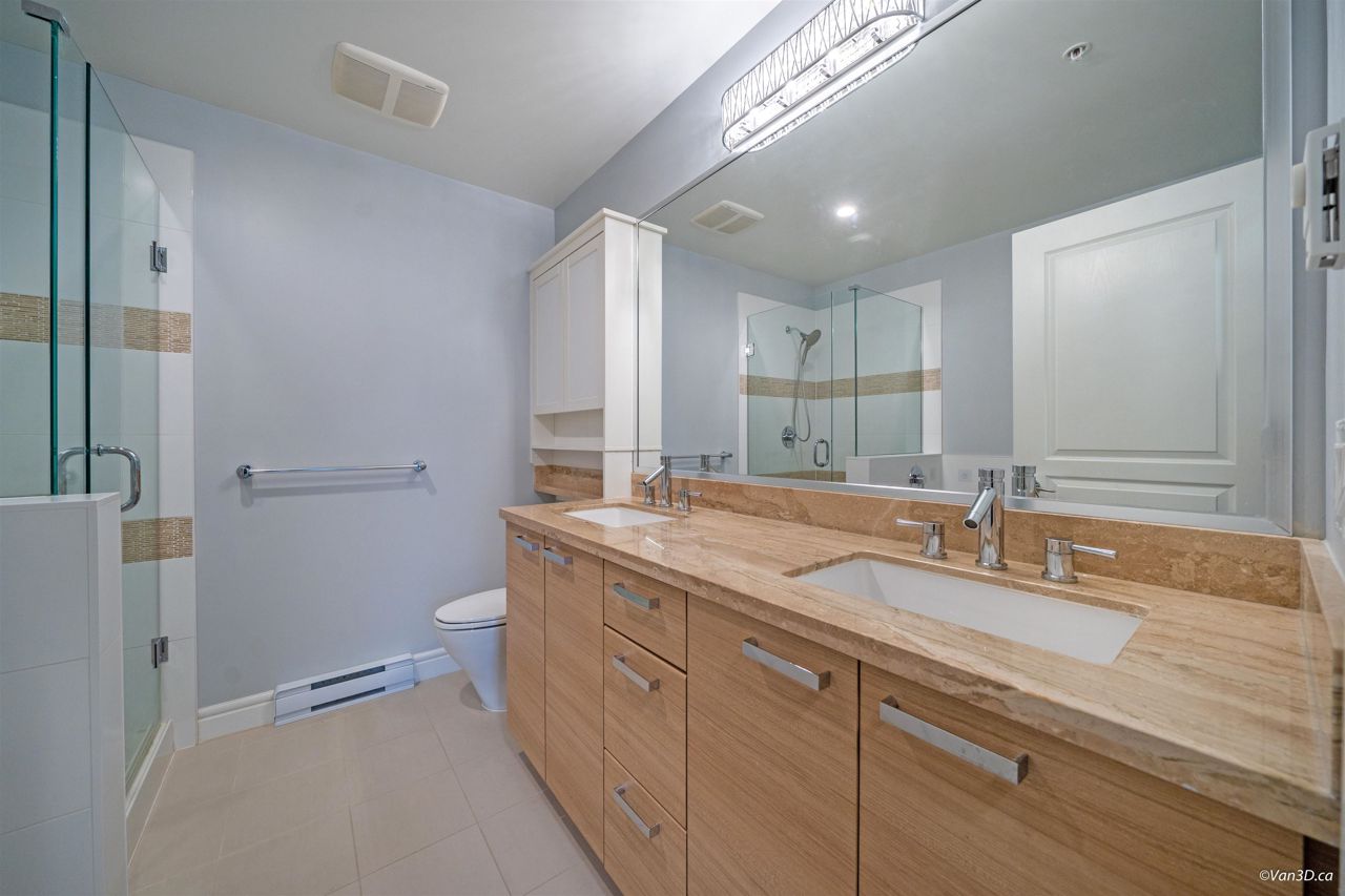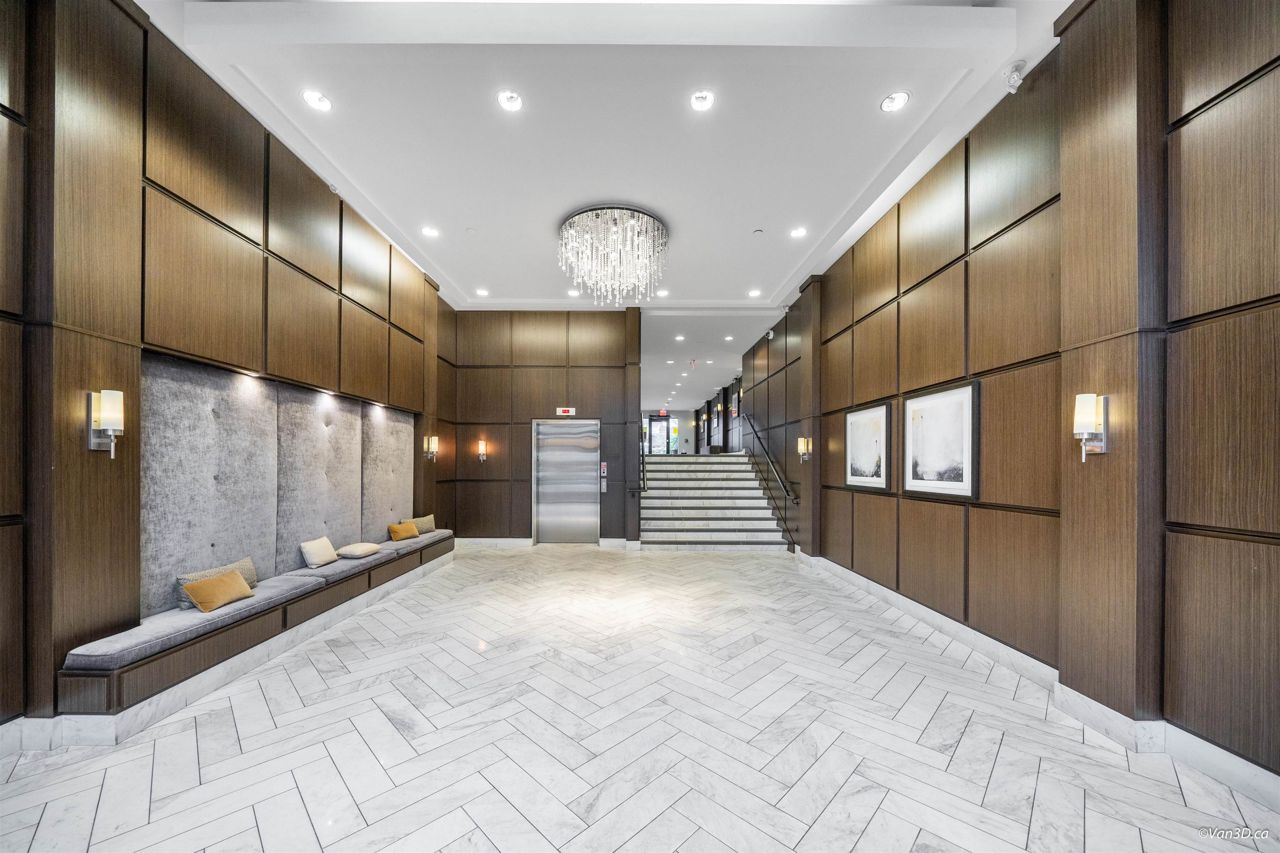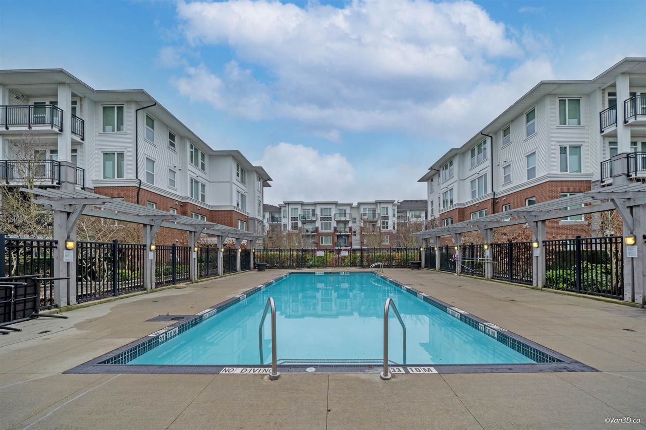 Welcome to Mayfair Place by Polygon. This large Top Floor 2 BR, 2 bath boasts 951 SF of living. The living room is adorned with 12ft ceilings that allows extra light through its expansive windows. Foyer has built in seating area and custom matching cabinets for extra storage. Bonus: 2 PARKING STALLS and also comes with 1 storage. 78 SF balcony allows for a BBQ & outdoor dining. Both BR has a walk in closet with closet organizers. Full size washer/dryer. Club house amenities include, outdoor pool, hot tub, gym, theatre, games room, lounge & meeting room. Steps to Aberdeen, Walmart, Yaohan, variety of restaurants & Canada Line Station.