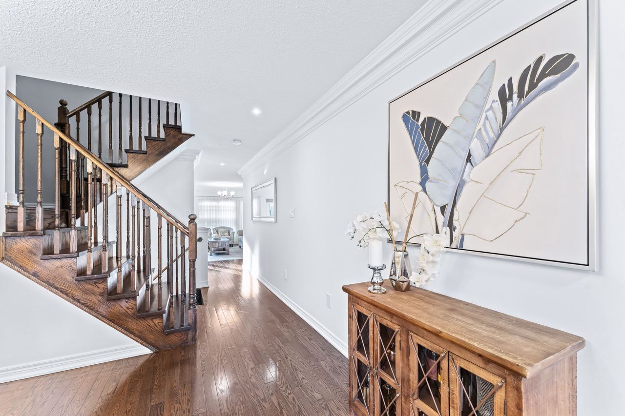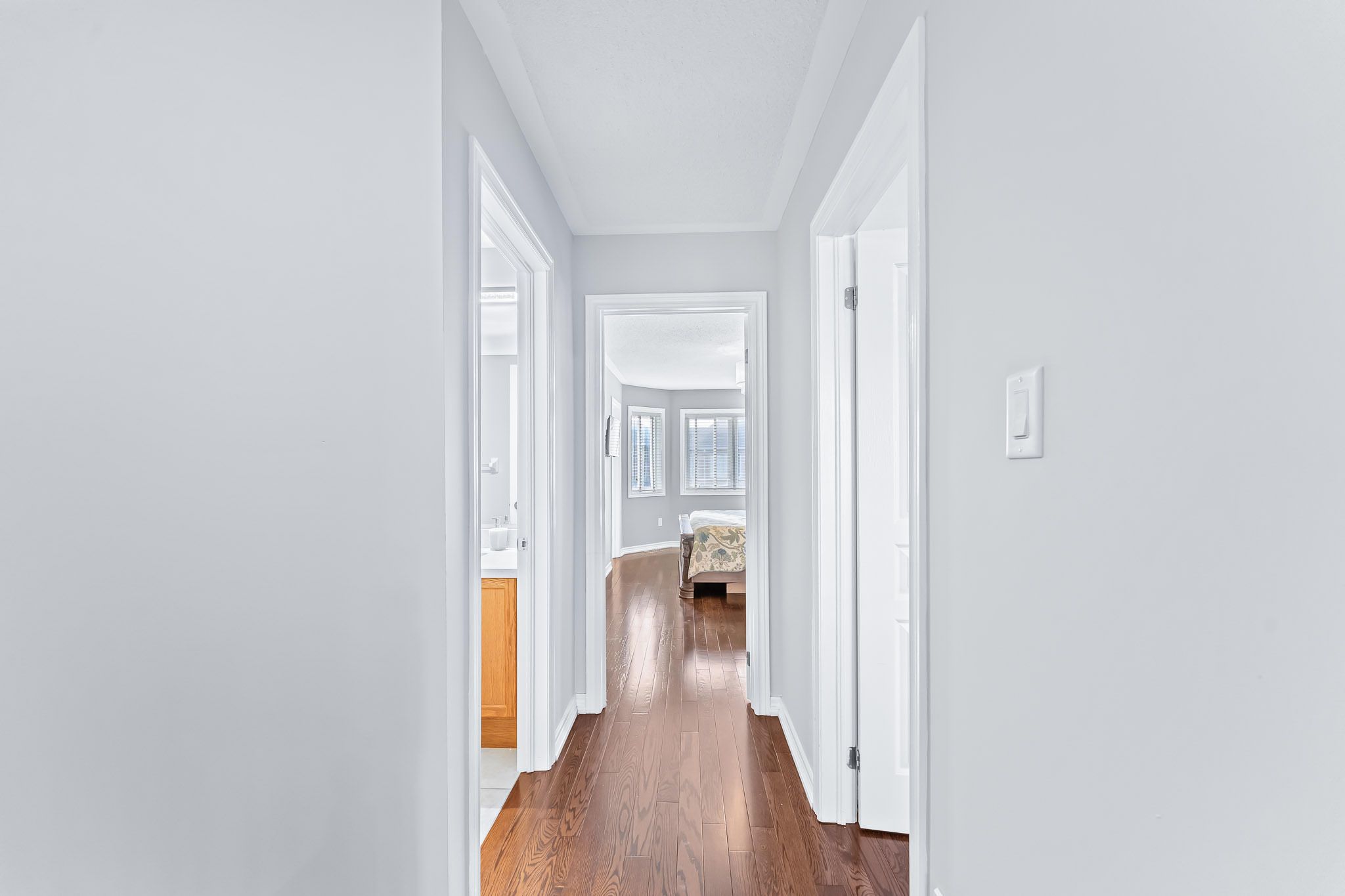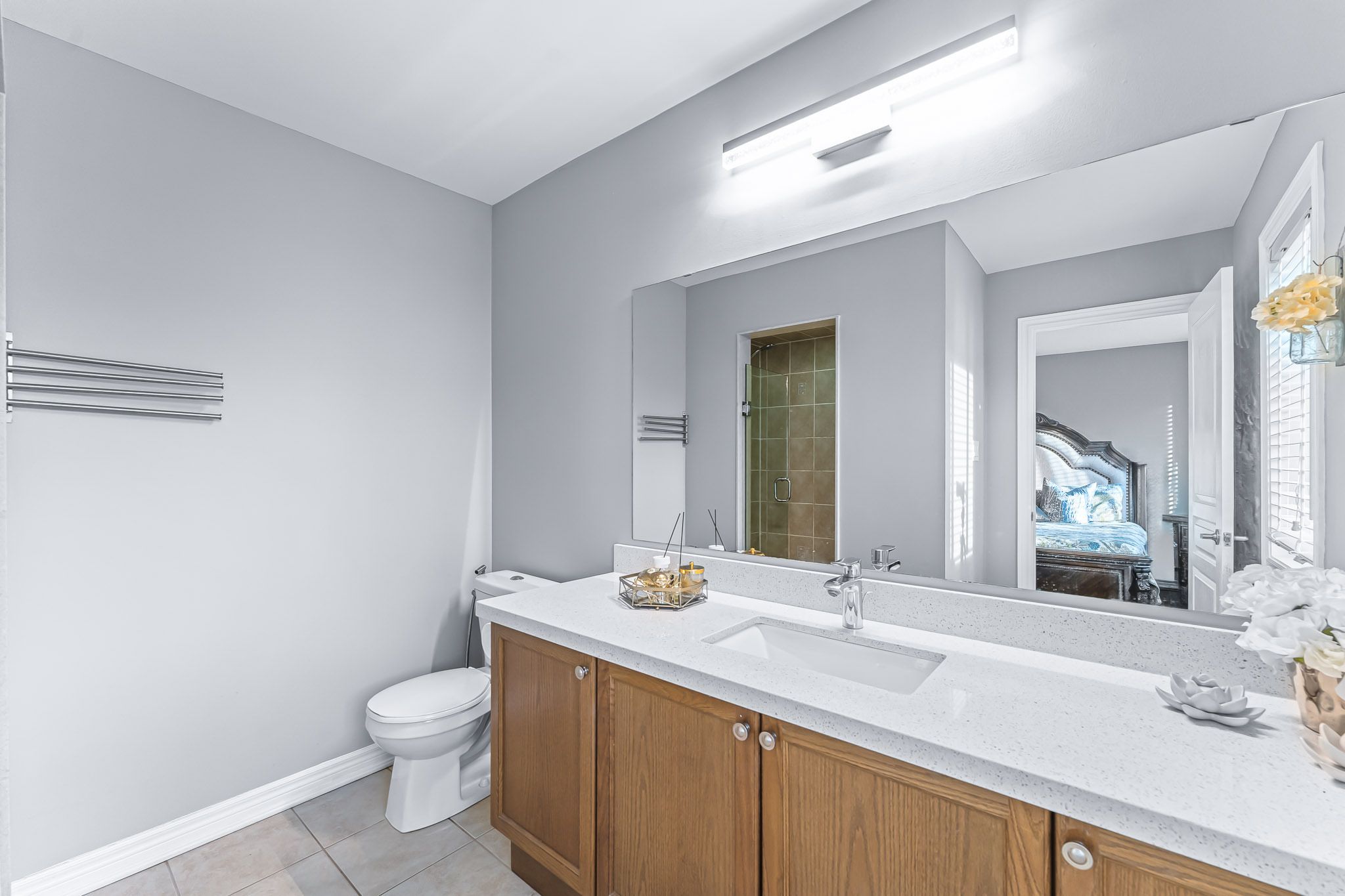 Prestigious 3-bedroom freehold townhouse with a finished basement! Boasting over 2200 sqft of living space, this beautiful home features hardwood flooring throughout the main & second floors. The modern kitchen has stainless steel appliances, quartz counters, and a backsplash. Enjoy the spacious family room with a view of the backyard. The primary bedroom is also generously sized & includes a 4-piece ensuite and walk-in closet with organizers. The finished basement with a 3-piece bathroom is perfect for hosting family gatherings. No sidewalk. This townhouse is conveniently located near parks, high-ranking schools, public transit, trails, lakes, and nature. Don't miss out on this incredible property!