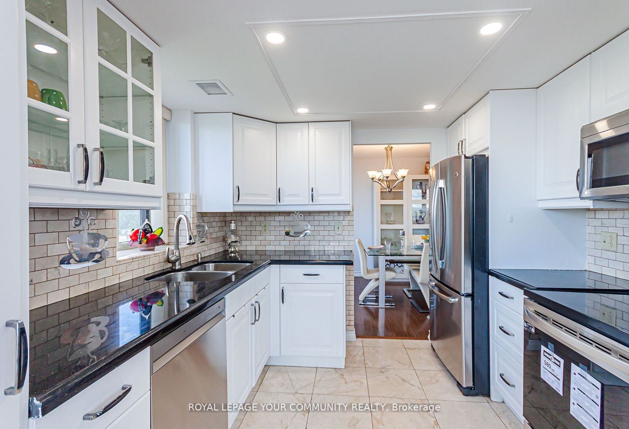 Bright and spacious Corner unit with Spectacular panoramic views. Amazing 1289 Sq.ft., 2+1 Bedrooms, 2 Bath, a master Bedroom w. Walk-in Closet & 4Pc Ensuite. The second bedroom has a large window overlooking the park. Open-concept living and Dining Rooms w. Lots of Natural Lights, The dining room opens to the Balcony with a Stunning view of the park. The Large Solarium can be used as a Family room/office. Kitchen w. Granite Countertops &. S/S appliances. Eat-in kitchen w. a large window that Overlooks The park. The In-Suite Laundry has a pantry that Offers So Much Storage.1 Parking Spot & ensuite Locker. This Luxury Tridel Building has a Tennis court, Shuffleboard, Pool, Billiards, Elegant Party Room, BBQ Patio Area, and 2 Guest Suites. Steps To Yonge St & Shopping centers, Transit, Hwy, Schools, Parks, Restaurants, Hillcrest Mall and more...Amenities Include: Pool, Whirlpool, Sauna, Gym, Party Room, 2 guest Suites, Outside Lounge, BBQ area, Library, Card Room, Billiard Room, Tennis Court