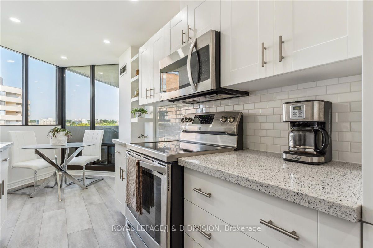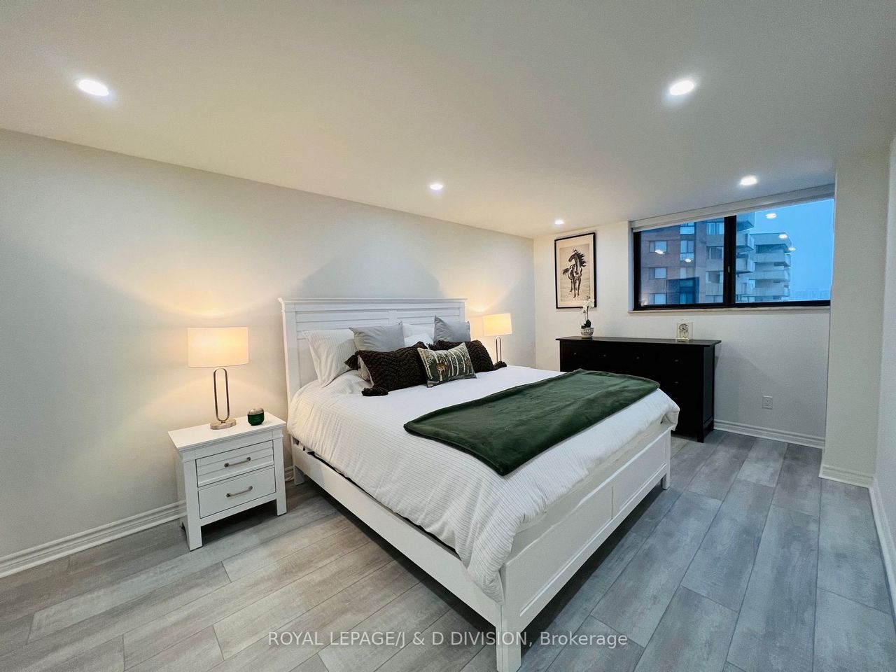 Renovated 1112 Sq. Ft suite in pristine Baif Gardens complex steps from Hillcrest Mall with two large bedrooms, sunny renovated eat-in kitchen, beautiful house-size living and dining rooms with lovely views from the condo and the huge balcony with BBQ permitted! Primary bedroom with ensuite bathroom and double closet with organizer. Plenty of storage in the kitchen, front closet, renovated laundry room and bedrooms. Condo fee includes ALL utilities, internet and cable. Best two parking spots directly across from the elevator, large locker, extensive lush, quiet grounds to relax on including Club 66, the well-appointed recreation centre with large outdoor pool, gym, party room(s), car wash and every convenience. Minutes to shopping and transit. Quiet and beautifully maintained buildling.All inclusive maintenance fee for convenience and great value.