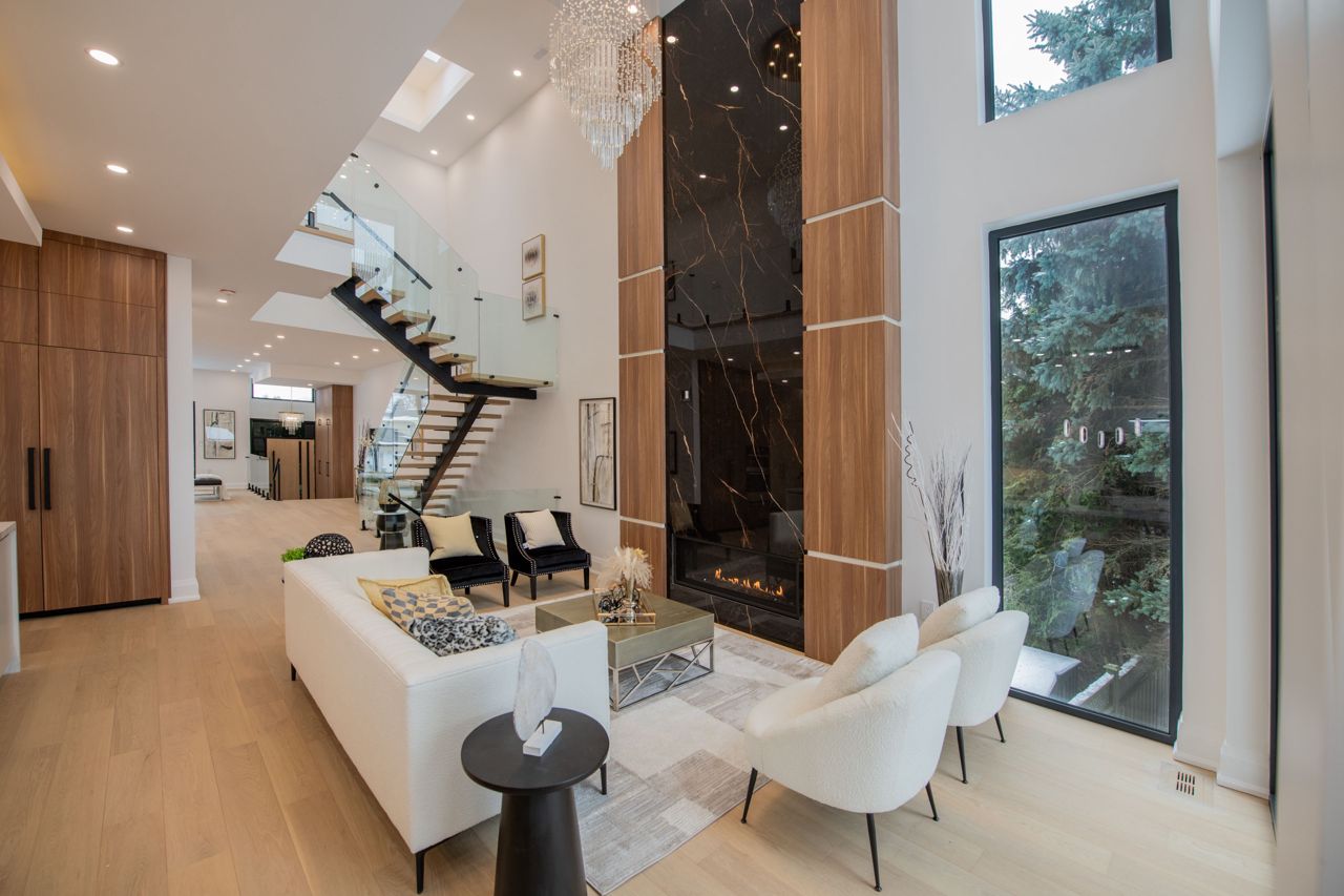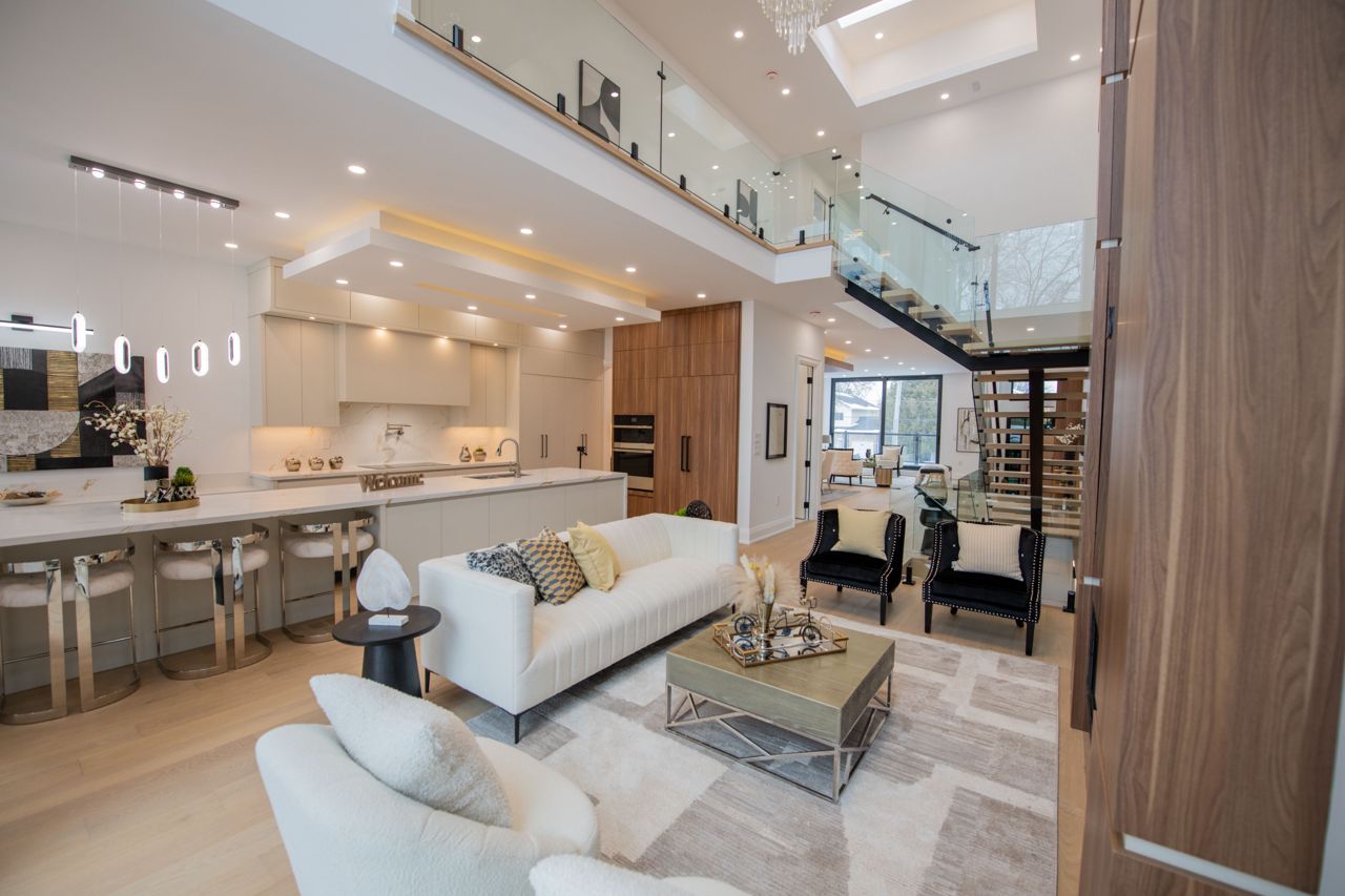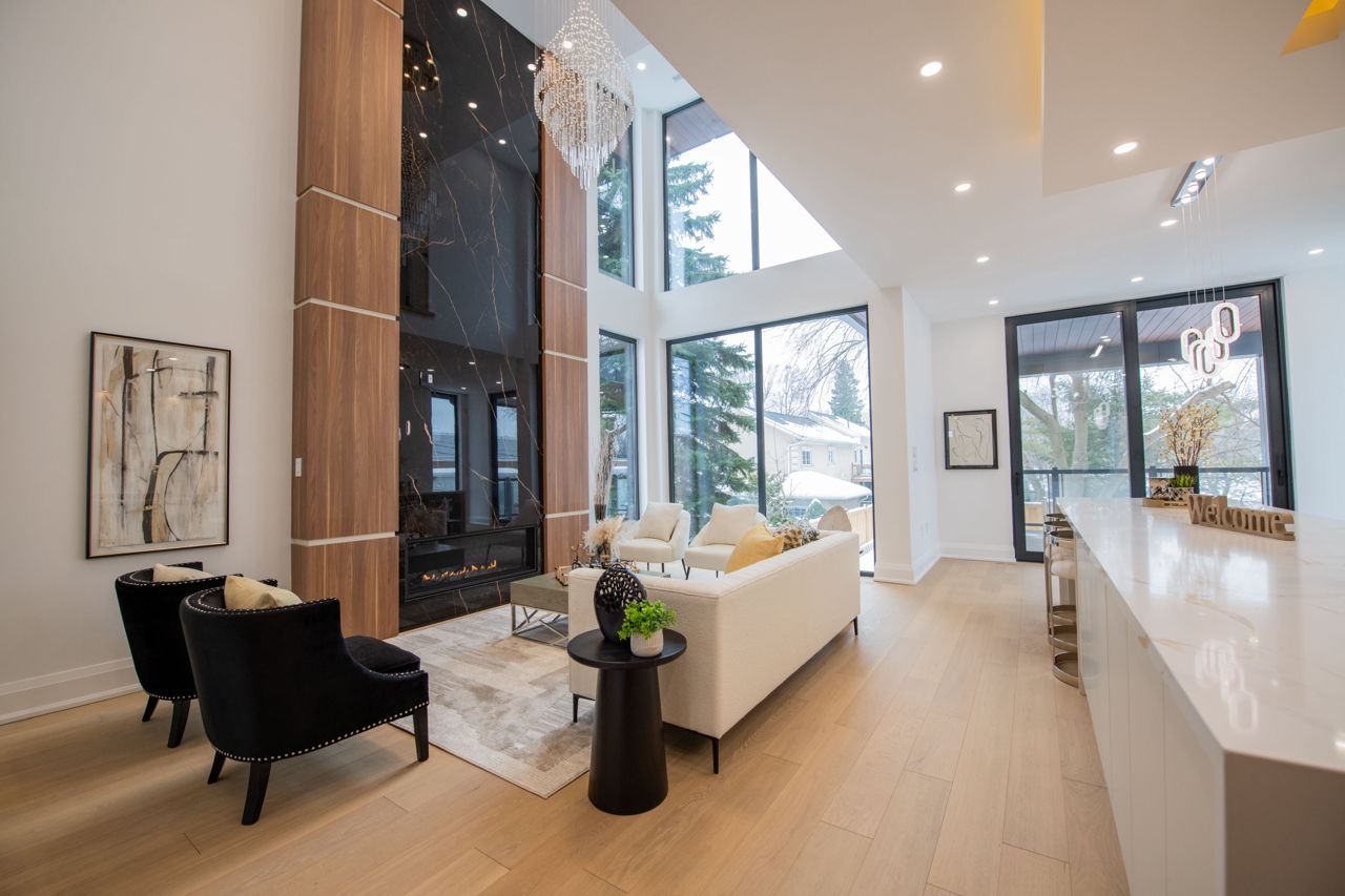 Dont Miss Out On This Incredible Brand New Custom-Built Home Steps Away From The Serene Lake Wilcox! Step into the home, captivated by the luxurious and modern design that flows throughout. The spacious living & dining area boasts magnificent floor-to-ceiling windows that bathe the space in natural light, creating an inviting atmosphere. Walk out onto a balcony w/ BBQ gas line overlooking the oversized 6-car interlock driveway and lush front yard. With 10ft ceilings, fiberglass-silenced doors, stylish pot lights, exquisite light fixtures & engineered hardwood floors that grace both the main & second levels, this home radiates elegance at every turn. The gourmet kitchen is a true showstopper, w/JennAir appliances, 16ft quartz centre island, quartz backsplash, servery w/wine cooler and ample cabinetry & counter space. The breakfast area opens to a large terrace balcony w/ charming wall sconces & pot lights, perfect for enjoying views of the stunning backyard. The family room features soaring 20ft plastered ceilings & a striking floor-to-ceiling porcelain slab fireplace, ideal for relaxation & entertaining. A modern glass balustrade staircase leads to the second level, convenient w/separate laundry room and the luxurious primary suite. This private retreat offers a balcony with peaceful views, a his & hers closet w/ built-in drawers & skylight. The spa-like 5pc ensuite includes quartz counters, glass shower, soaking tub, and private toilet. Additional bedrooms come w/custom built-in closets, large windows & 3pc bathrooms. The finished basement is a highlight w/10ft ceilings, heated tiled floors and bar w/wine cooler. It also includes a second laundry room, ample storage & rough-ins for a theater room. For outdoor gatherings, walk up to the privately fenced yard with a gazebo perched on an engineered platform. Exclusive access to private lake/beach, reserved only for select Wildwood Ave residents. Conveniently located near amenities, parks, schools, and much more!