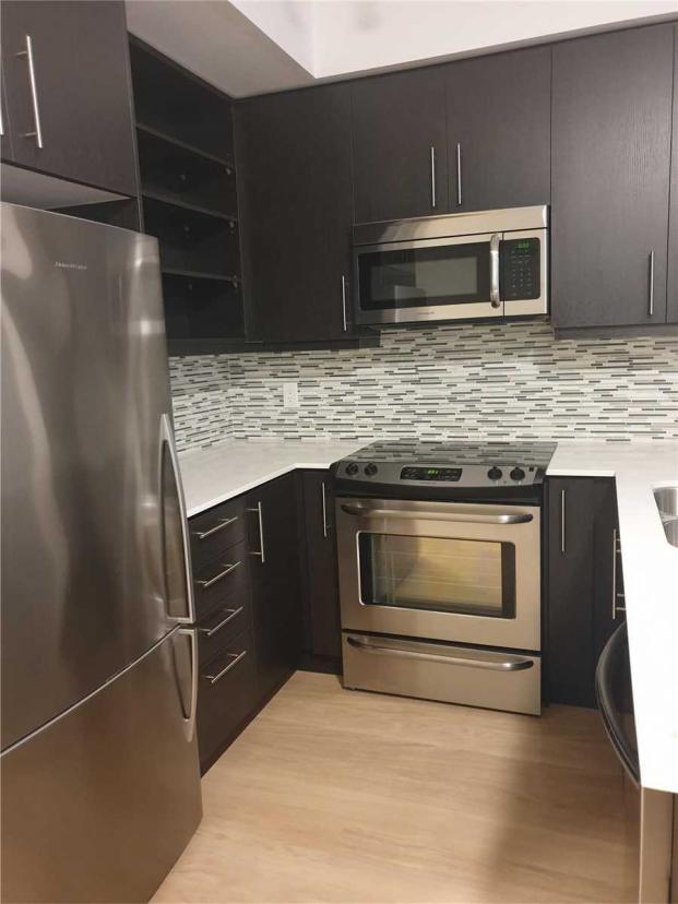 This Beautiful 1 Bedrm + Den Condo Is Available For Quick Possession! 1 Yr Term Lease Inc. 1 Parking & 1 Locker. 9' Ceilings,Kitchen/Breakfast Bar.S/S Appliances,Laminate Flooring T/O, Large Terrace Access From Master And Liv.Rm, Perfect Location And Amazing Amenities: Indoor Pool, 2 Party Rooms. Theater, 2 Game Rooms, Fitness Area,Yoga/Pilates Studio,24Hr Concierge,Rftop Garden W/Bbq Area.Easy Access To Hwy 7,407 Go Train Professionally Cleaned Ready For You S/S App, Fridge, Stove, Hood Fan, Microwave, B/I Dishwasher, Washer/Dryer. Window Covering And All Elf's + Floor Lamp In Bedroom.
