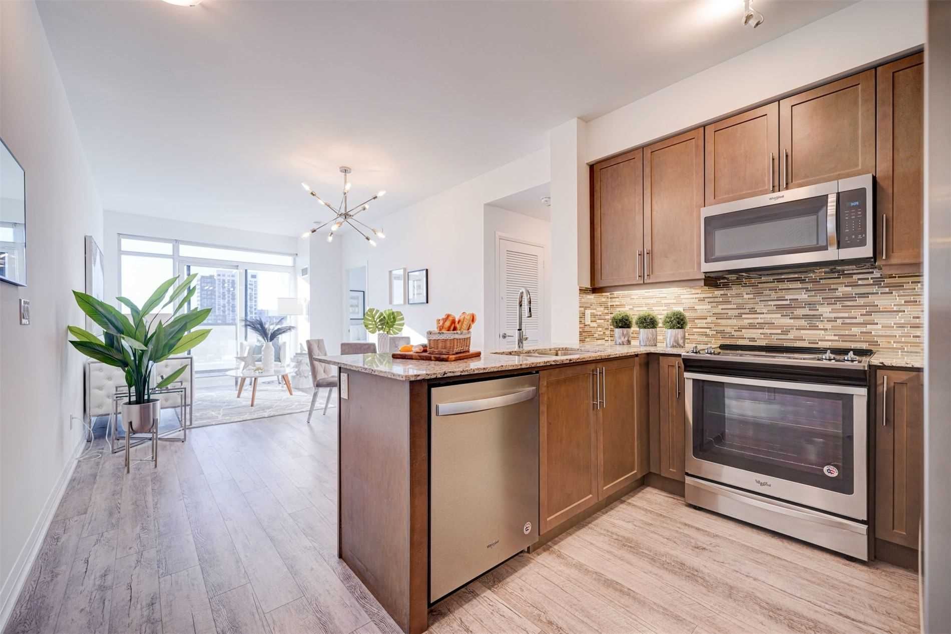 Welcome To Skycity With Beautiful 2 Br + Den Condo, Located In The Heart Of Richmond Hill! Lots Of Upgrades. Upgrade Laminate Fl. Upgrade Kitchen With Backsplash & Granite Countertop. Upgrade All Bathrooms With Frameless Glass Shower Door. This Property Features A Very Functional Layout With A Versatile Den. Walk Out To Your Balcony From Your Living Room Or Bedroom! This Is Your Turn Key Investment Purchase. Buy This Property Now And Start Building Your Equity Today! Conveniently Situated By All Local Amenities, Shopping Centres, Hwy 407, 404, Go/ Local Transit. Must See!S/S Fridge, S/S B/I Dishwasher, S/S Stove, Washer & Dryer, Upgrade Light Fixtures, All Window Coverings. One Parking And One Locker Included.