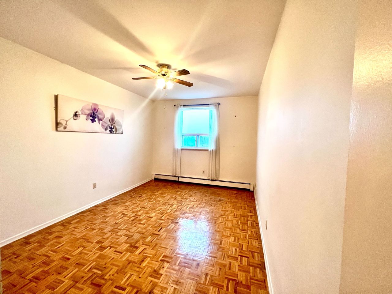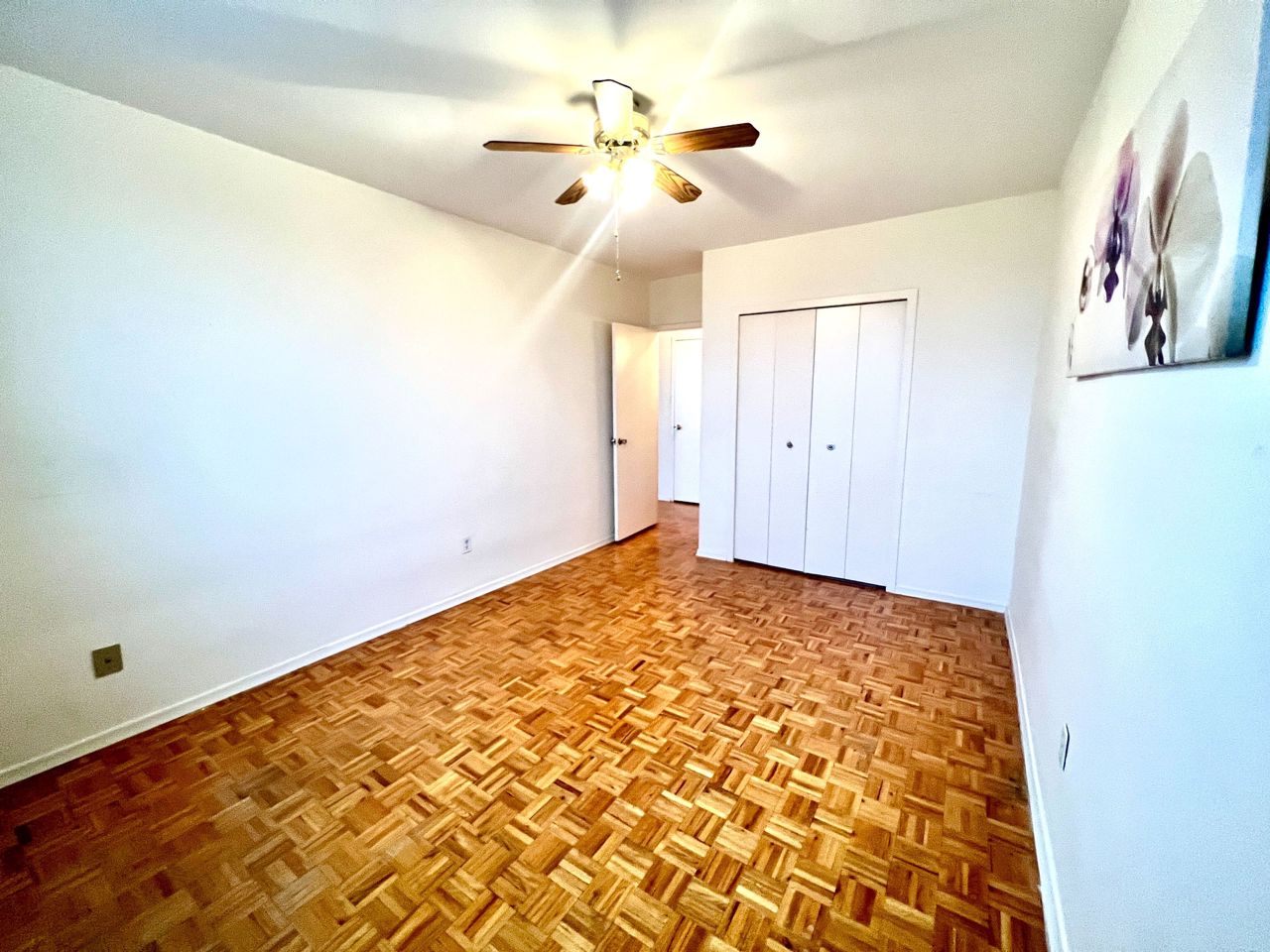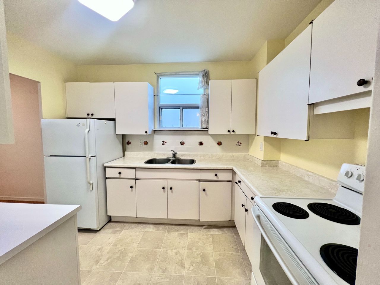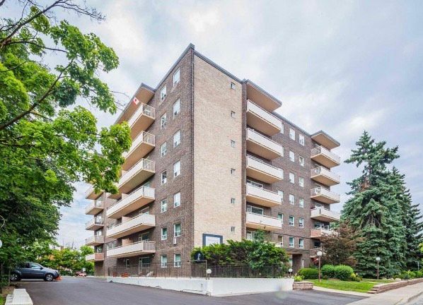 Bright & Spacious Corner Suite In Desirable Mill Pond Community! Short Walk To Yonge Street, Hospital, Library, Shopping, Performing Arts Centre & Beautiful Mill Pond Park! Quiet Building With Recent Facelift! Wonderful Space In A Wonderful Neighbourhood. This charming 1 bedroom, 1 bathroom condo is 660 sq feet With remarkable living space Plus an Oversized balcony with Nice west and north facing views! Enjoy gorgeous sunsets and enjoy the nature settings around.white fridge, white stove, range hood, electrical light fixtures, window ac unit
