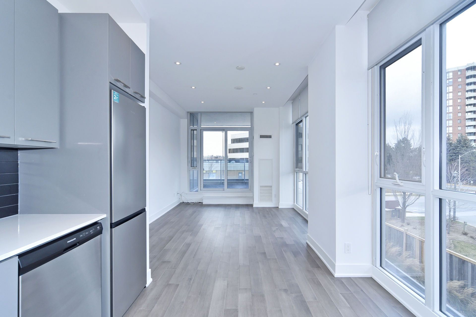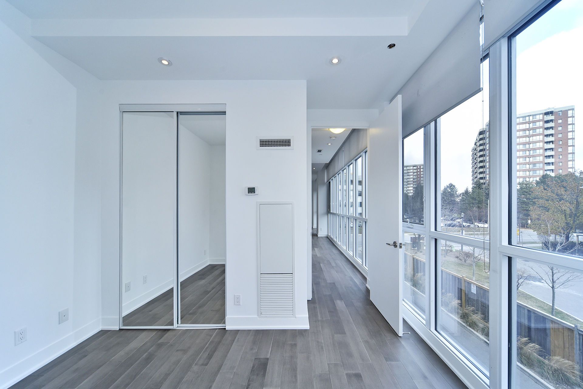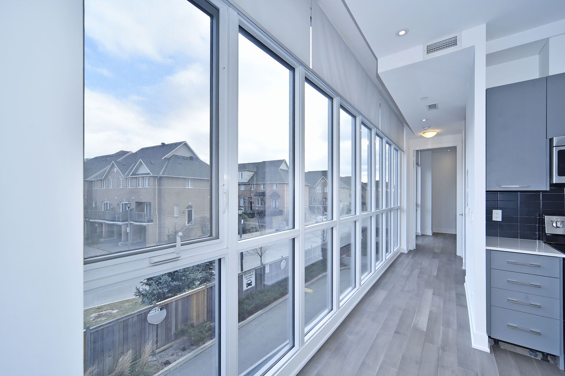 One Of A Kind Condo With Floor To ceiling Windows That run Virtually The full Length Of The Unit, Located In Expression Condos. This 1 + Den Boasts 668 Sq Ft Of Fully Usable Living Space. Newly Renovated Floor, Kitchen and Freshly Painted. 10ft Ceiling Create A Voluminous Living Space, Quartz Countertop In Kitchen & Backsplash . Access From Hillcrest Mall And Public Transportation.