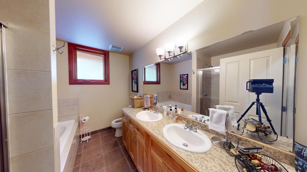 Redstone Neighbourhood. Don't miss this family house in a quiet spot at Redstone. It offers 3 bedrooms, 2.5 baths, a family room on the first floor, large open great room, a double car garage, and a back yard patio. The upper level is dedicated to a main bedroom with an ensuite and walk-in closet. Off the living room the second floor deck has a huge view over the valley. This great house is removed from the main subdivision thru-road and shares a generous cul-de-sac with very few houses - perfect for kids playtime. A mature landscaped yard with UG sprinklers backs up to the e-bike friendly wagon road - getting you out on the trails immediately. The 2 bay garage is a massive 24 x24 - lots of room for work and storage. Call your Realtor(R) for a viewing and see how much this has has to offer. (id:22211)