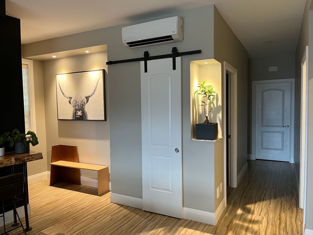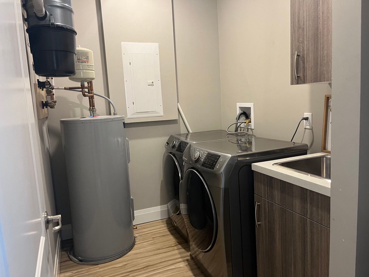 washer and dryer, central vac with kick sweeps and AC, gas fireplace, linen closet, LED lighting throughout,