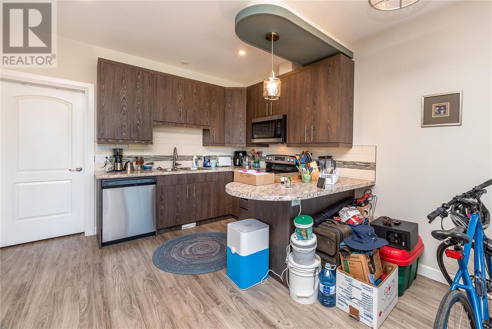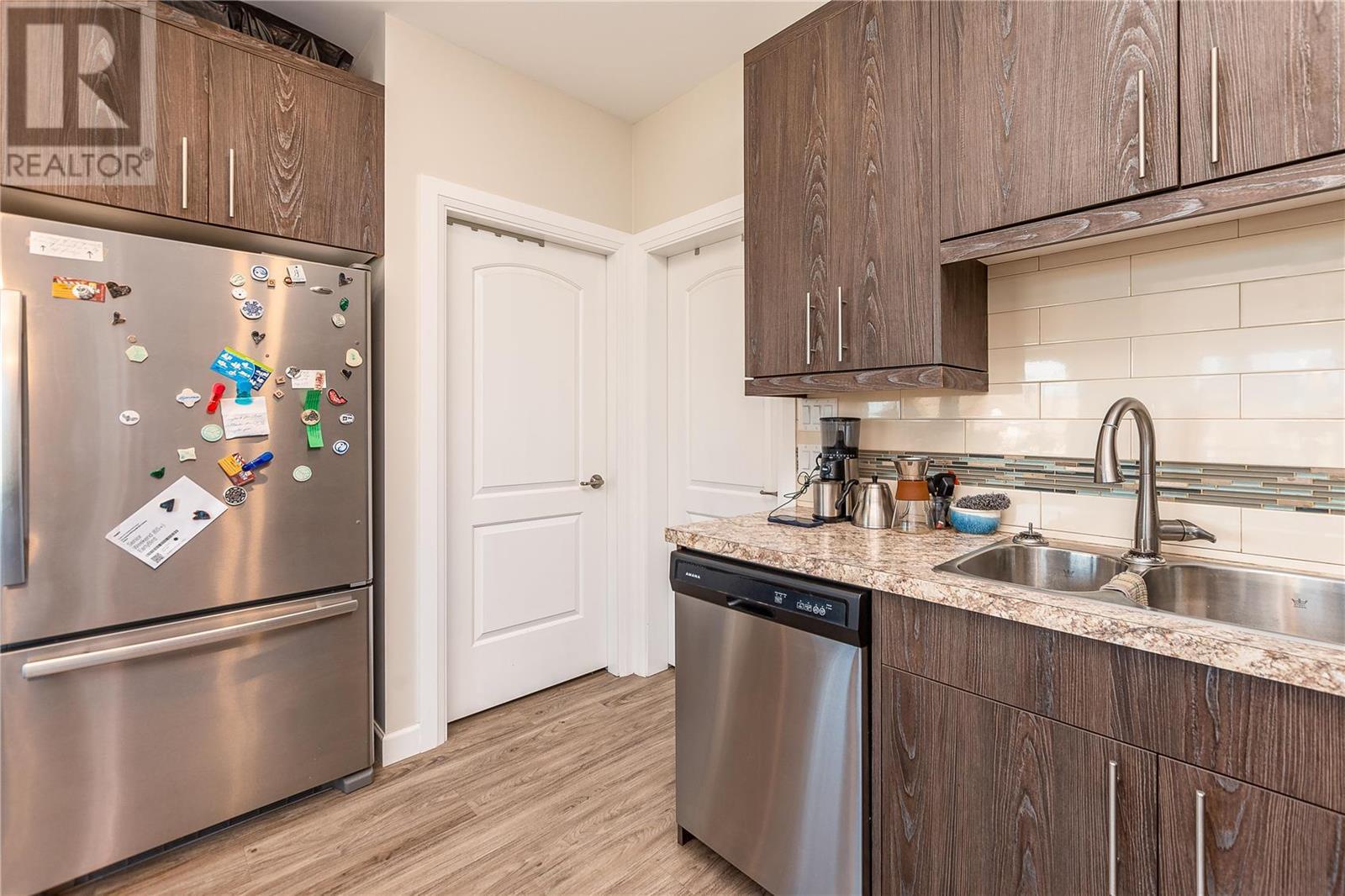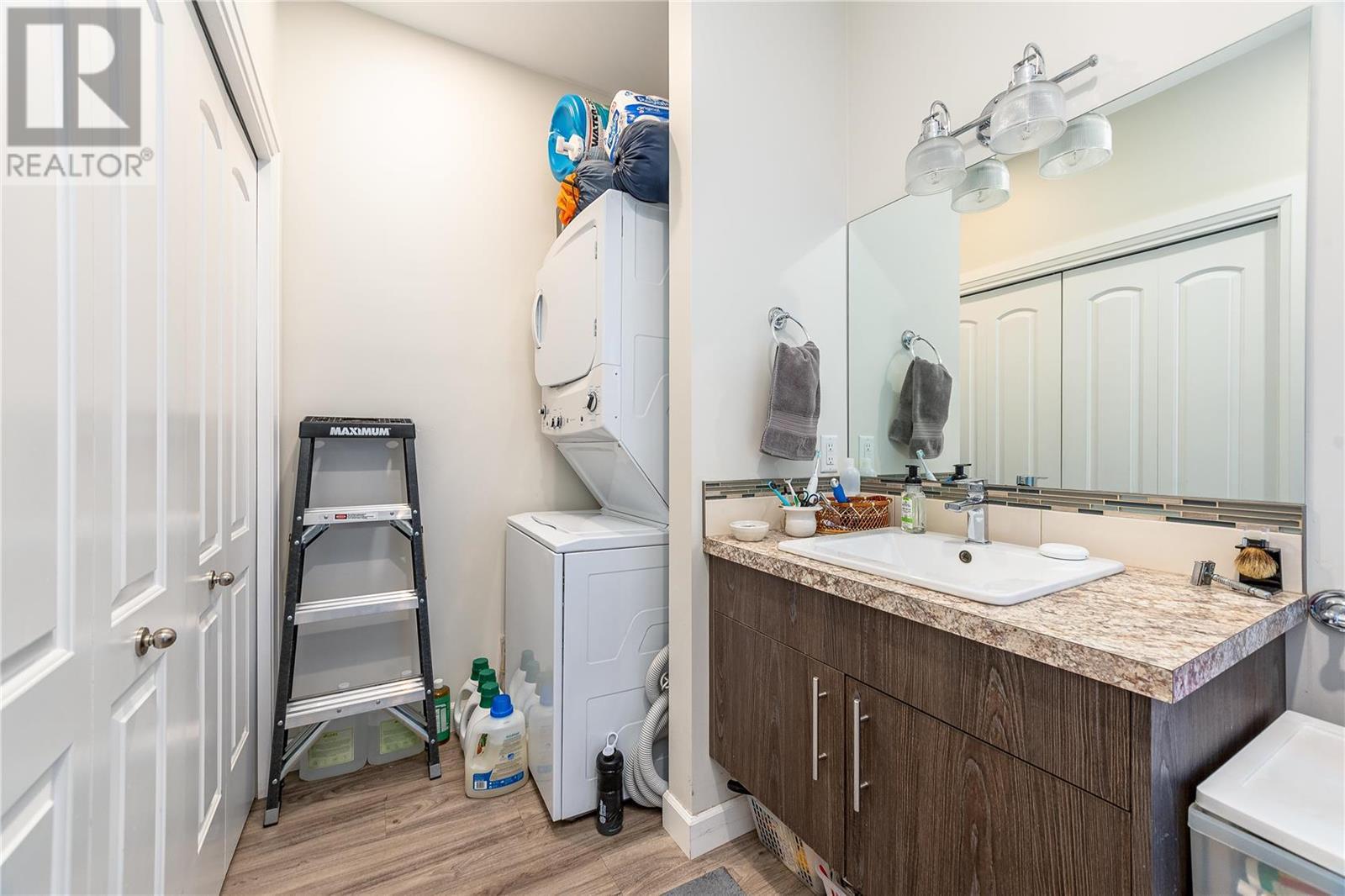 First Home, Downsizing or Investment property? This one fits them all. The well designed space provides a good sized Primary Bedroom with large closet, 4 piece bathroom with a storage closet and stacked Washer Dryer pair, well appointed kitchen with lots of cupboard space, built in microwave and dishwasher and room for a table. The bright living room features a large window, gas fireplace and unique shelving for your plants and knick knacks. Laminate flooring throughout for easy care and cleaning. Front porch area has a N/G hookup for your BBQ. Close to parks, recreation and shopping. (id:22211)