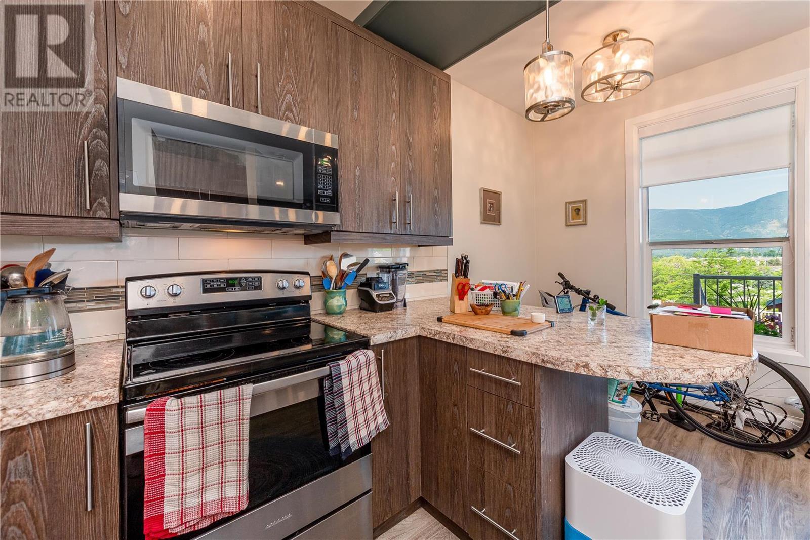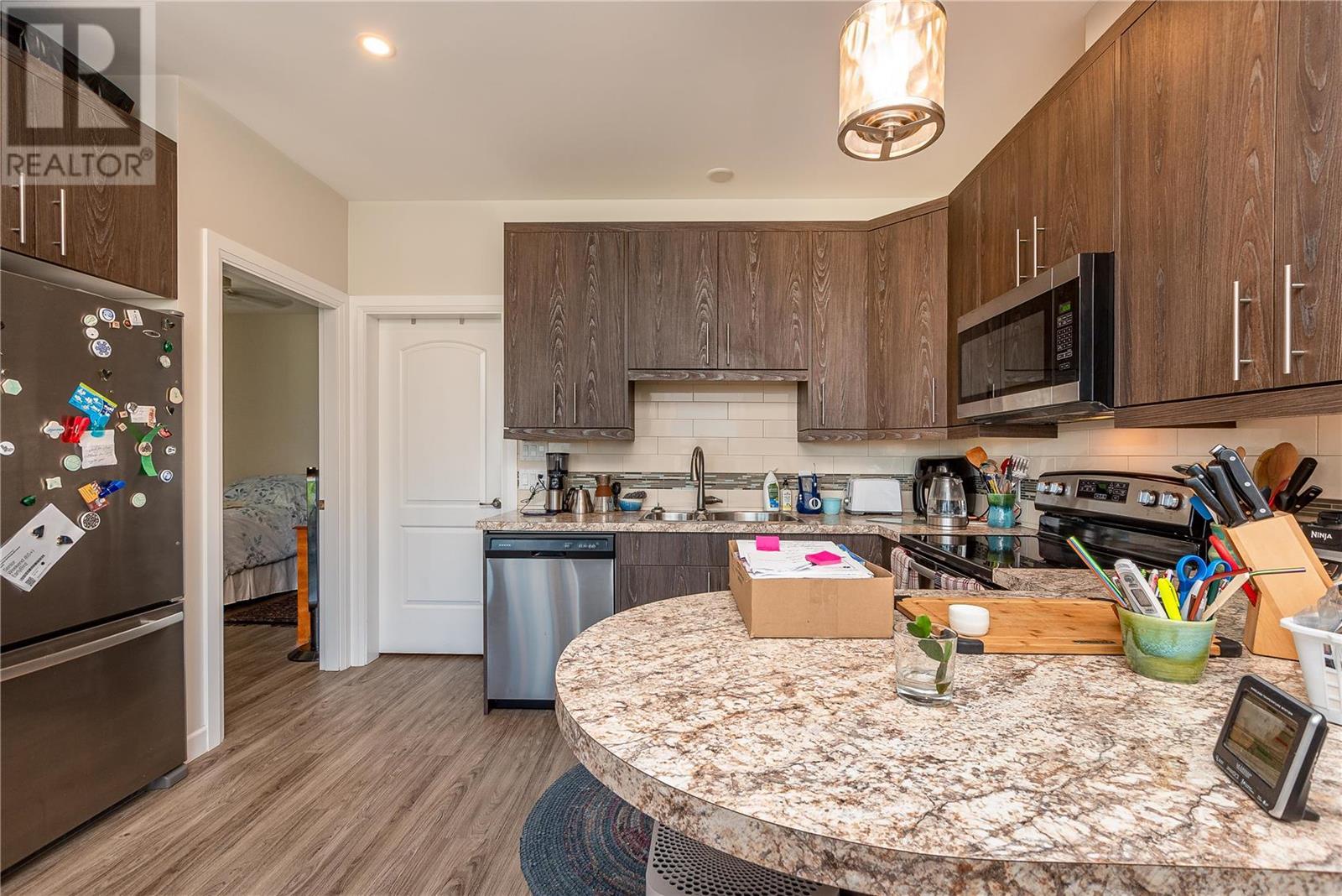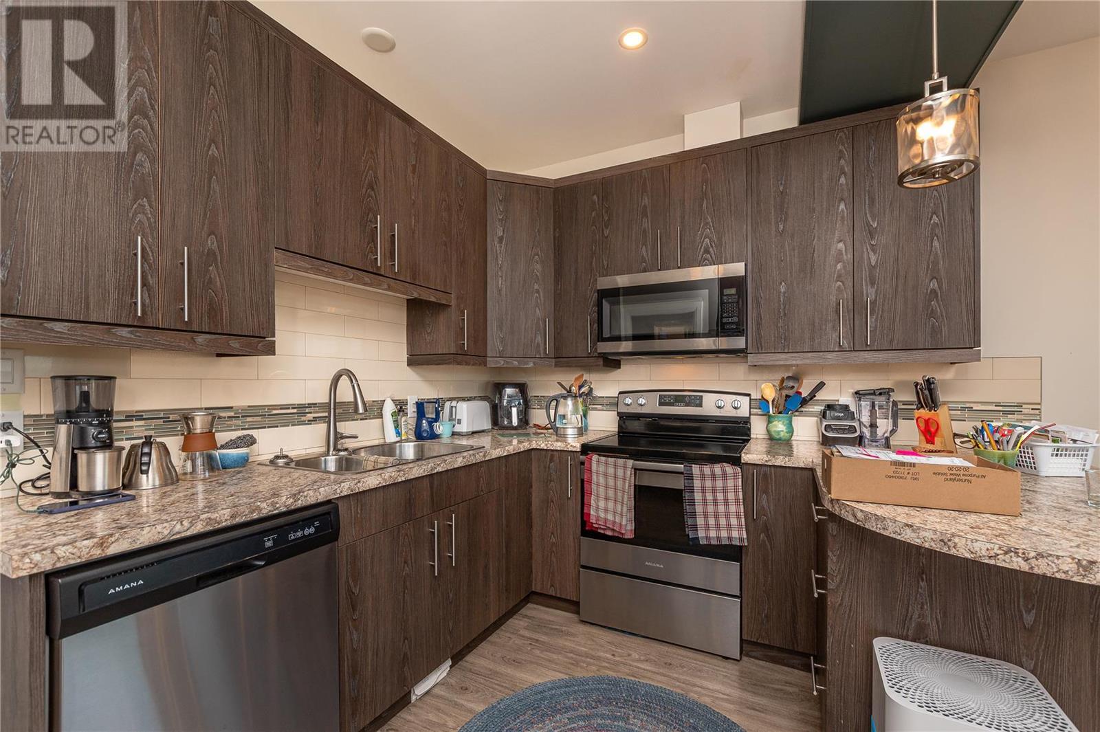 First Home, Downsizing or Investment property? This one fits them all. The well designed space provides a good sized Primary Bedroom with large closet, 4 piece bathroom with a storage closet and stacked Washer Dryer pair, well appointed kitchen with lots of cupboard space, built in microwave and dishwasher and room for a table. The bright living room features a large window, gas fireplace and unique shelving for your plants and knick knacks. Laminate flooring throughout for easy care and cleaning. Front porch area has a N/G hookup for your BBQ. Close to parks, recreation and shopping. (id:22211)