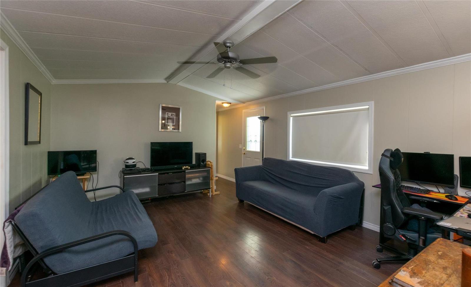3 bed 2 bath family home tucked away in Broadview Mobile Home park. Updates over the years make this a comfortable move in ready option for your next home. Primary bedroom with 4 pcs ensuite and walk in closet. Spacious eat in kitchen with peninsula breakfast bar, plus a separate dining area if you wanted. The addition is a great 3rd bedroom if needed or a bonus family room or office. Screen in porch area as you enter off the back side, great for some extra storage or a place to kick back and relax. No neighbors behind you leaves the backyard in complete privacy. Some yard for the kids and pets and a couple of storage sheds for the tools and toys. Dead end road for the kids to play. Centrally located to both uptown and downtown amenities, shopping and recreation. Pets allowed, 1 per site, dogs up to 12" at the shoulder. (id:22211)