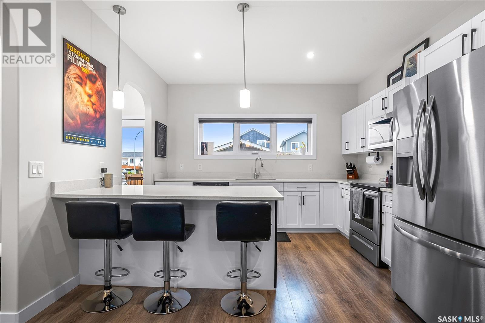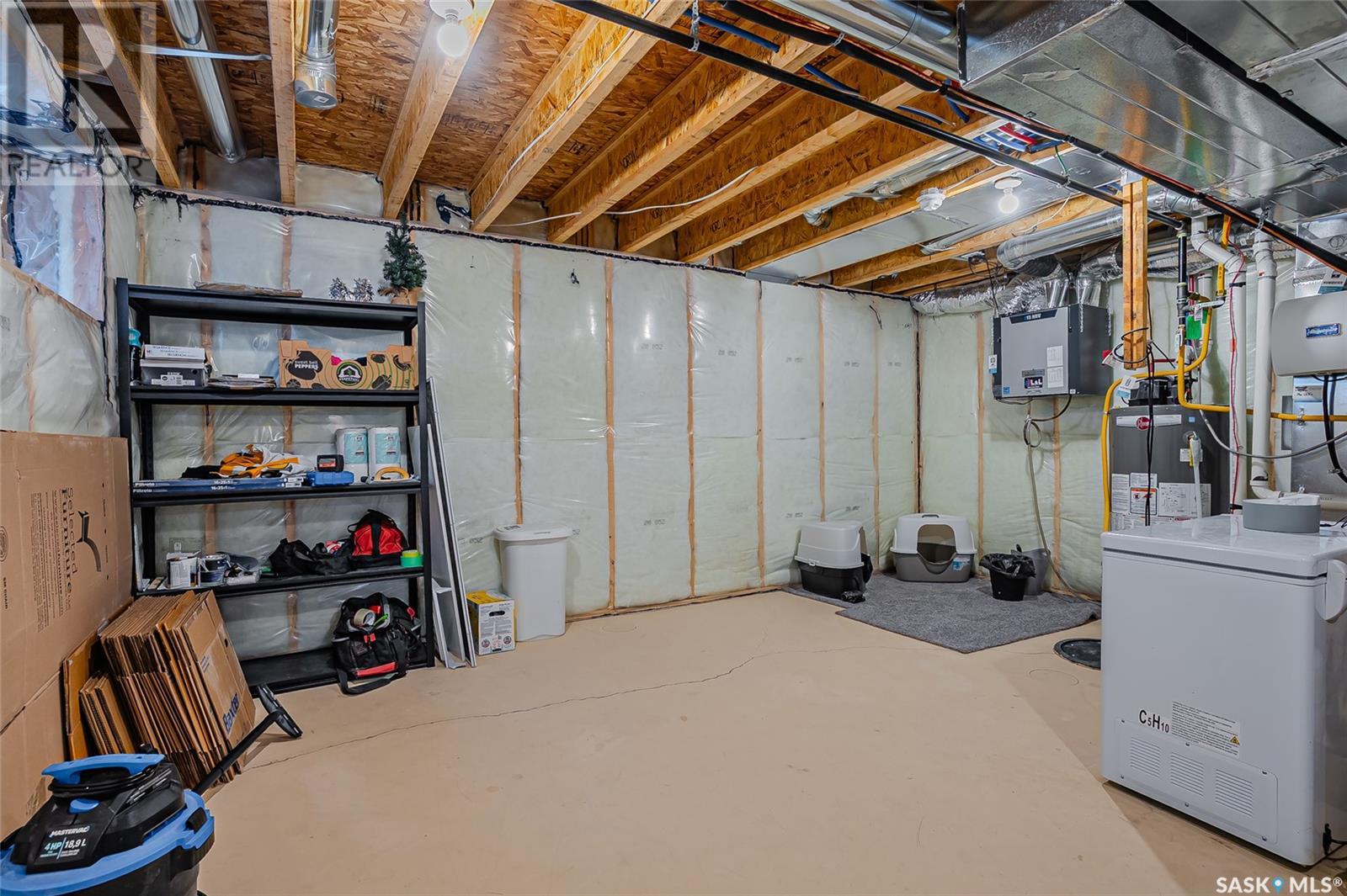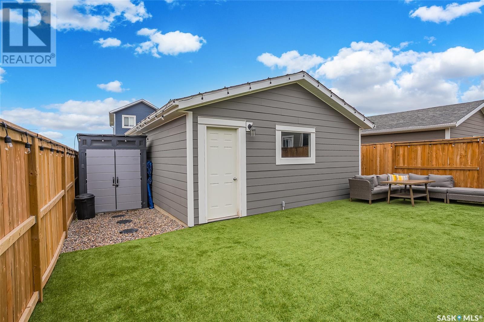 Welcome to this charming two-story home located in The Meadows area of Rosewood. Built in 2020 by North Prairie Developments, this residence offers 1,460 feet of bright, open-concept living and kitchen space, perfect for entertaining. The home features laminate flooring throughout, vinyl tile in the bathrooms, and quartz countertops. The spacious kitchen provides ample room for baking or serving guests and includes plenty of pantry storage. Stainless steel appliances are included. Upstairs, there are three bedrooms. The master boasts a lovely three-piece en-suite and a walk-in closet. The second floor is finished with high-quality carpeting, and the home is equipped with quality windows and custom Bali blinds. The laundry is conveniently located on the 2nd floor. The basement is open for development, offering potential for a rental suite with a side entrance, and space for a fourth bedroom, bathroom, and family room. Additional features include central air conditioning, an HRV unit, a humidifier, and roughed-in central vacuum. Exiting through the kitchen, you’ll find a cozy wooden deck with a privacy screen, perfect for relaxing. Step down into the large yard featuring low-maintenance turf and rock landscaping, along with a high-quality shed for storage. The double detached garage can be easily finished and offers convenient lane access. Don’t miss this opportunity— call today! (id:61201)