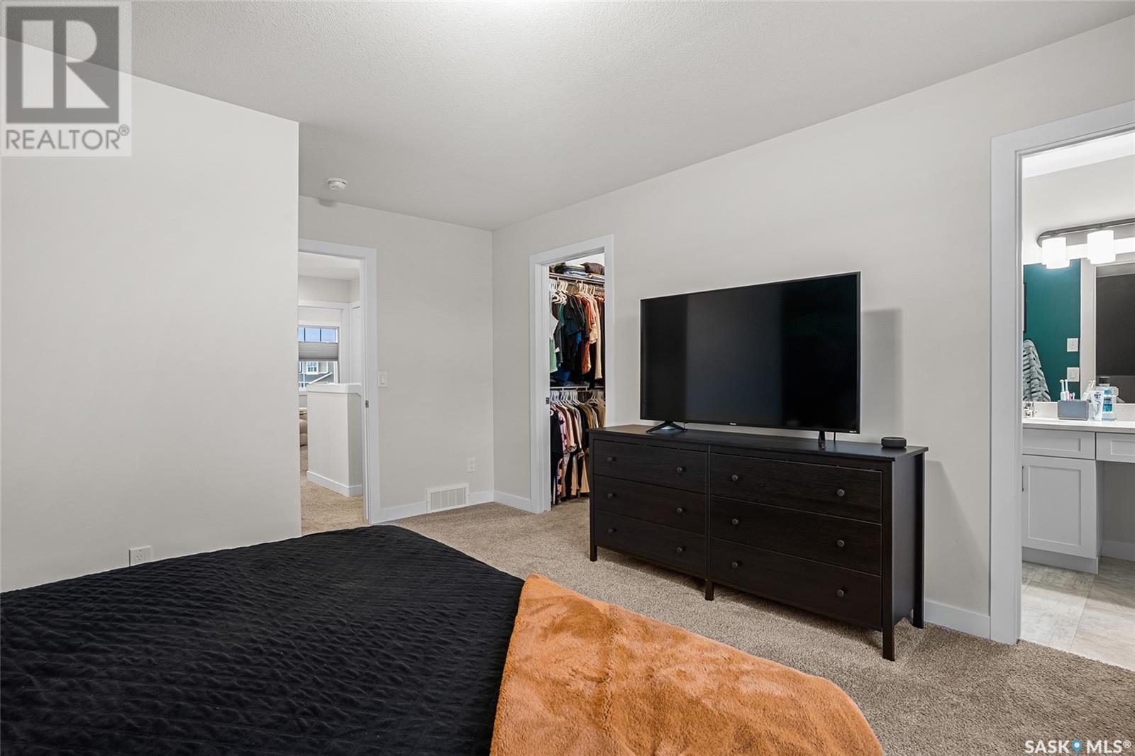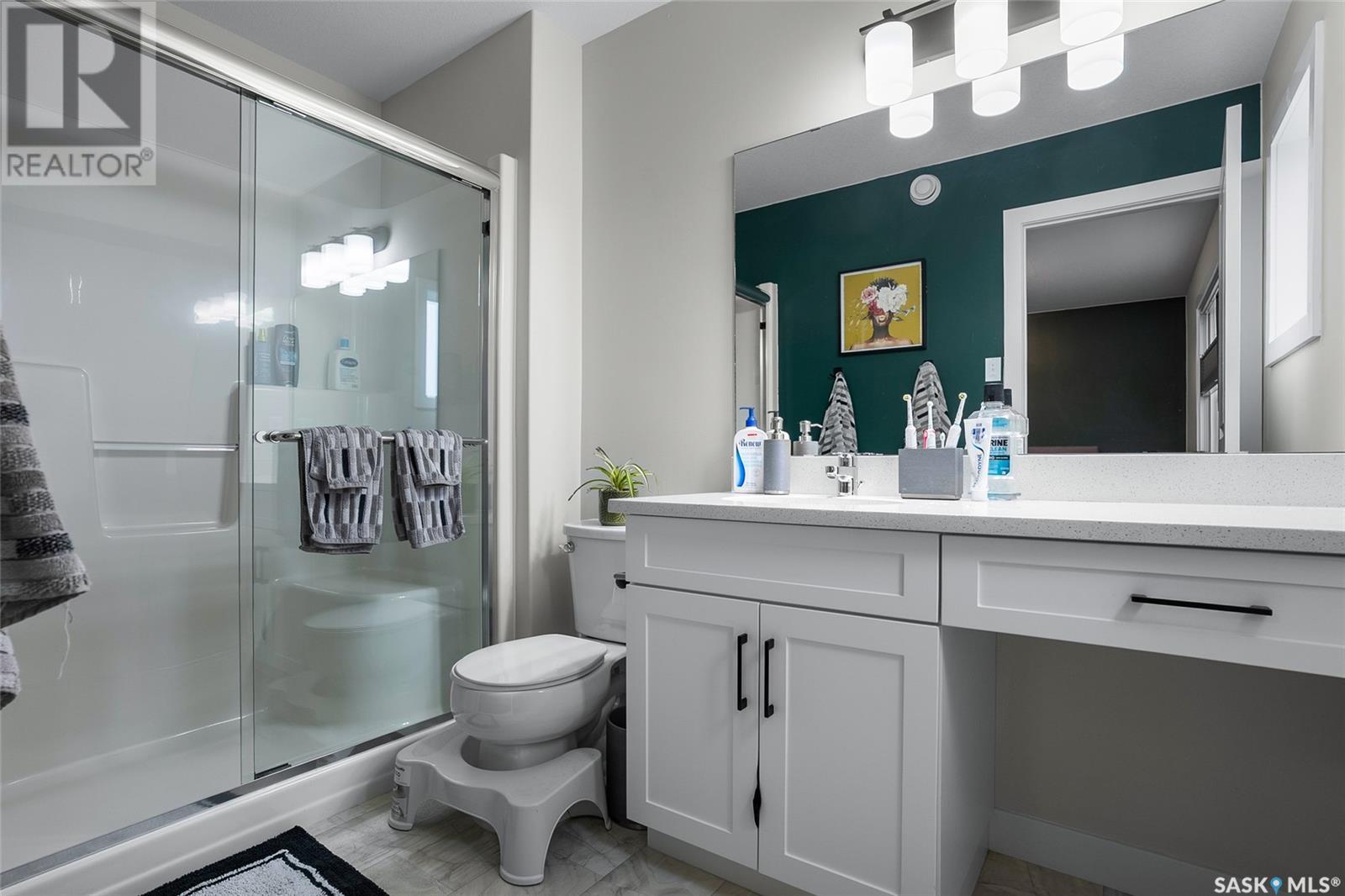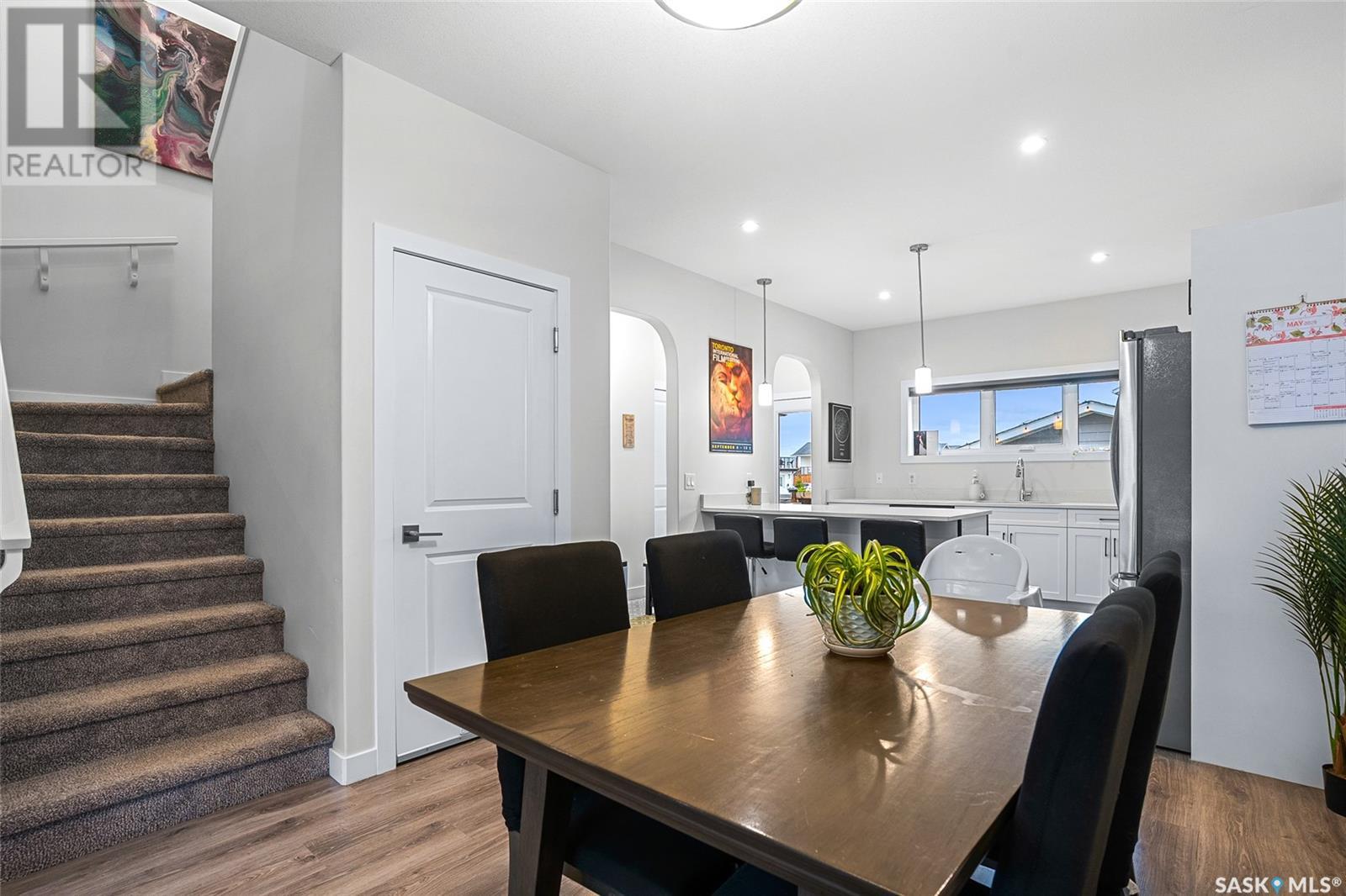 Welcome to this charming two-story home located in The Meadows area of Rosewood. Built in 2020 by North Prairie Developments, this residence offers 1,460 feet of bright, open-concept living and kitchen space, perfect for entertaining. The home features laminate flooring throughout, vinyl tile in the bathrooms, and quartz countertops. The spacious kitchen provides ample room for baking or serving guests and includes plenty of pantry storage. Stainless steel appliances are included. Upstairs, there are three bedrooms. The master boasts a lovely three-piece en-suite and a walk-in closet. The second floor is finished with high-quality carpeting, and the home is equipped with quality windows and custom Bali blinds. The laundry is conveniently located on the 2nd floor. The basement is open for development, offering potential for a rental suite with a side entrance, and space for a fourth bedroom, bathroom, and family room. Additional features include central air conditioning, an HRV unit, a humidifier, and roughed-in central vacuum. Exiting through the kitchen, you’ll find a cozy wooden deck with a privacy screen, perfect for relaxing. Step down into the large yard featuring low-maintenance turf and rock landscaping, along with a high-quality shed for storage. The double detached garage can be easily finished and offers convenient lane access. Don’t miss this opportunity— call today! (id:61201)