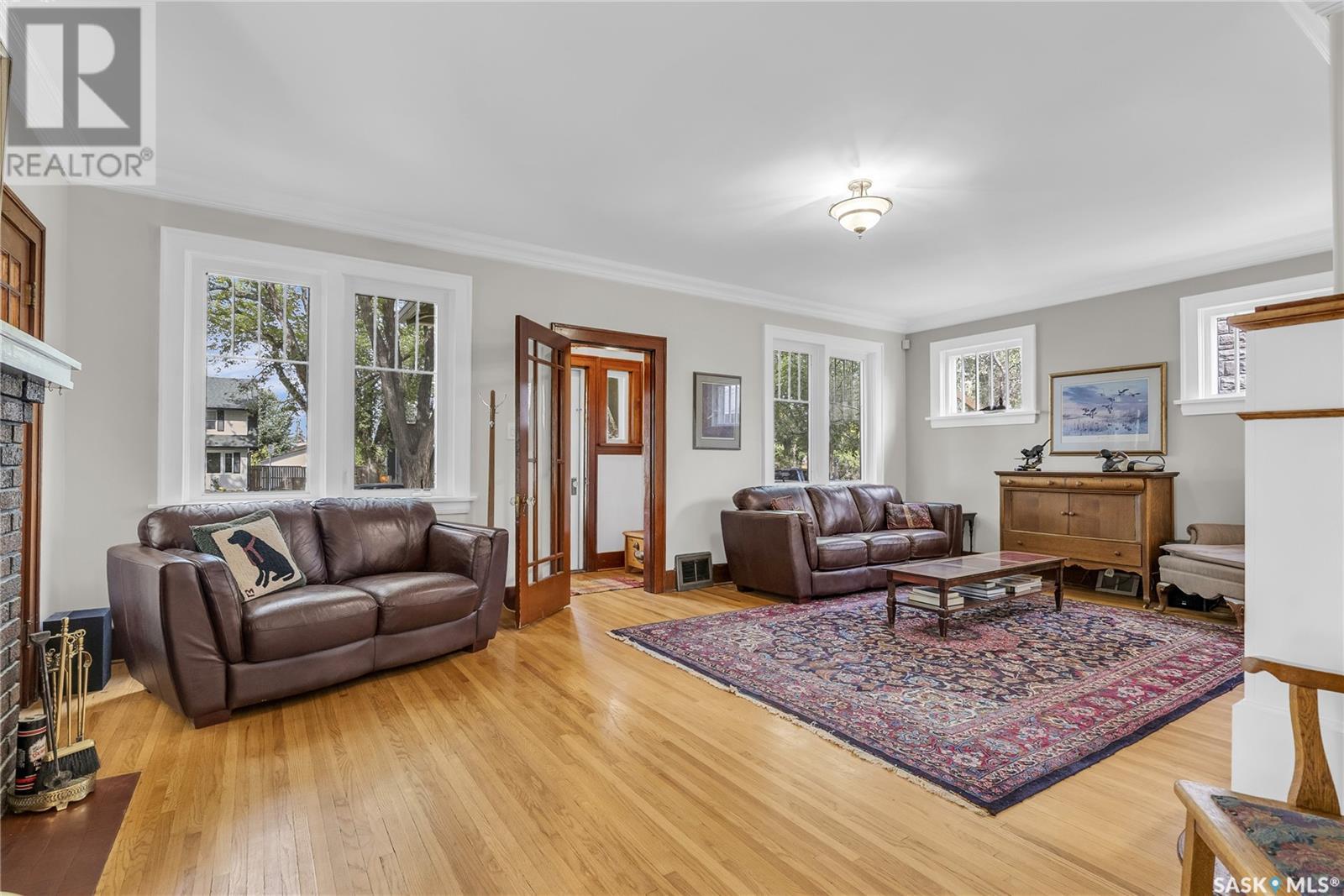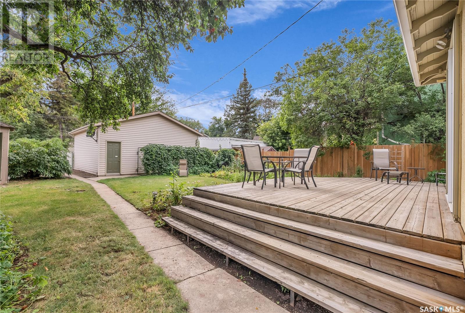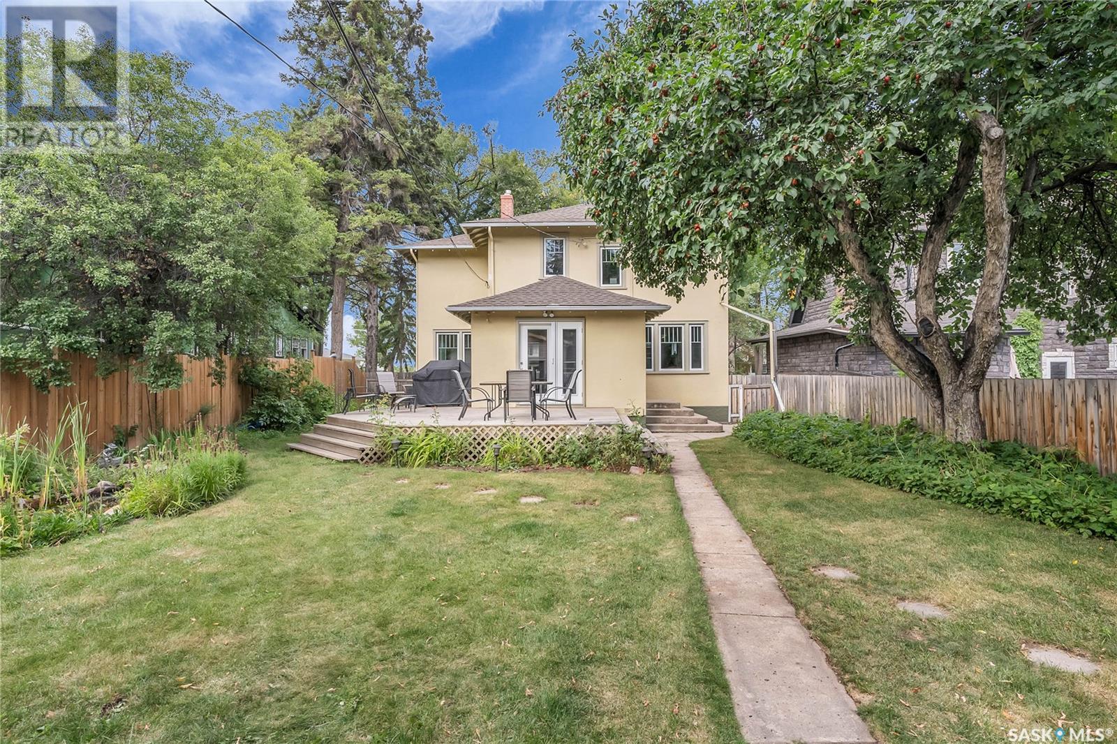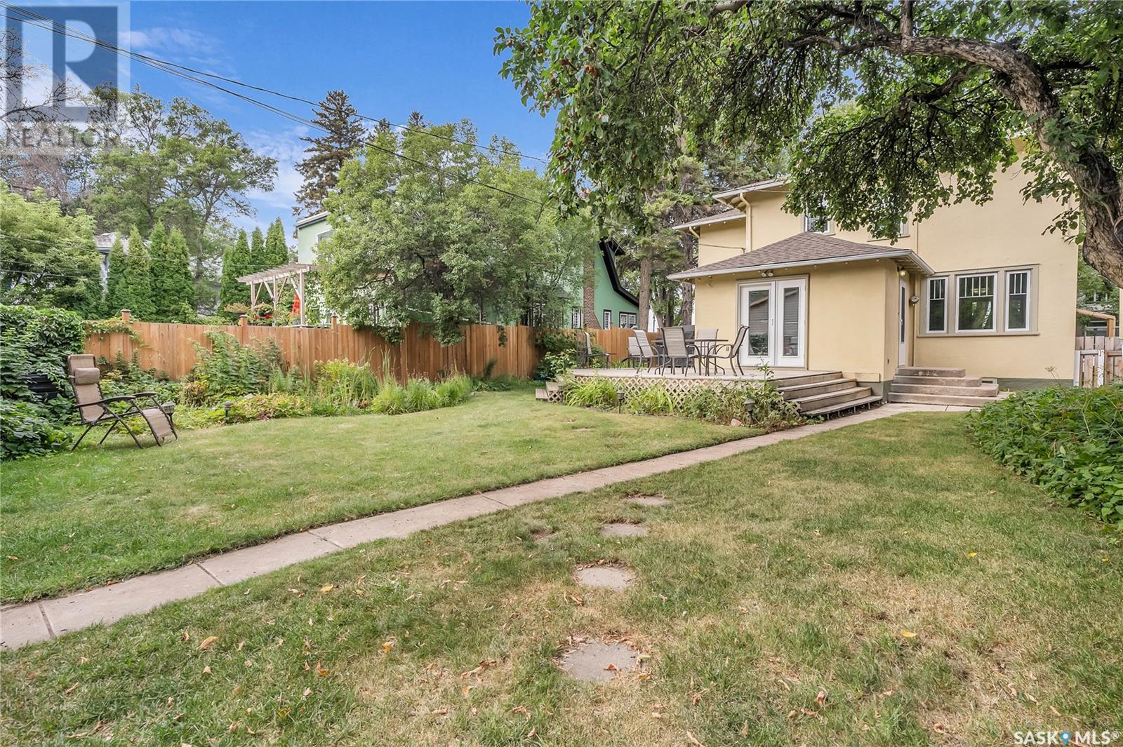 Welcome to 1032 University Drive, a stunning home with a prime location in one of the most prestigious neighbourhoods in Varsity View. Situated on 2 separate parcels with a total of 50' of frontage and 140' of depth, this property offers a rare opportunity to own one of Saskatoon's most sought-after street addresses with the University of Saskatchewan & the Meewasin Trail located within 2 blocks. Beautiful 1930s 2-storey character home that has been upgraded while still retaining plenty of original character throughout. Main floor offers a grand living space with large windows, original millwork, oak hardwoods & a wood-burning fireplace. There is also a spacious formal dining area, sun room area, and a stunning professionally-designed & renovated kitchen. The kitchen is a chef's dream with large pantry, plenty of rollout drawers, stainless steel appliances including gas range & wine fridge, tile backsplash, large island bar & custom wood bench off the back door. You will find 3 generously sized bedrooms & a full bathroom with jetted tub upstairs, with a huge 13'x9' walk-in closet off the primary bedroom. Lower level offers a 3-piece washroom, large bedroom (window may not meet modern egress standards), plenty of storage space & a custom workshop space. Tons of upgrades throughout the home including newer triple-pane windows throughout much of the home, stunning kitchen, natural gas *forced air* heat with central A/C, newer shingles, newer 24'x24' detached 2-car garage with 10' high walls. Additional off-street parking at rear. The beautifully-landscaped back yard offers a newer deck & some newer fencing, garden area, fruit trees & plenty of space. This is a turn-key character home with tons of future potential for redevelopment in one of Saskatoon's most desirable neighbourhoods. Check out the 3D virtual tour of this special home!Seller is motivated to negotiate. (id:22211)