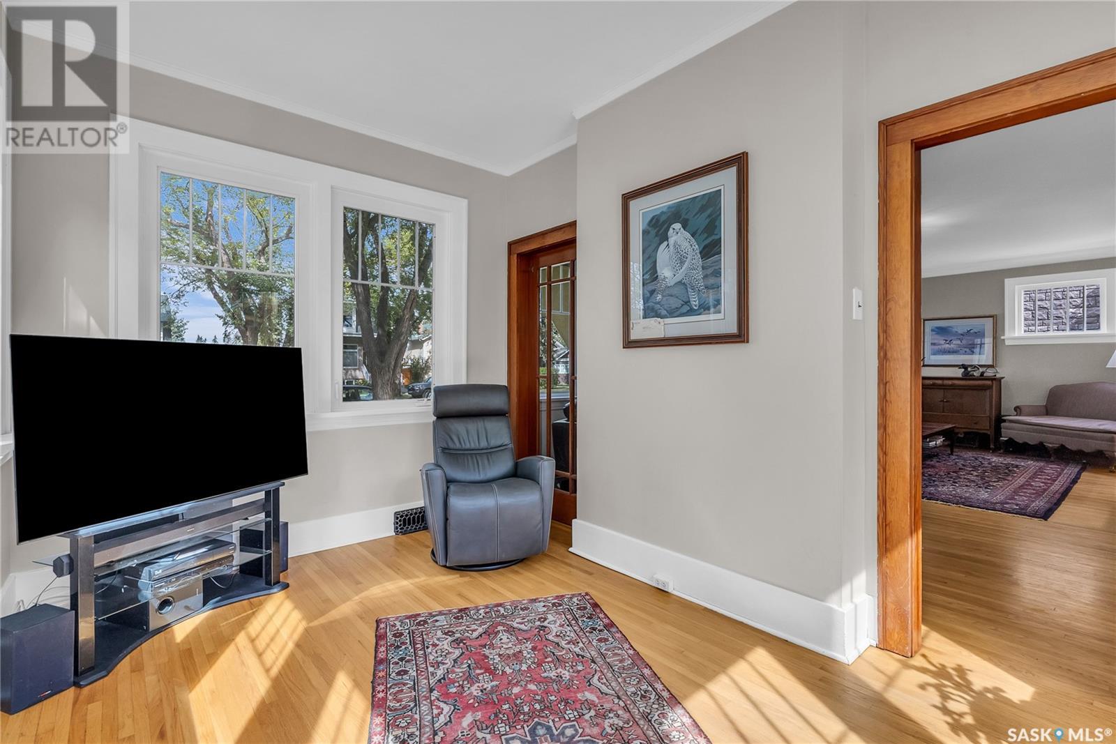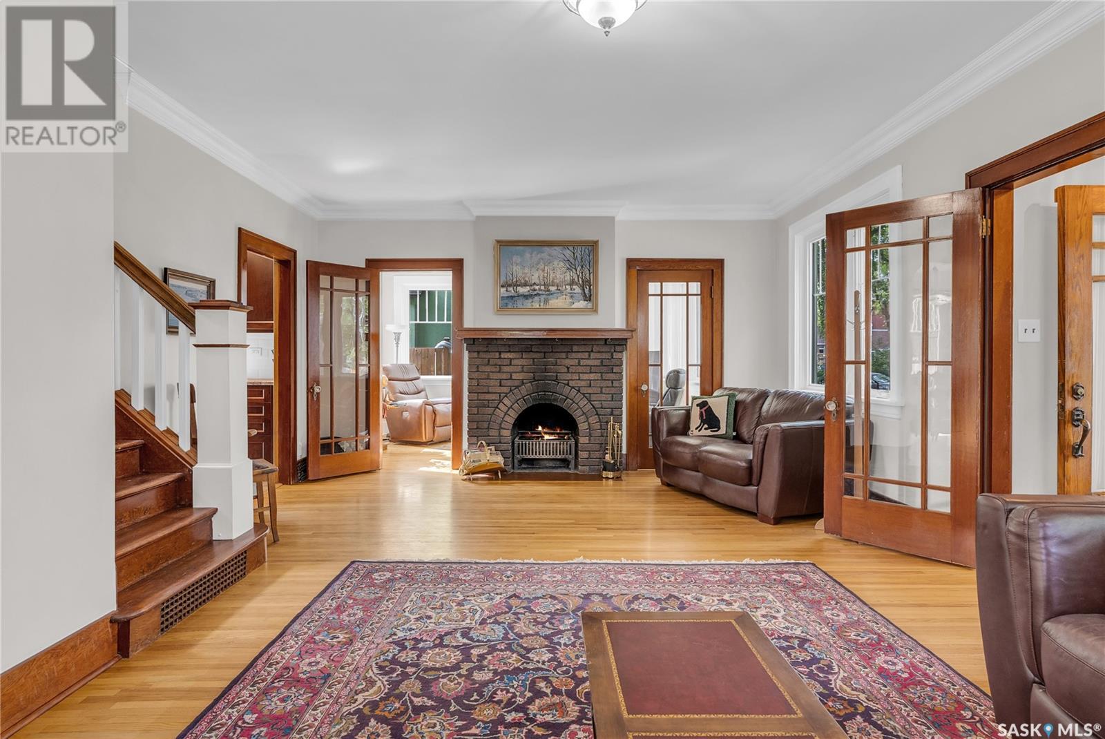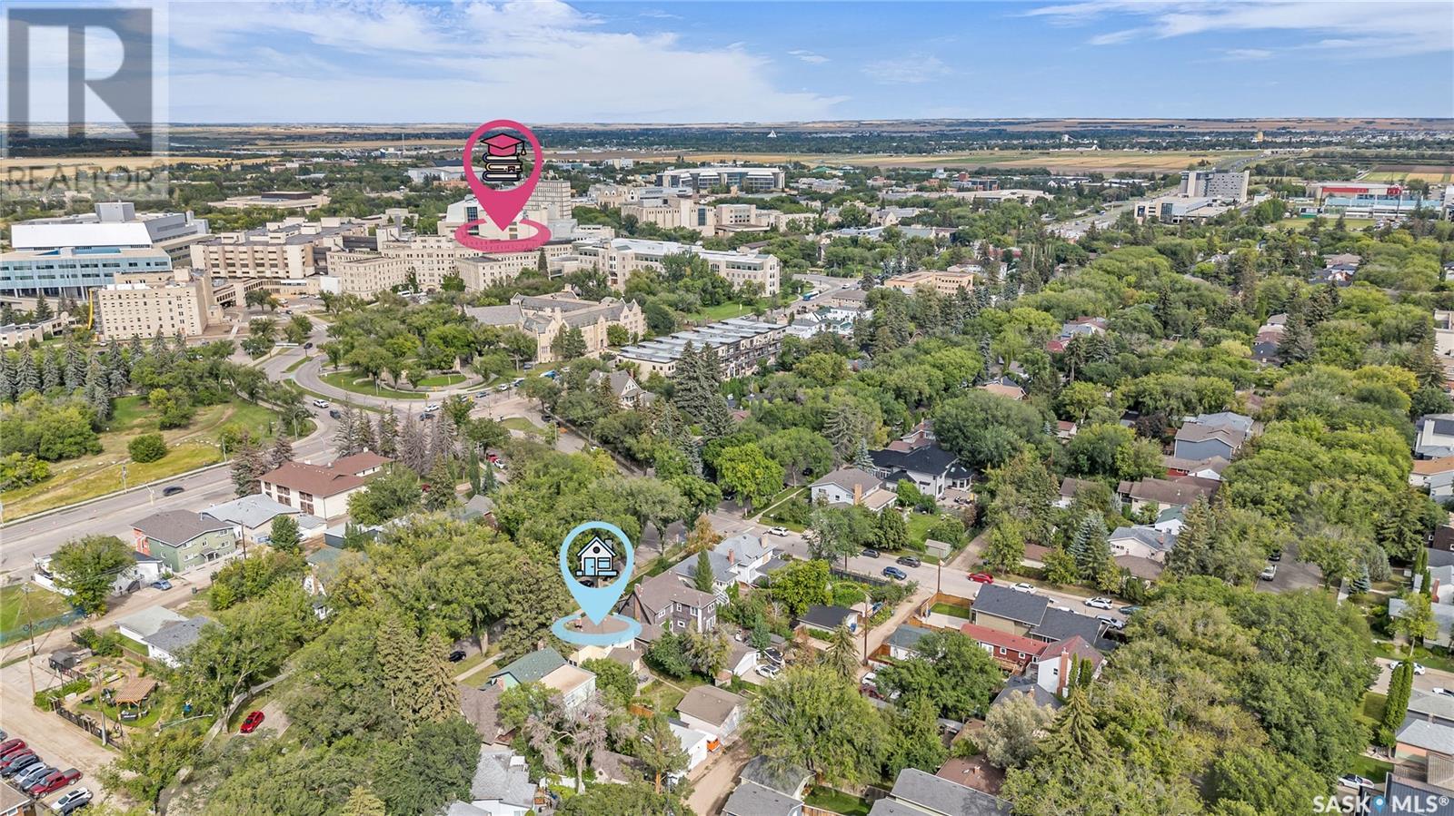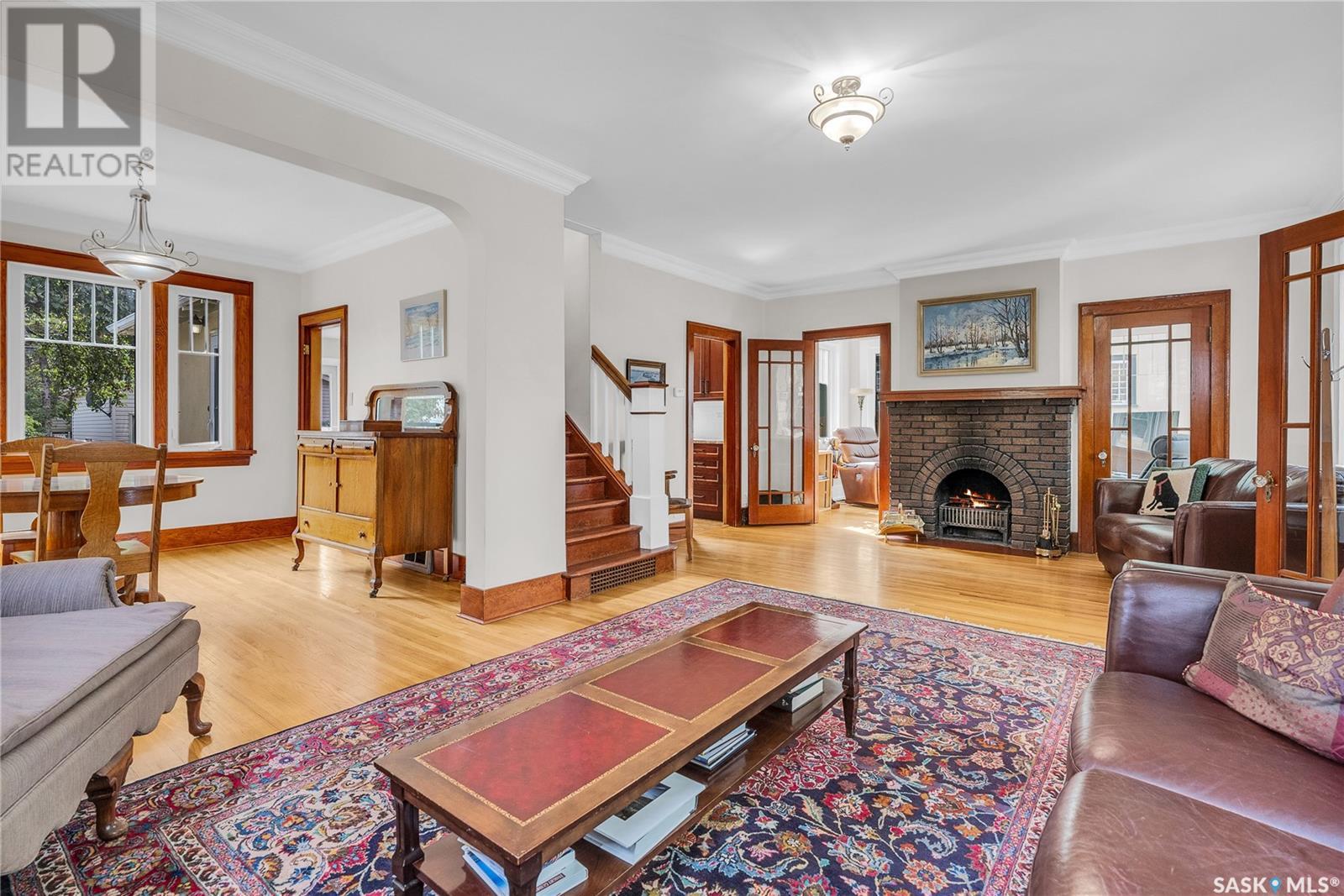 Welcome to 1032 University Drive, a stunning home with a prime location in one of the most prestigious neighbourhoods in Varsity View. Situated on 2 separate parcels with a total of 50' of frontage and 140' of depth, this property offers a rare opportunity to own one of Saskatoon's most sought-after street addresses with the University of Saskatchewan & the Meewasin Trail located within 2 blocks. Beautiful 1930s 2-storey character home that has been upgraded while still retaining plenty of original character throughout. Main floor offers a grand living space with large windows, original millwork, oak hardwoods & a wood-burning fireplace. There is also a spacious formal dining area, sun room area, and a stunning professionally-designed & renovated kitchen. The kitchen is a chef's dream with large pantry, plenty of rollout drawers, stainless steel appliances including gas range & wine fridge, tile backsplash, large island bar & custom wood bench off the back door. You will find 3 generously sized bedrooms & a full bathroom with jetted tub upstairs, with a huge 13'x9' walk-in closet off the primary bedroom. Lower level offers a 3-piece washroom, large bedroom (window may not meet modern egress standards), plenty of storage space & a custom workshop space. Tons of upgrades throughout the home including newer triple-pane windows throughout much of the home, stunning kitchen, natural gas *forced air* heat with central A/C, newer shingles, newer 24'x24' detached 2-car garage with 10' high walls. Additional off-street parking at rear. The beautifully-landscaped back yard offers a newer deck & some newer fencing, garden area, fruit trees & plenty of space. This is a turn-key character home with tons of future potential for redevelopment in one of Saskatoon's most desirable neighbourhoods. Check out the 3D virtual tour of this special home!Seller is motivated to negotiate. (id:22211)