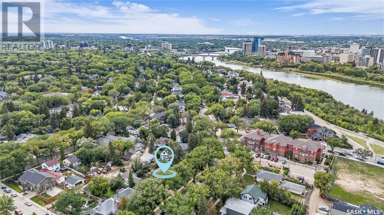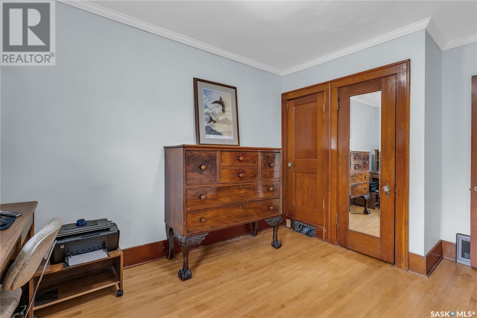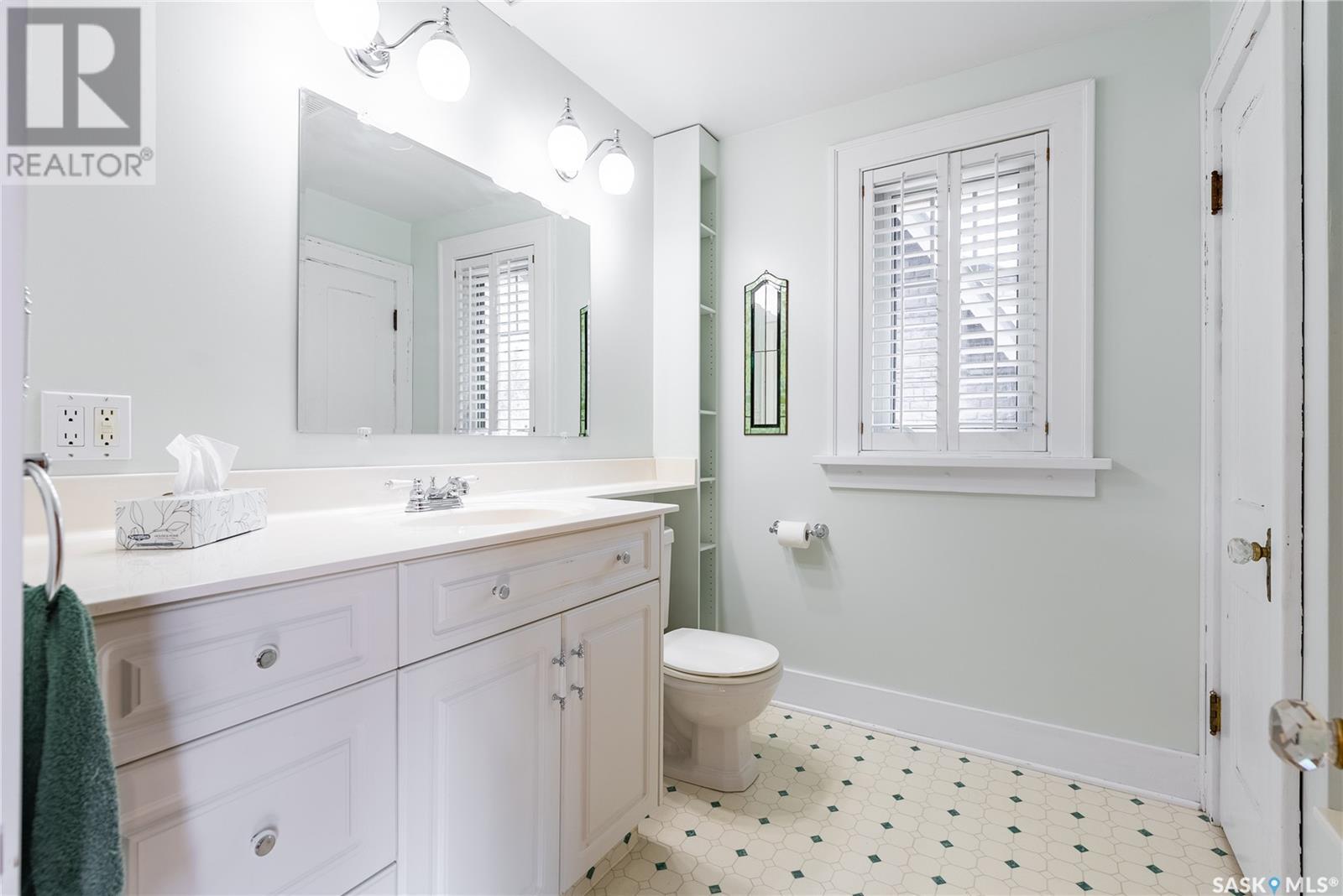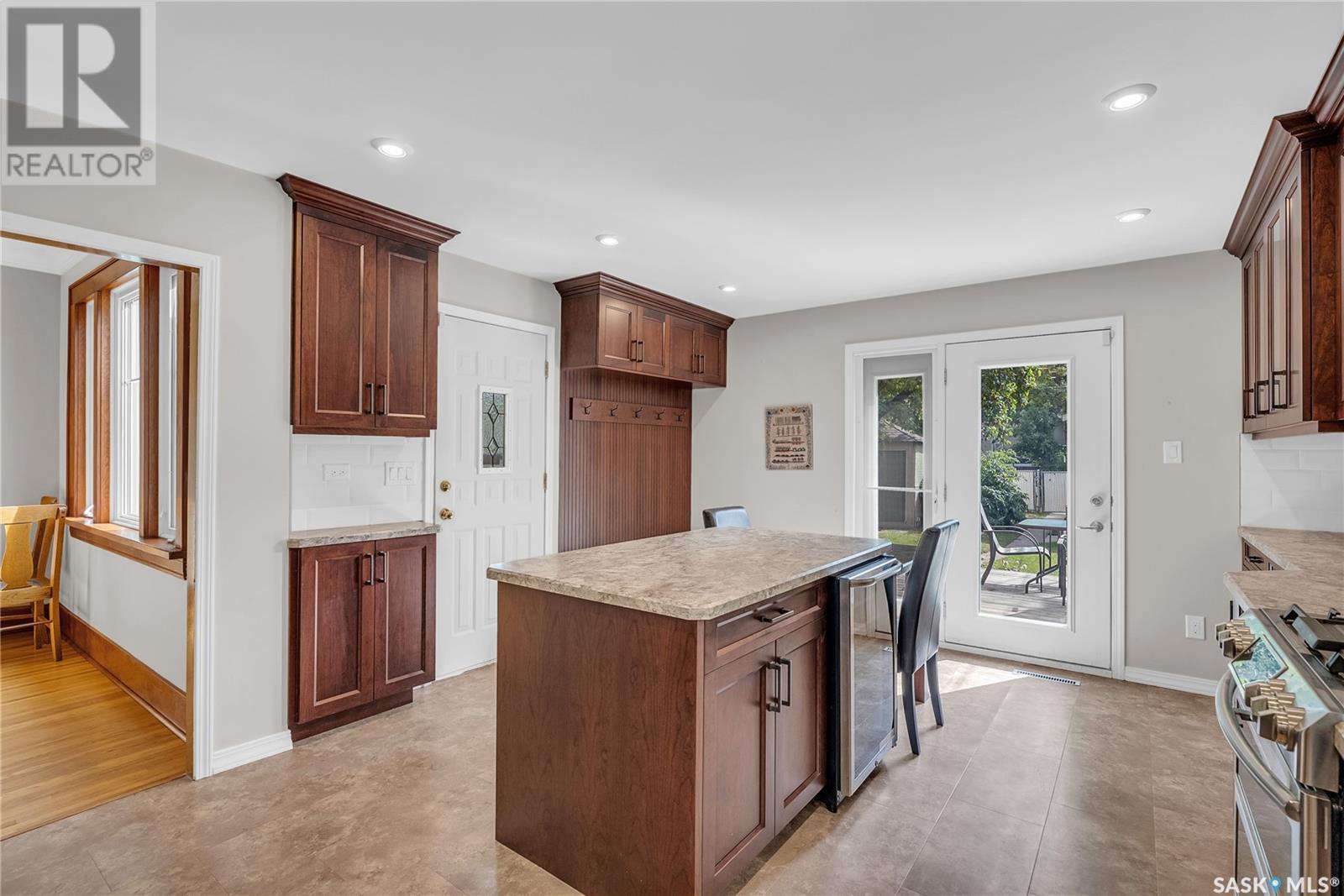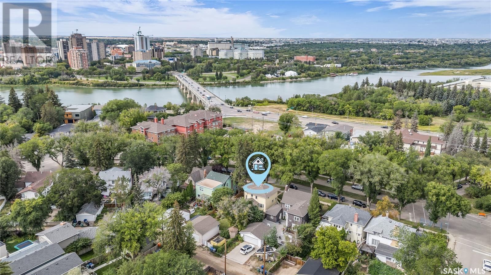 Welcome to 1032 University Drive, a stunning home with a prime location in one of the most prestigious neighbourhoods in Varsity View. Situated on 2 separate parcels with a total of 50' of frontage and 140' of depth, this property offers a rare opportunity to own one of Saskatoon's most sought-after street addresses with the University of Saskatchewan & the Meewasin Trail located within 2 blocks. Beautiful 1930s 2-storey character home that has been upgraded while still retaining plenty of original character throughout. Main floor offers a grand living space with large windows, original millwork, oak hardwoods & a wood-burning fireplace. There is also a spacious formal dining area, sun room area, and a stunning professionally-designed & renovated kitchen. The kitchen is a chef's dream with large pantry, plenty of rollout drawers, stainless steel appliances including gas range & wine fridge, tile backsplash, large island bar & custom wood bench off the back door. You will find 3 generously sized bedrooms & a full bathroom with jetted tub upstairs, with a huge 13'x9' walk-in closet off the primary bedroom. Lower level offers a 3-piece washroom, large bedroom (window may not meet modern egress standards), plenty of storage space & a custom workshop space. Tons of upgrades throughout the home including newer triple-pane windows throughout much of the home, stunning kitchen, natural gas *forced air* heat with central A/C, newer shingles, newer 24'x24' detached 2-car garage with 10' high walls. Additional off-street parking at rear. The beautifully-landscaped back yard offers a newer deck & some newer fencing, garden area, fruit trees & plenty of space. This is a turn-key character home with tons of future potential for redevelopment in one of Saskatoon's most desirable neighbourhoods. Check out the 3D virtual tour of this special home!Seller is motivated to negotiate. (id:22211)