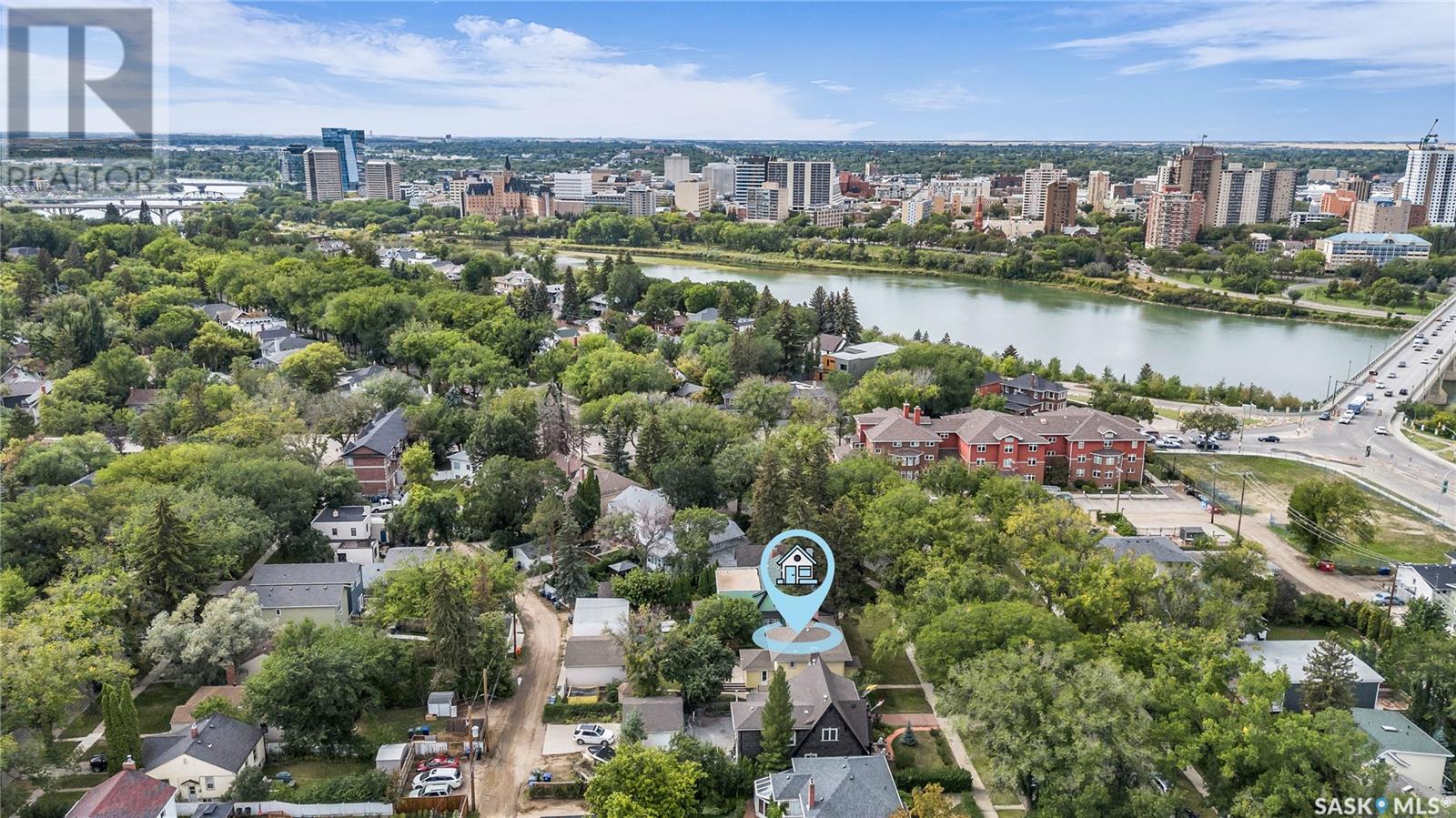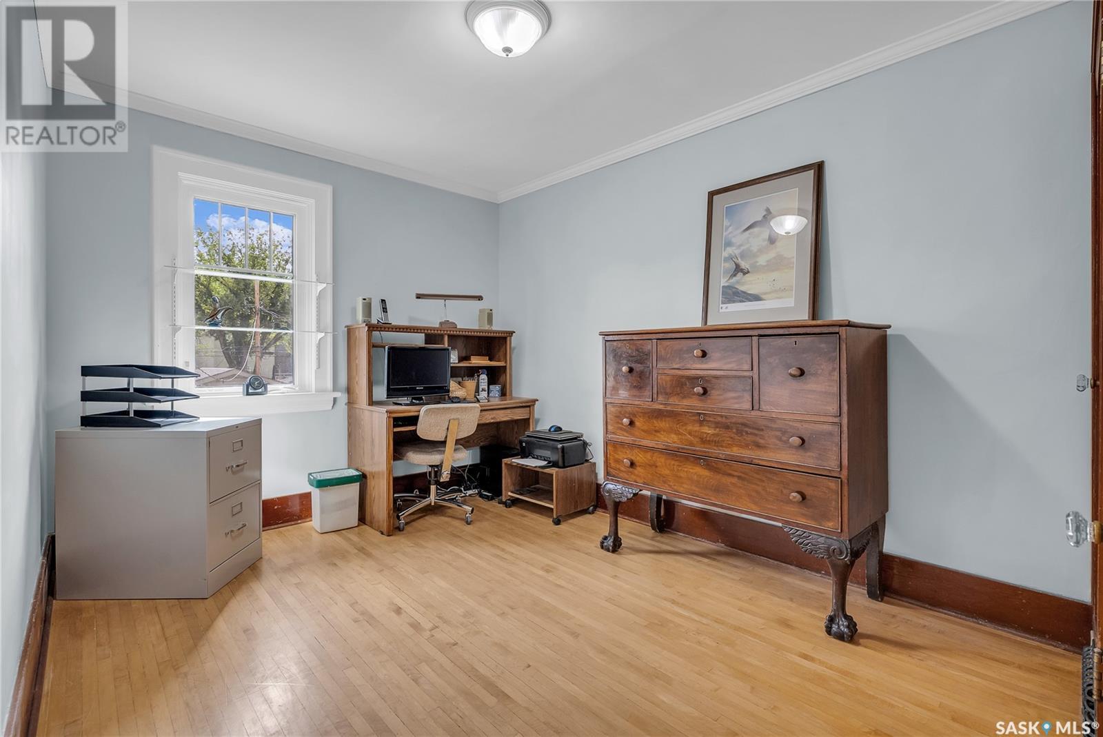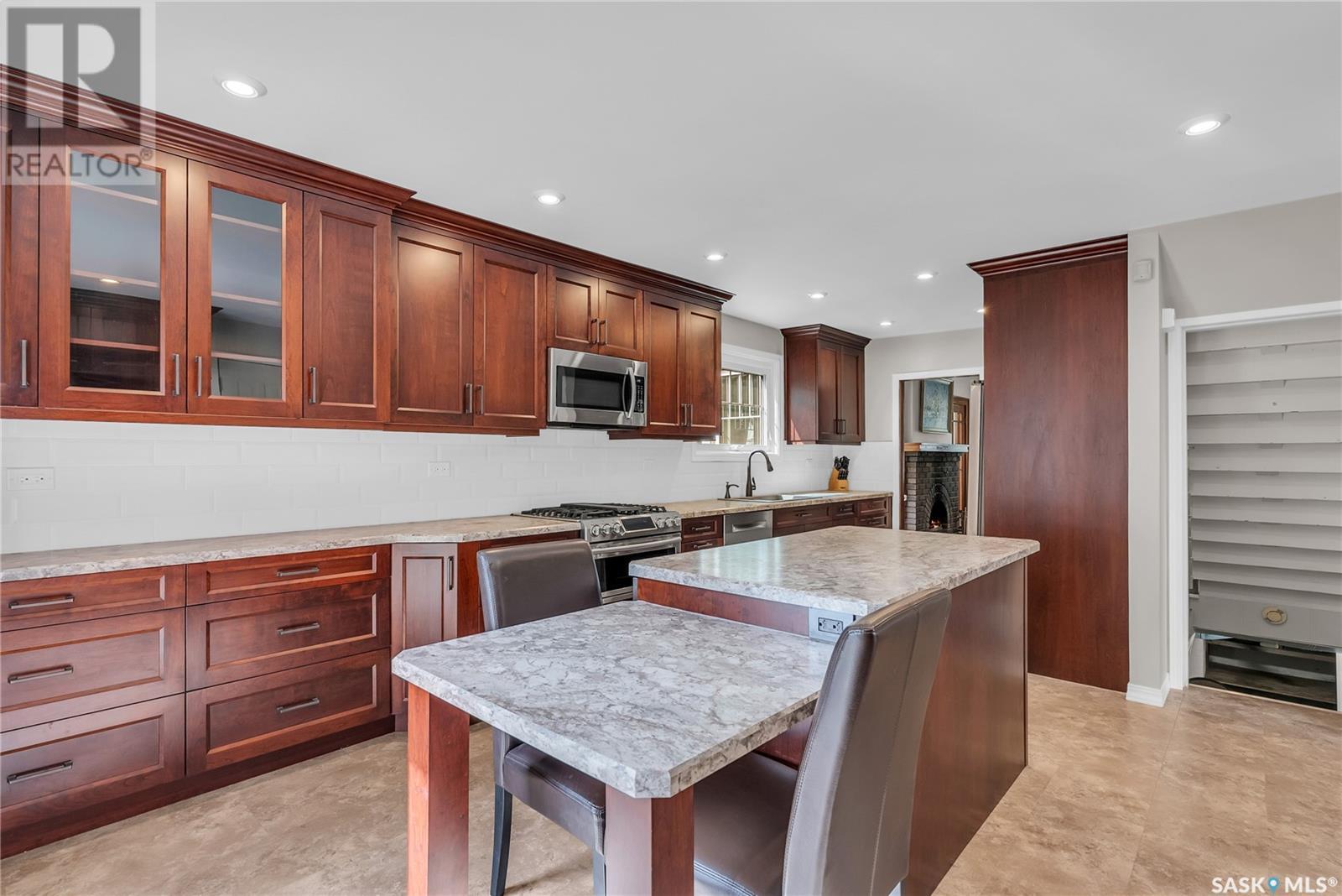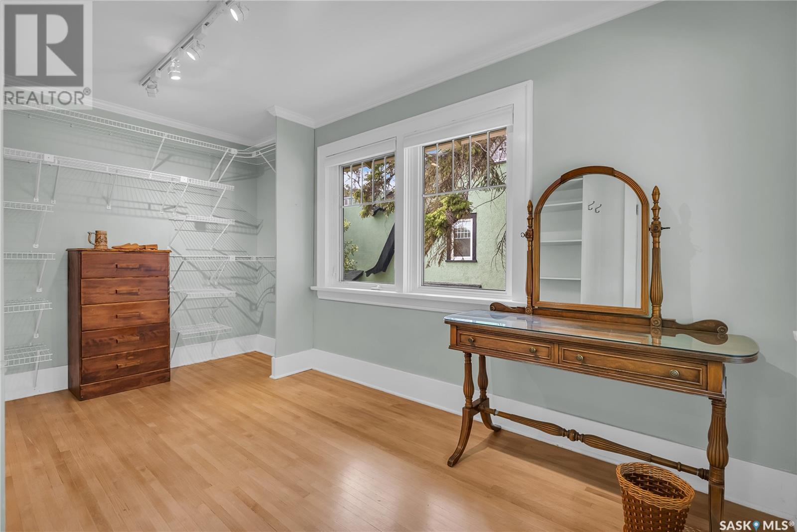Welcome to 1032 University Drive, a stunning home with a prime location in one of the most prestigious neighbourhoods in Varsity View. Situated on 2 separate parcels with a total of 50' of frontage and 140' of depth, this property offers a rare opportunity to own one of Saskatoon's most sought-after street addresses with the University of Saskatchewan & the Meewasin Trail located within 2 blocks. Beautiful 1930s 2-storey character home that has been upgraded while still retaining plenty of original character throughout. Main floor offers a grand living space with large windows, original millwork, oak hardwoods & a wood-burning fireplace. There is also a spacious formal dining area, sun room area, and a stunning professionally-designed & renovated kitchen. The kitchen is a chef's dream with large pantry, plenty of rollout drawers, stainless steel appliances including gas range & wine fridge, tile backsplash, large island bar & custom wood bench off the back door. You will find 3 generously sized bedrooms & a full bathroom with jetted tub upstairs, with a huge 13'x9' walk-in closet off the primary bedroom. Lower level offers a 3-piece washroom, large bedroom (window may not meet modern egress standards), plenty of storage space & a custom workshop space. Tons of upgrades throughout the home including newer triple-pane windows throughout much of the home, stunning kitchen, natural gas *forced air* heat with central A/C, newer shingles, newer 24'x24' detached 2-car garage with 10' high walls. Additional off-street parking at rear. The beautifully-landscaped back yard offers a newer deck & some newer fencing, garden area, fruit trees & plenty of space. This is a turn-key character home with tons of future potential for redevelopment in one of Saskatoon's most desirable neighbourhoods. Check out the 3D virtual tour of this special home!Seller is motivated to negotiate. (id:22211)
