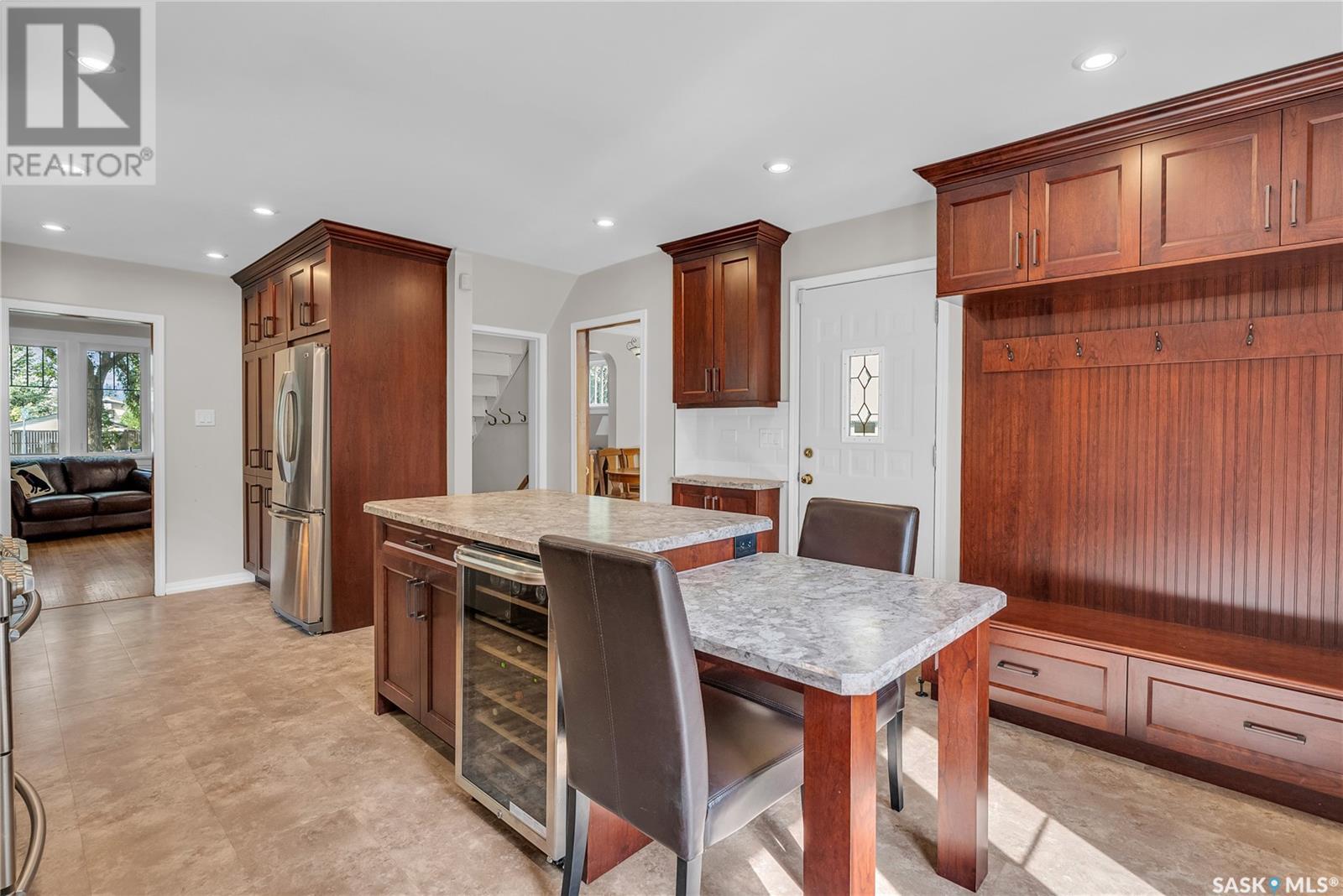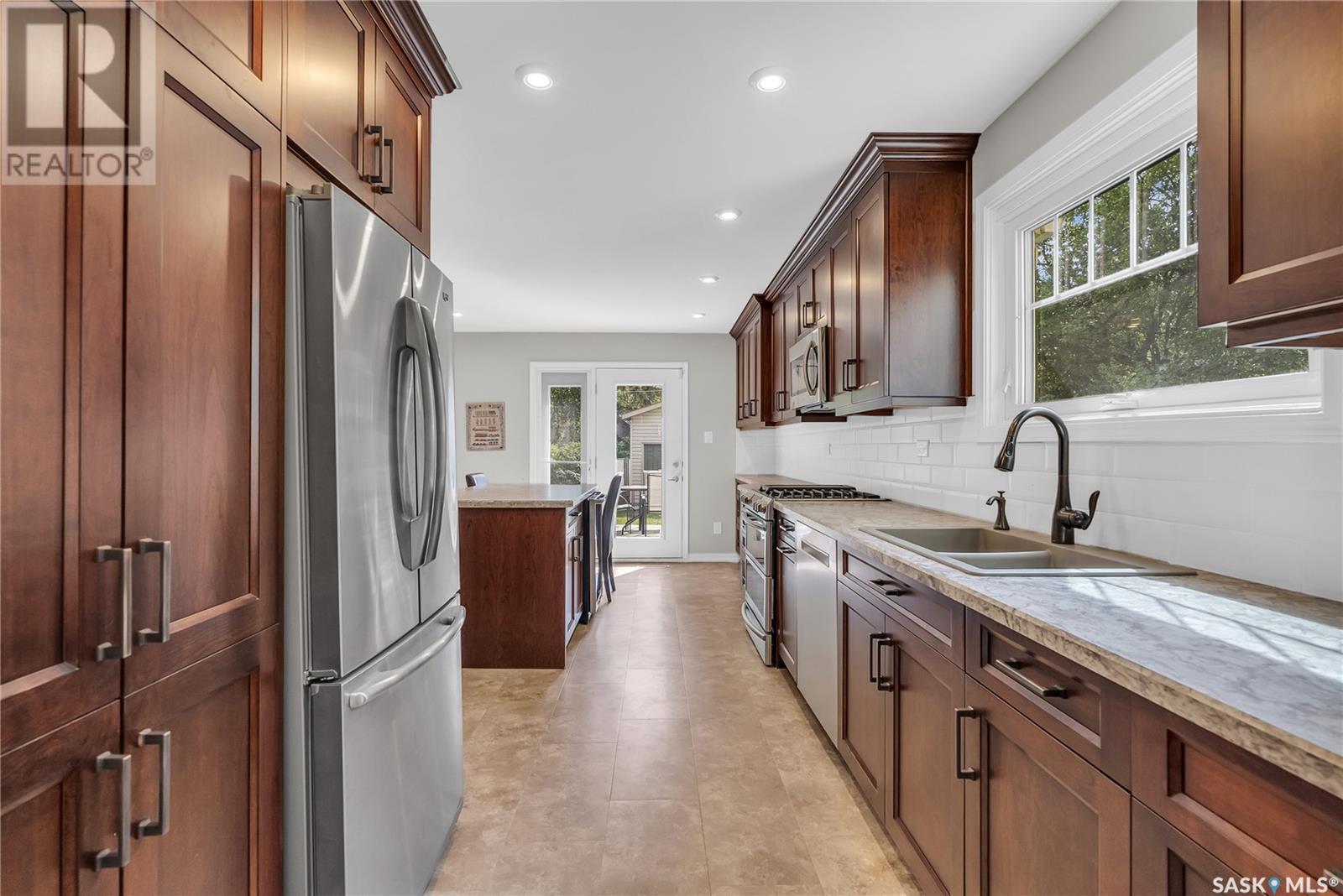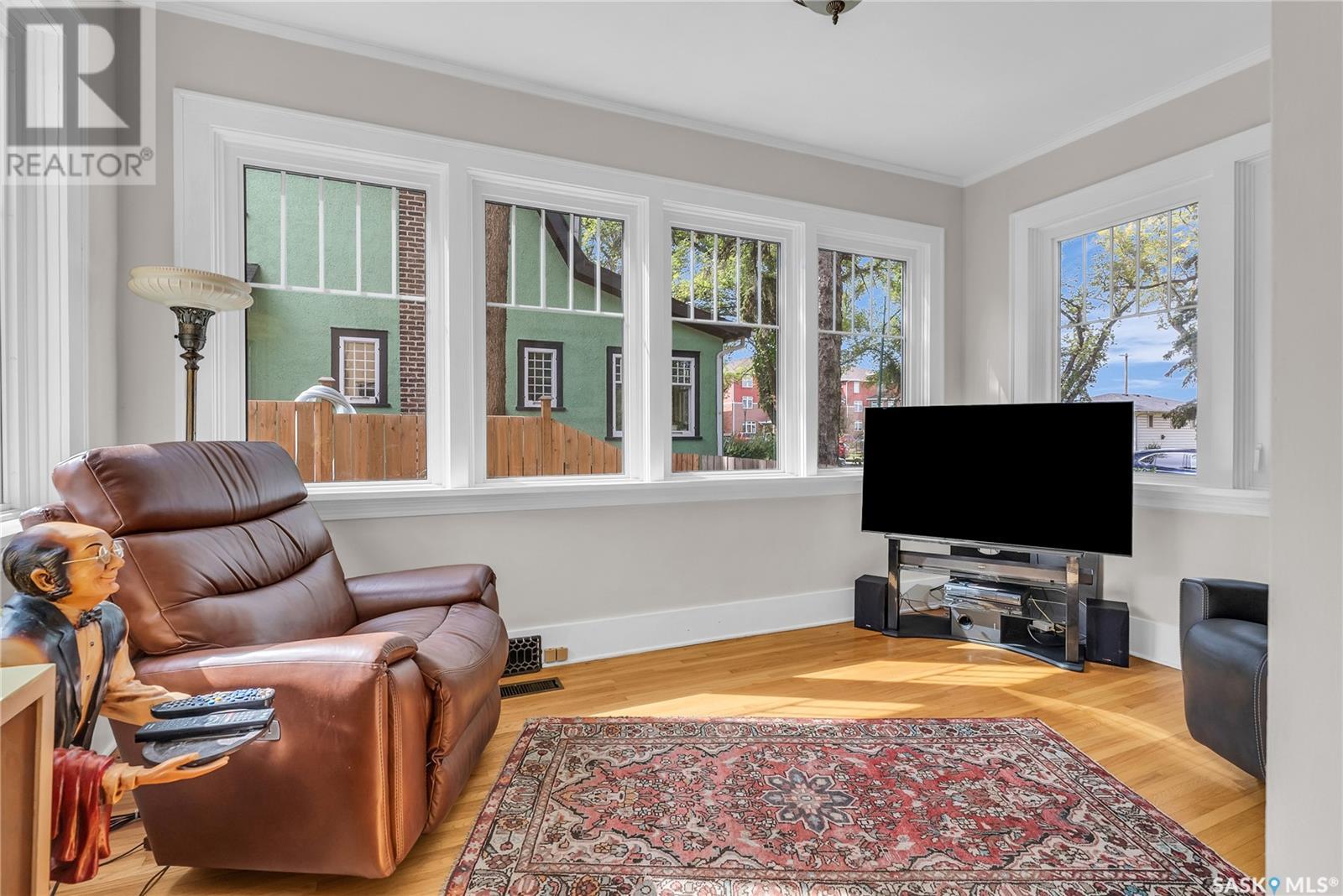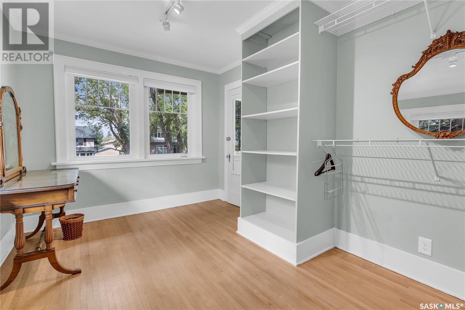 Welcome to 1032 University Drive, a stunning home with a prime location in one of the most prestigious neighbourhoods in Varsity View. Situated on 2 separate parcels with a total of 50' of frontage and 140' of depth, this property offers a rare opportunity to own one of Saskatoon's most sought-after street addresses with the University of Saskatchewan & the Meewasin Trail located within 2 blocks. Beautiful 1930s 2-storey character home that has been upgraded while still retaining plenty of original character throughout. Main floor offers a grand living space with large windows, original millwork, oak hardwoods & a wood-burning fireplace. There is also a spacious formal dining area, sun room area, and a stunning professionally-designed & renovated kitchen. The kitchen is a chef's dream with large pantry, plenty of rollout drawers, stainless steel appliances including gas range & wine fridge, tile backsplash, large island bar & custom wood bench off the back door. You will find 3 generously sized bedrooms & a full bathroom with jetted tub upstairs, with a huge 13'x9' walk-in closet off the primary bedroom. Lower level offers a 3-piece washroom, large bedroom (window may not meet modern egress standards), plenty of storage space & a custom workshop space. Tons of upgrades throughout the home including newer triple-pane windows throughout much of the home, stunning kitchen, natural gas *forced air* heat with central A/C, newer shingles, newer 24'x24' detached 2-car garage with 10' high walls. Additional off-street parking at rear. The beautifully-landscaped back yard offers a newer deck & some newer fencing, garden area, fruit trees & plenty of space. This is a turn-key character home with tons of future potential for redevelopment in one of Saskatoon's most desirable neighbourhoods. Check out the 3D virtual tour of this special home!Seller is motivated to negotiate. (id:22211)