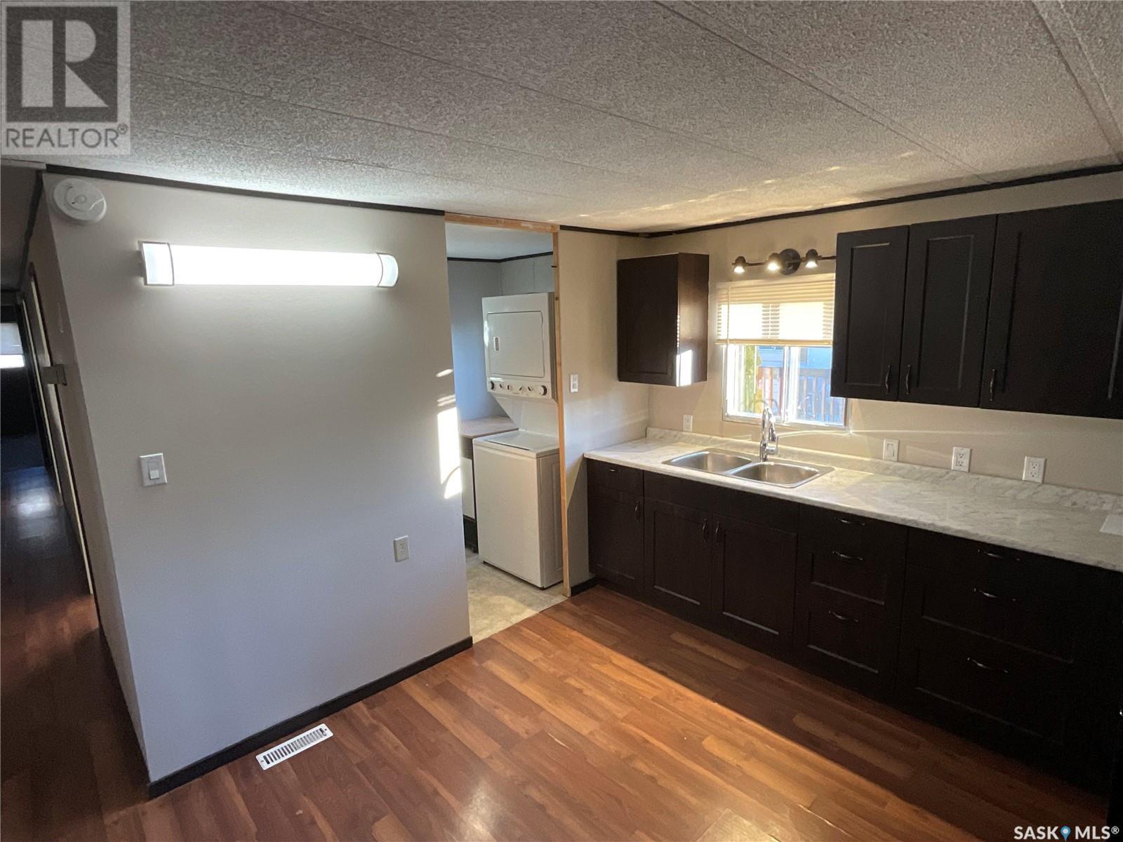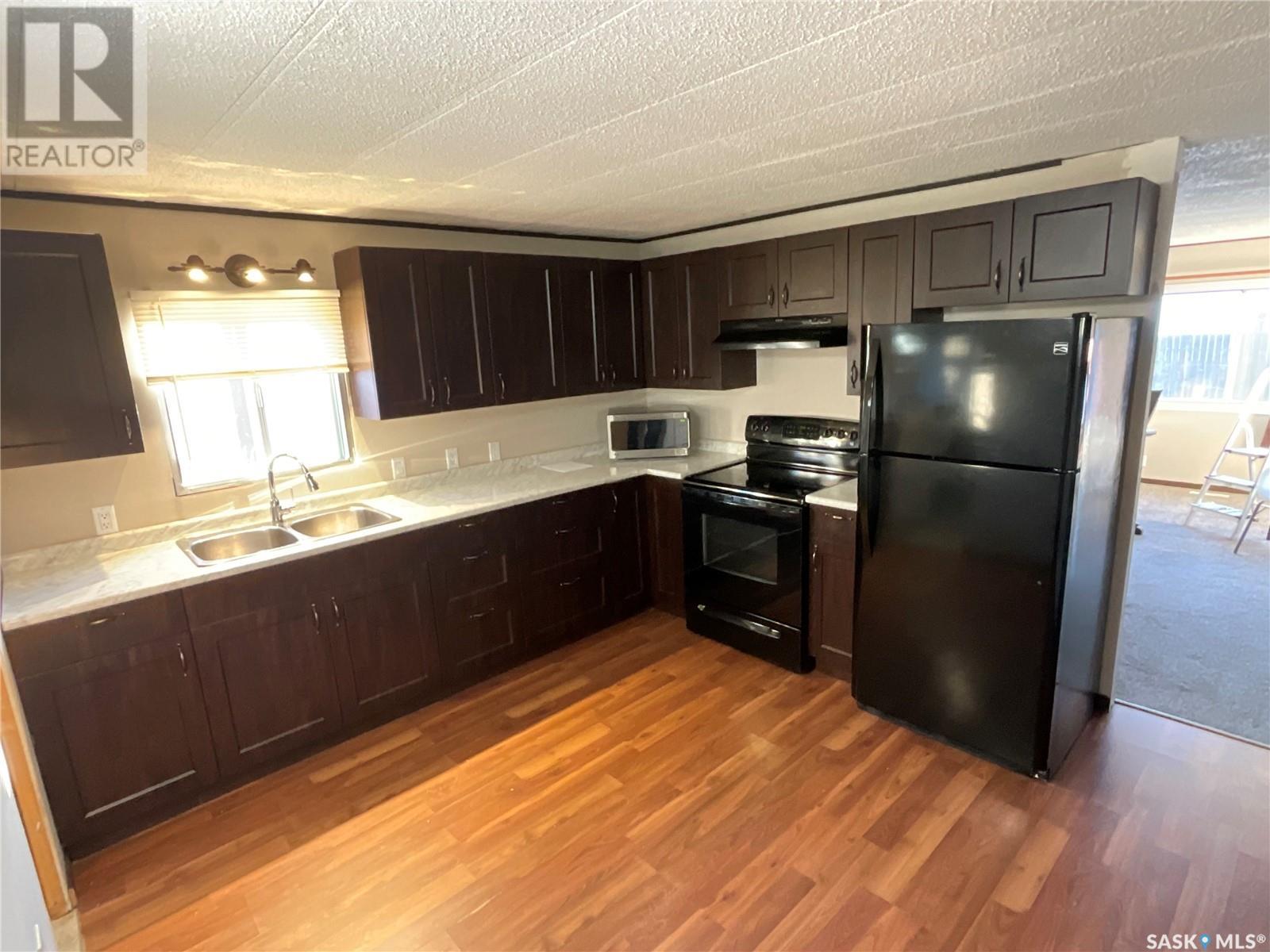 This tidy well kept mobile home sits on a 40' x 90' rented lot. There's a double asphalt/gravel drive and generous lawn spaces, with a nice covered deck in the backyard. It has a low maintenance exterior of vinyl siding and aluminium trim. Inside you'll find an open and functional floor plan with large windows allowing plenty of natural light. The spacious living room is open to the kitchen which offers plenty of cupboard and counter space. Down the hall you'll find three bedrooms, and a full four-piece bathroom. The laundry room is located off of the kitchen. The existing appliances are included. (id:22211)
