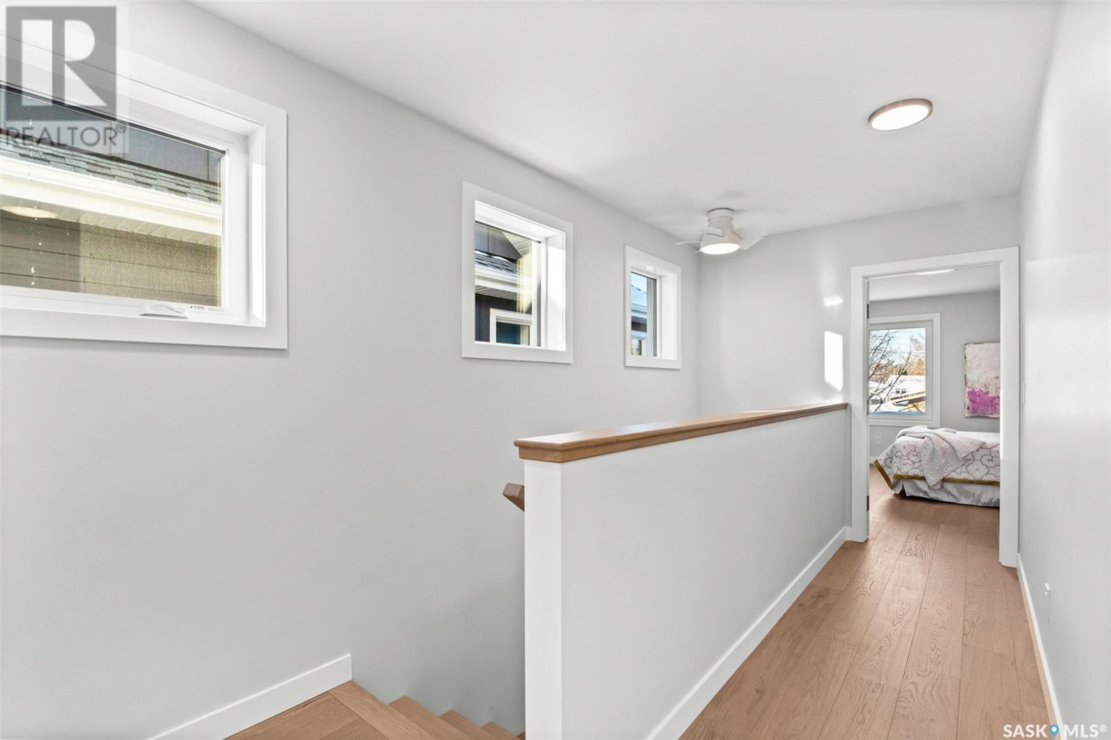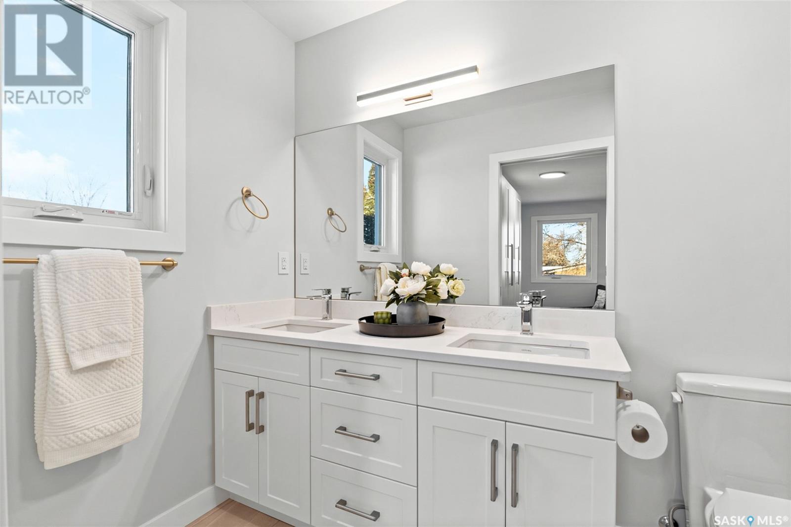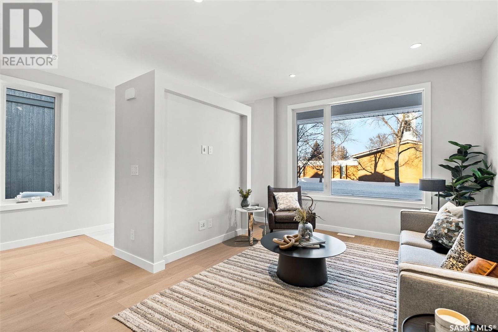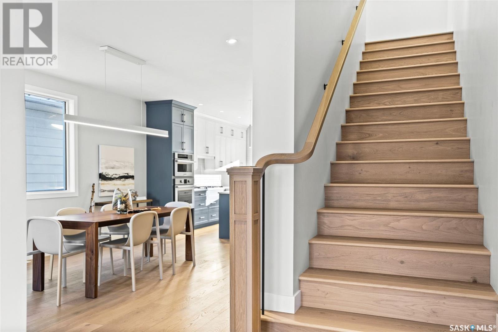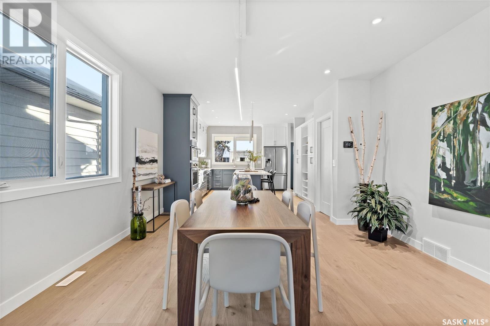 Welcome to 1418 10th St E! A stunning new custom build loaded with energy efficient upgrades in the highly desirable neighbourhood of Varsity View with grocery stores & amenities close by, this location would make the perfect place to call home. Featuring 1800 sqft of beautifully finished space with a basement suite. Inside you will find a spacious & bright open concept floor plan with gorgeous white oak engineered hardwoods throughout. The kitchen is the showpiece of the home featuring a gas range, wall oven & microwave, floor to ceiling custom Superior cabinetry, large pantry, quartz counters, and island with bar seating. Dining room is spacious with room for a large table great for hosting guests. Custom millwork mudroom & a stylish 2-piece bath can also be found on this level. The primary suite features a large walk-in closet with custom built-ins. Ensuite features double sinks, glass shower enclosure with rain shower head & & hand wand for convenience. Two large secondary bedrooms, a second bathroom and laundry room can also be found on this level. Basement has a legal 1-bedroom suite which comes with all appliances & separate heat for comfort. Notable upgrades; solar ready roof, integrated pro series mechanical system with modulating natural gas furnace, heat pump, comfort sync controls plus and energy recovery ventilator, on demand hot water tank, Smart Home lighting. Natural gas barbecue hookup. Maintenance free composite exterior. Fiberglass impact resistant shingles. Central air. Decorative paving slab patio and walkways. Large covered deck overlooking back yard, smaller covered shade deck facing street. Double detached garage with 220-volt outlet so it’s electric vehicle charger ready. Too many upgrades to list. Contact your agent today to book your viewing! (id:22211)
