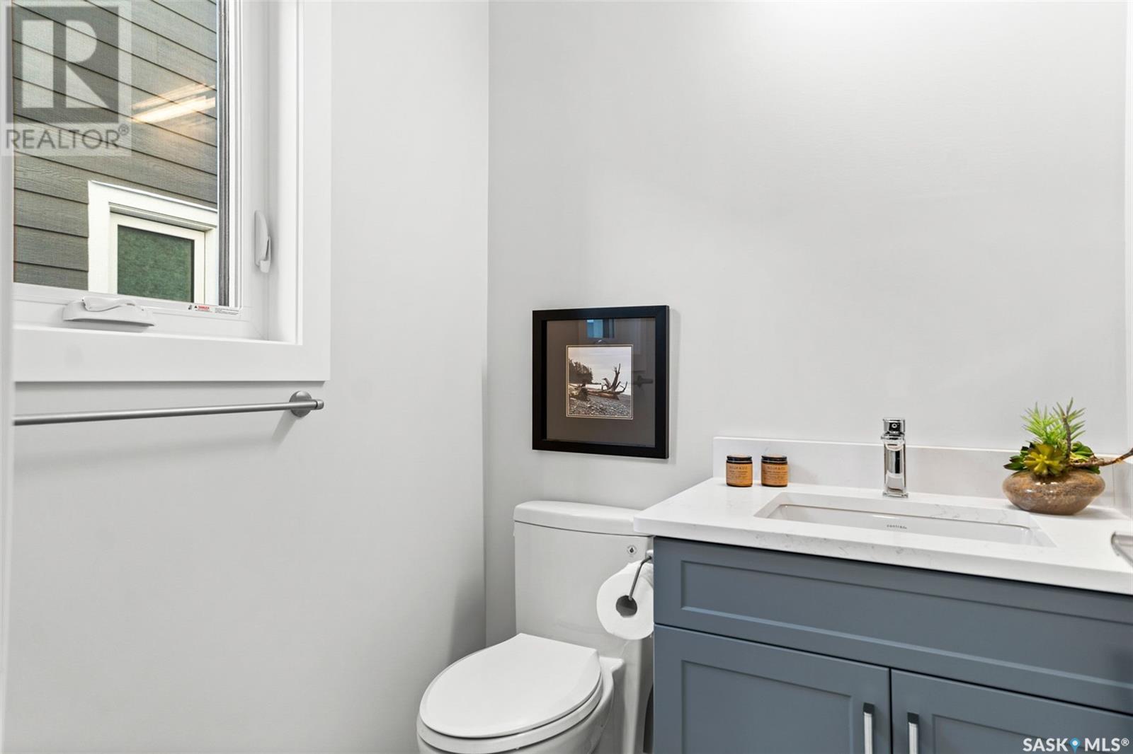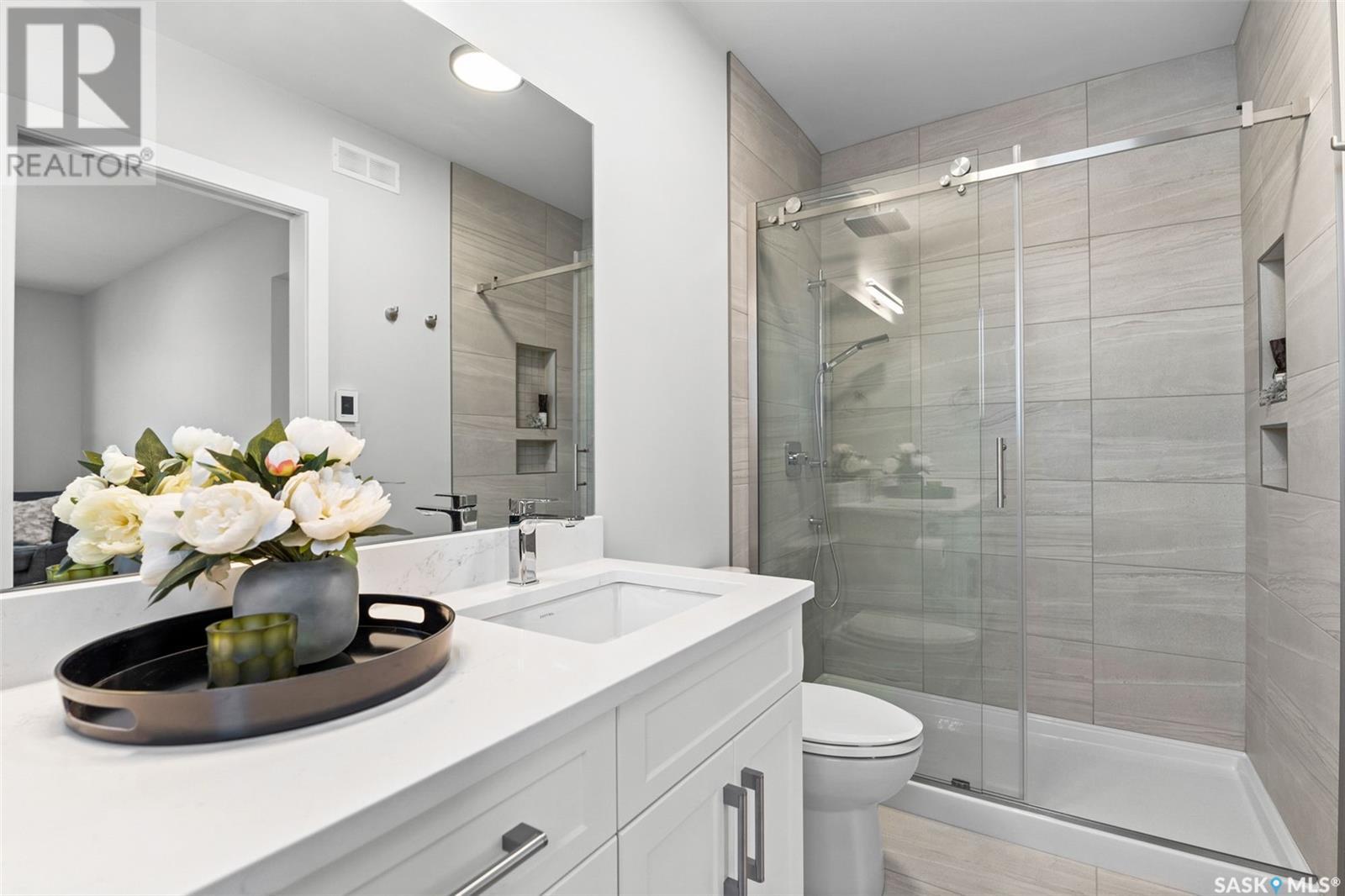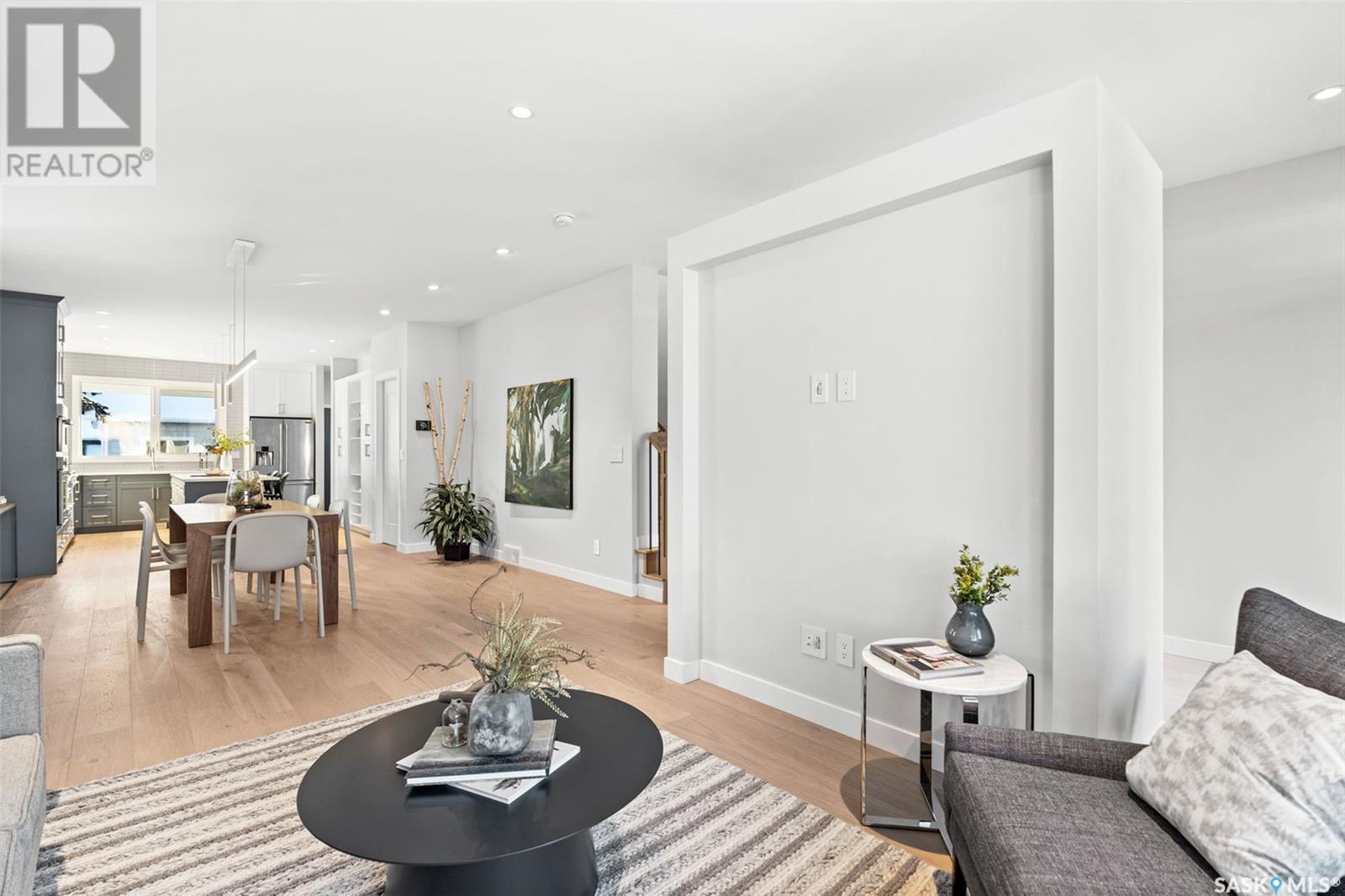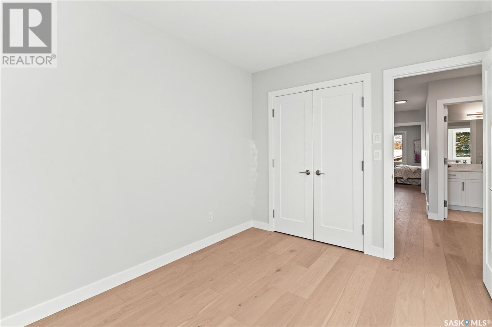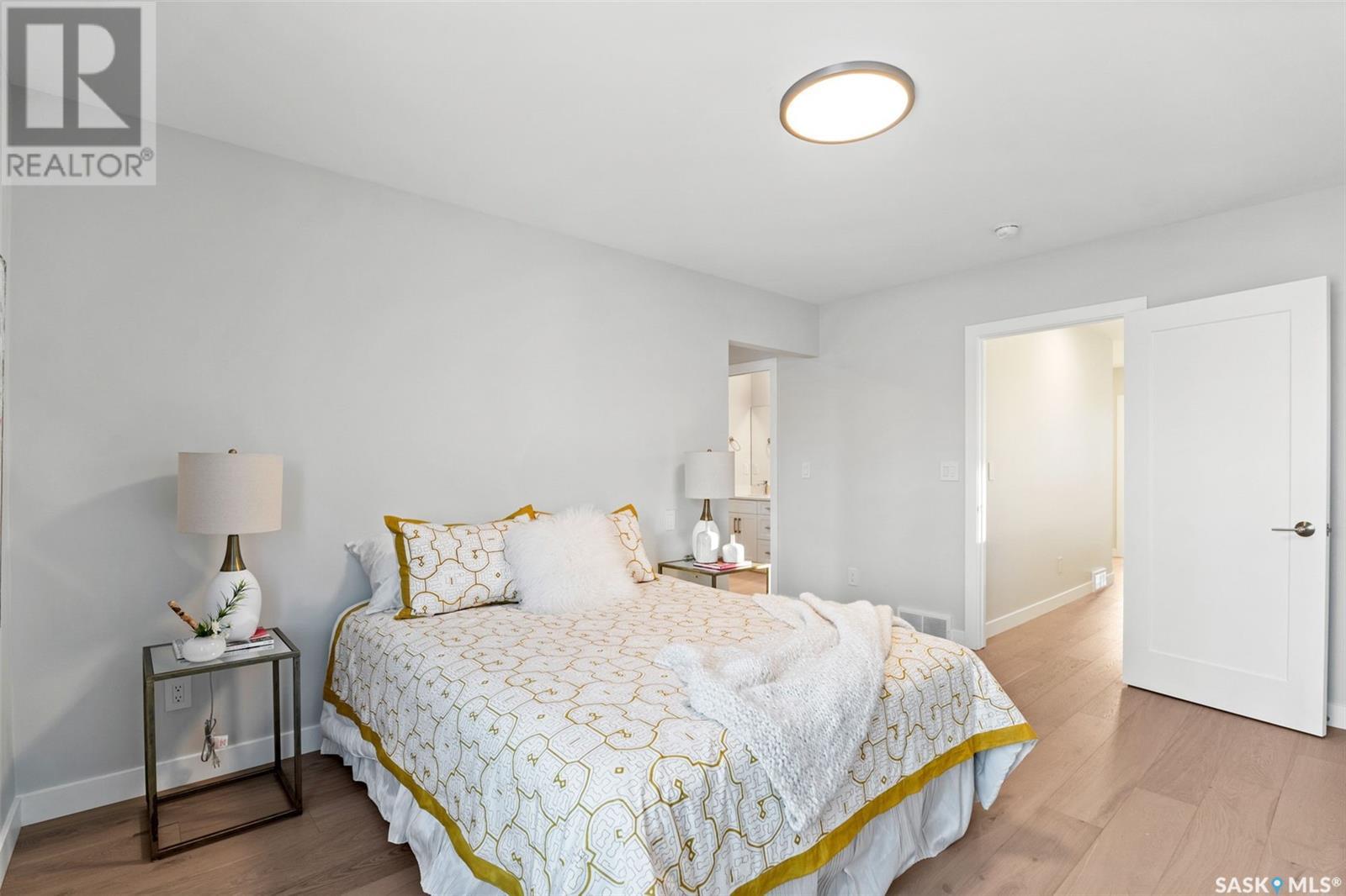 Welcome to 1418 10th St E! A stunning new custom build loaded with energy efficient upgrades in the highly desirable neighbourhood of Varsity View with grocery stores & amenities close by, this location would make the perfect place to call home. Featuring 1800 sqft of beautifully finished space with a basement suite. Inside you will find a spacious & bright open concept floor plan with gorgeous white oak engineered hardwoods throughout. The kitchen is the showpiece of the home featuring a gas range, wall oven & microwave, floor to ceiling custom Superior cabinetry, large pantry, quartz counters, and island with bar seating. Dining room is spacious with room for a large table great for hosting guests. Custom millwork mudroom & a stylish 2-piece bath can also be found on this level. The primary suite features a large walk-in closet with custom built-ins. Ensuite features double sinks, glass shower enclosure with rain shower head & & hand wand for convenience. Two large secondary bedrooms, a second bathroom and laundry room can also be found on this level. Basement has a legal 1-bedroom suite which comes with all appliances & separate heat for comfort. Notable upgrades; solar ready roof, integrated pro series mechanical system with modulating natural gas furnace, heat pump, comfort sync controls plus and energy recovery ventilator, on demand hot water tank, Smart Home lighting. Natural gas barbecue hookup. Maintenance free composite exterior. Fiberglass impact resistant shingles. Central air. Decorative paving slab patio and walkways. Large covered deck overlooking back yard, smaller covered shade deck facing street. Double detached garage with 220-volt outlet so it’s electric vehicle charger ready. Too many upgrades to list. Contact your agent today to book your viewing! (id:22211)