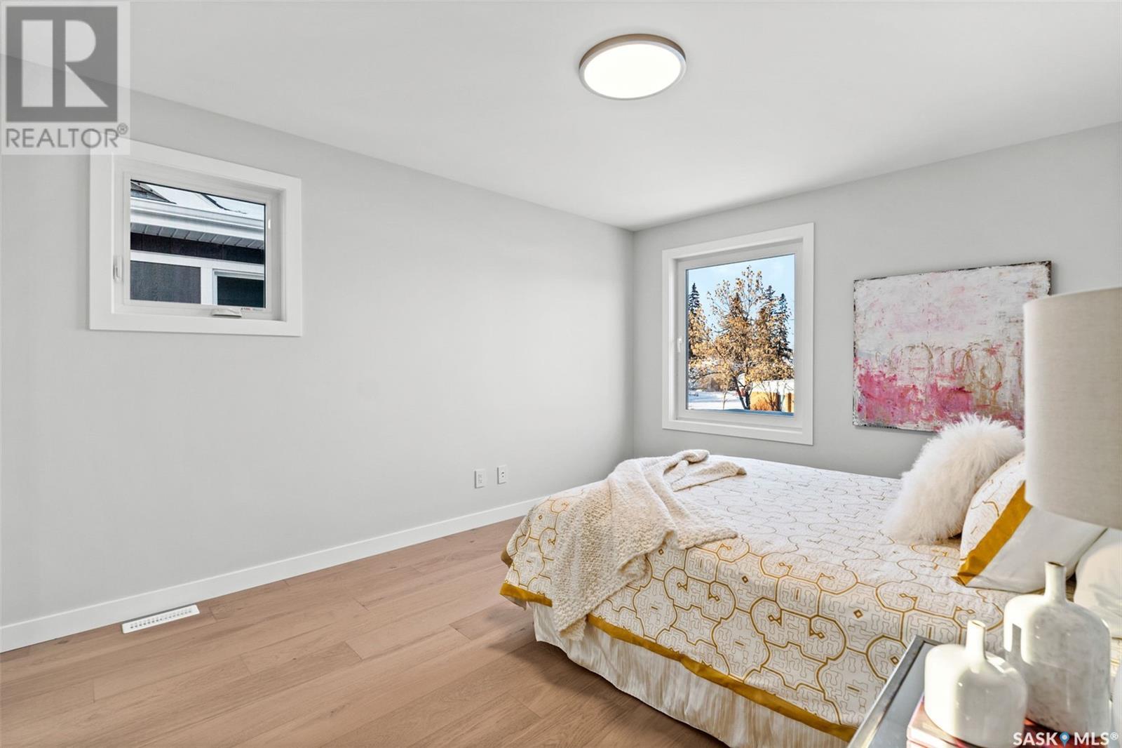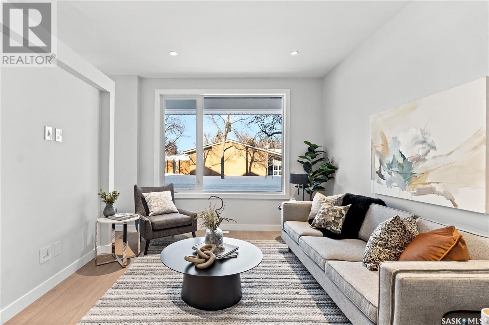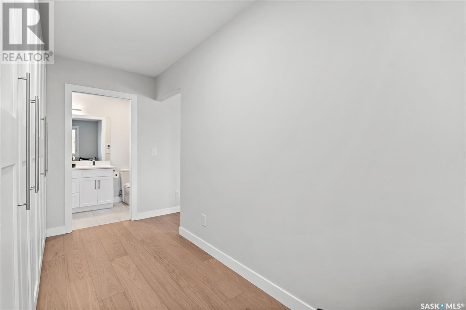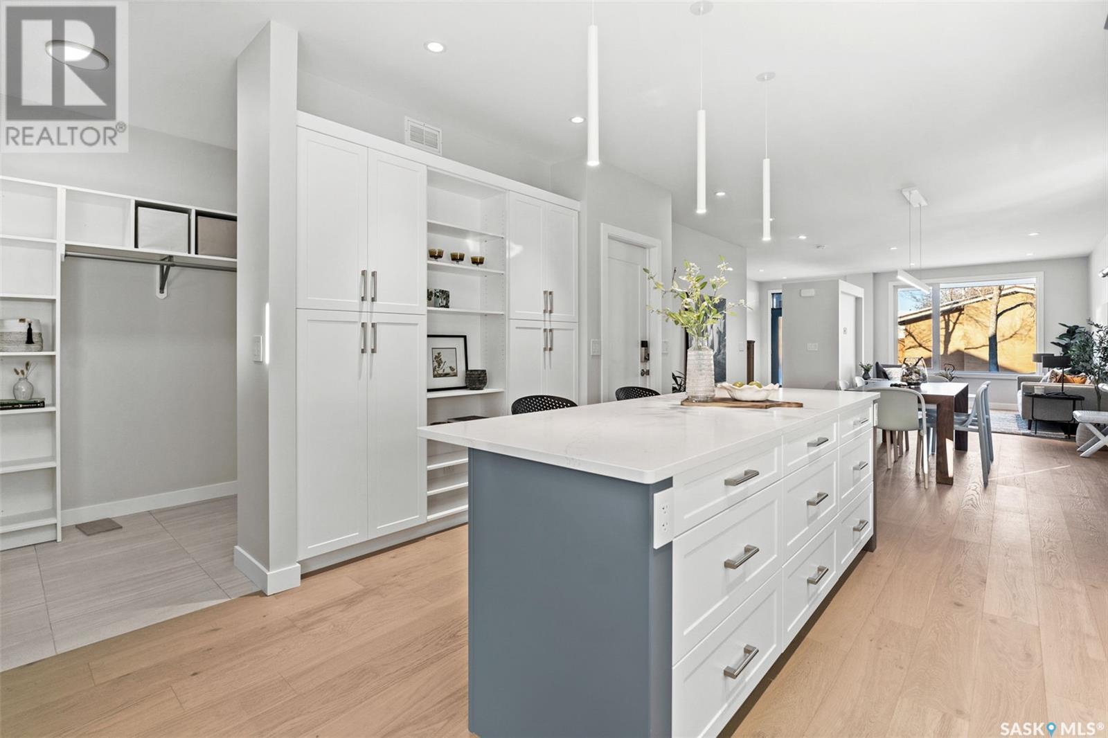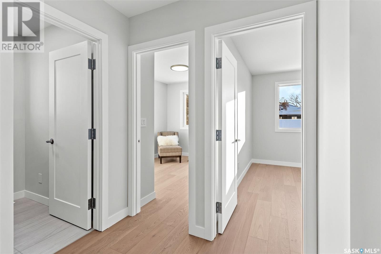 Welcome to 1418 10th St E! A stunning new custom build loaded with energy efficient upgrades in the highly desirable neighbourhood of Varsity View with grocery stores & amenities close by, this location would make the perfect place to call home. Featuring 1800 sqft of beautifully finished space with a basement suite. Inside you will find a spacious & bright open concept floor plan with gorgeous white oak engineered hardwoods throughout. The kitchen is the showpiece of the home featuring a gas range, wall oven & microwave, floor to ceiling custom Superior cabinetry, large pantry, quartz counters, and island with bar seating. Dining room is spacious with room for a large table great for hosting guests. Custom millwork mudroom & a stylish 2-piece bath can also be found on this level. The primary suite features a large walk-in closet with custom built-ins. Ensuite features double sinks, glass shower enclosure with rain shower head & & hand wand for convenience. Two large secondary bedrooms, a second bathroom and laundry room can also be found on this level. Basement has a legal 1-bedroom suite which comes with all appliances & separate heat for comfort. Notable upgrades; solar ready roof, integrated pro series mechanical system with modulating natural gas furnace, heat pump, comfort sync controls plus and energy recovery ventilator, on demand hot water tank, Smart Home lighting. Natural gas barbecue hookup. Maintenance free composite exterior. Fiberglass impact resistant shingles. Central air. Decorative paving slab patio and walkways. Large covered deck overlooking back yard, smaller covered shade deck facing street. Double detached garage with 220-volt outlet so it’s electric vehicle charger ready. Too many upgrades to list. Contact your agent today to book your viewing! (id:22211)