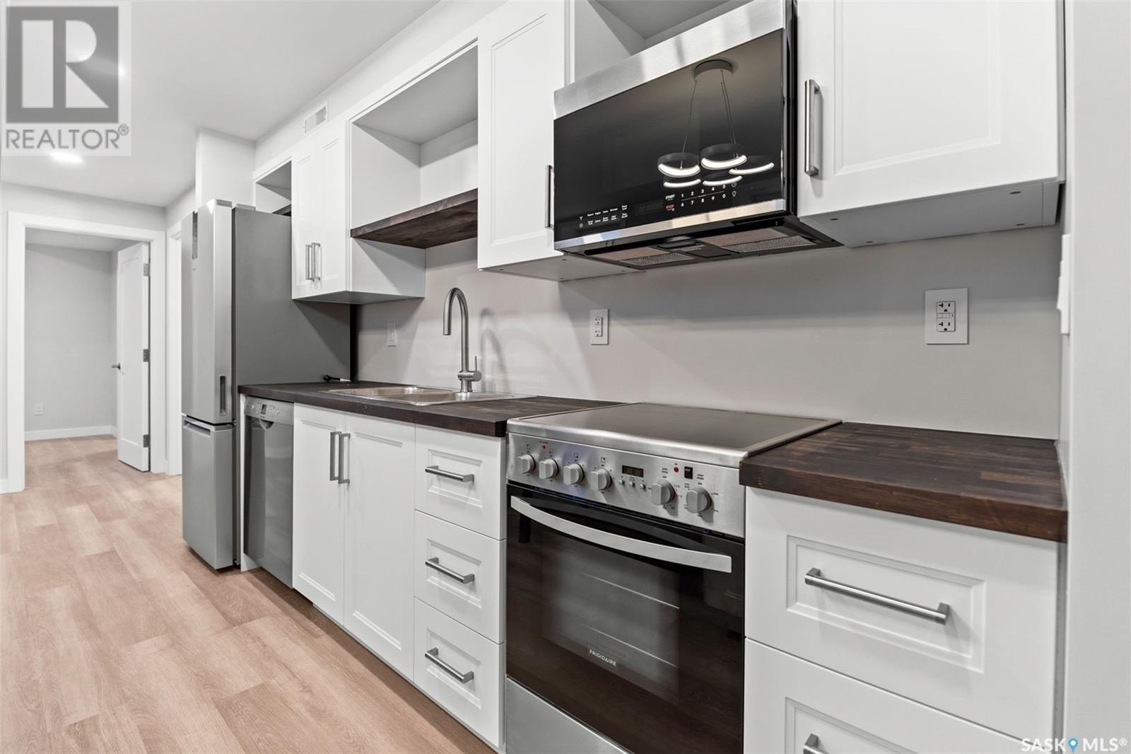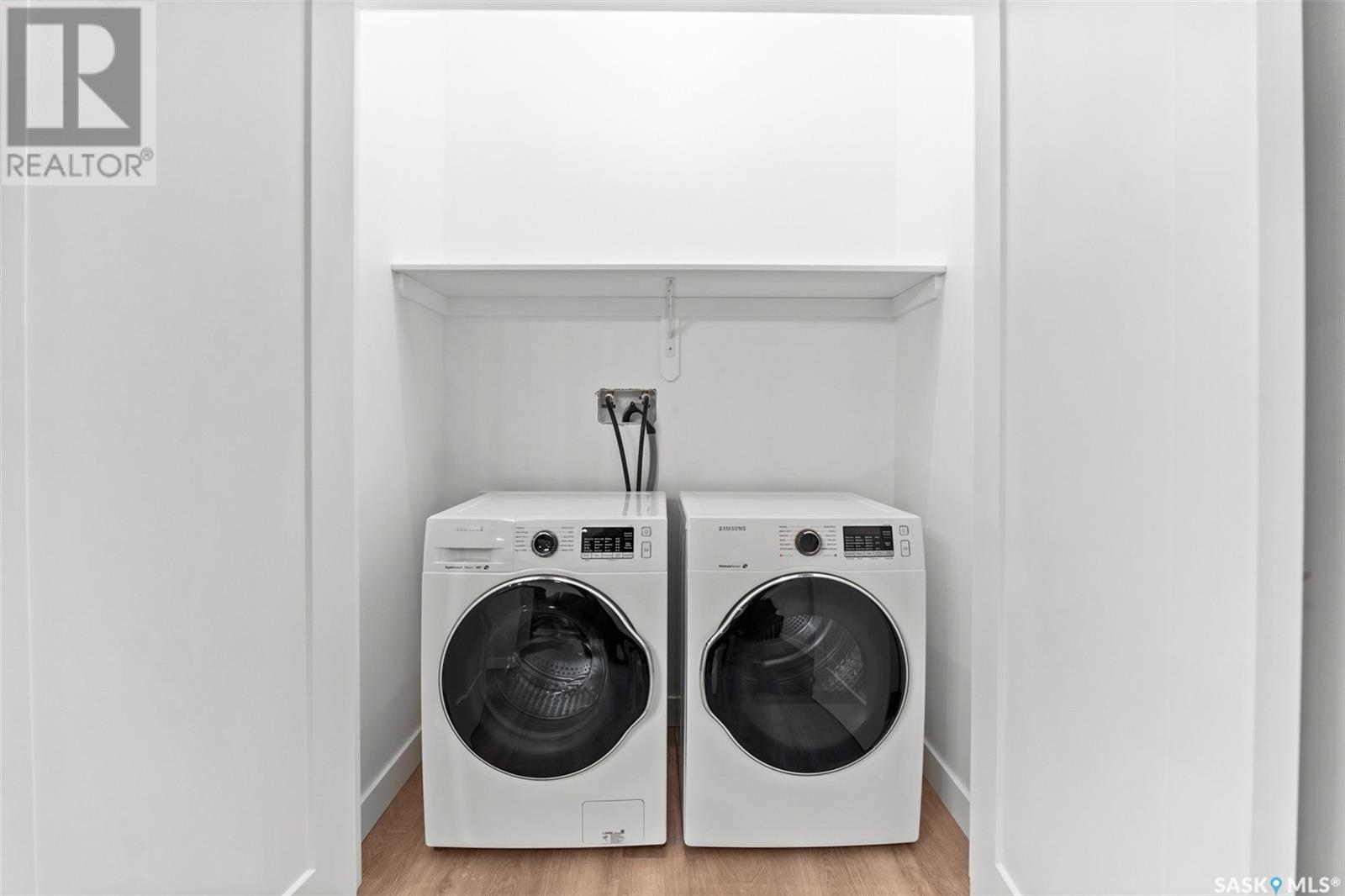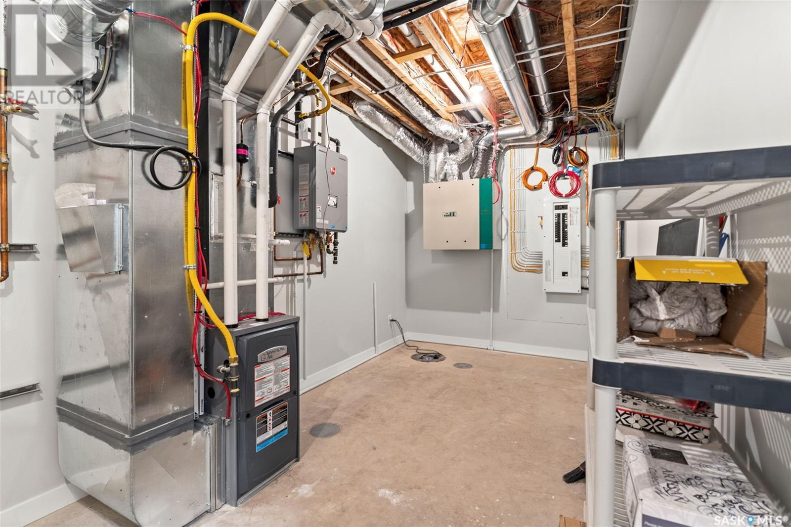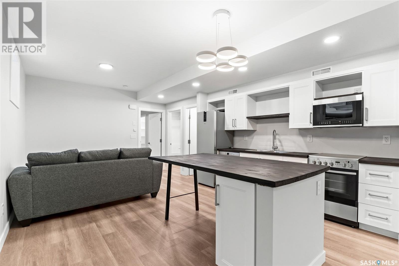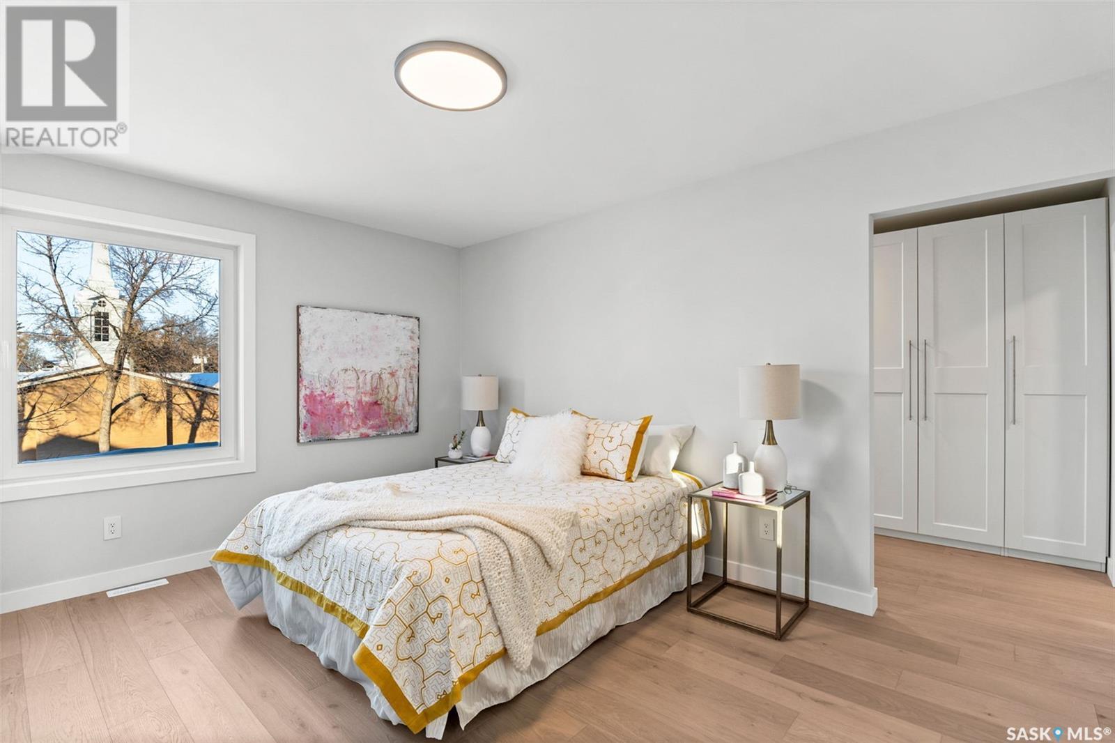 Welcome to 1418 10th St E! A stunning new custom build loaded with energy efficient upgrades in the highly desirable neighbourhood of Varsity View with grocery stores & amenities close by, this location would make the perfect place to call home. Featuring 1800 sqft of beautifully finished space with a basement suite. Inside you will find a spacious & bright open concept floor plan with gorgeous white oak engineered hardwoods throughout. The kitchen is the showpiece of the home featuring a gas range, wall oven & microwave, floor to ceiling custom Superior cabinetry, large pantry, quartz counters, and island with bar seating. Dining room is spacious with room for a large table great for hosting guests. Custom millwork mudroom & a stylish 2-piece bath can also be found on this level. The primary suite features a large walk-in closet with custom built-ins. Ensuite features double sinks, glass shower enclosure with rain shower head & & hand wand for convenience. Two large secondary bedrooms, a second bathroom and laundry room can also be found on this level. Basement has a legal 1-bedroom suite which comes with all appliances & separate heat for comfort. Notable upgrades; solar ready roof, integrated pro series mechanical system with modulating natural gas furnace, heat pump, comfort sync controls plus and energy recovery ventilator, on demand hot water tank, Smart Home lighting. Natural gas barbecue hookup. Maintenance free composite exterior. Fiberglass impact resistant shingles. Central air. Decorative paving slab patio and walkways. Large covered deck overlooking back yard, smaller covered shade deck facing street. Double detached garage with 220-volt outlet so it’s electric vehicle charger ready. Too many upgrades to list. Contact your agent today to book your viewing! (id:22211)