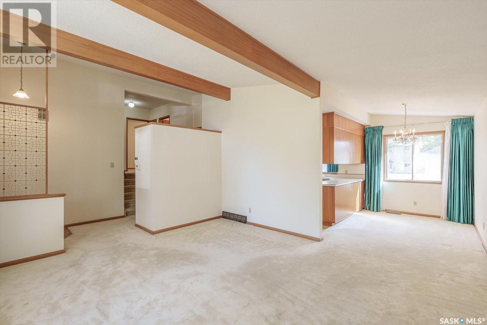 Welcome to this charming 4-level split home nestled in the mature & coveted neighborhood of Breevort Park. Boasting a prime location on Tucker Crescent, this residence offers easy access to local schools, nearby park, & the convenience of 8th Street. Upon entering, you'll be immersed by the architectural style of the vaulted ceilings in the living room, mid-modern wood beams spanning the roof line, along with retro room divider, all complimenting one another to create a warm & inviting atmosphere. The kitchen, complete with wood grain cabinetry in meticulous condition & tons of countertop space. The adjacent dining area ensures seamless entertaining & family gatherings. The second level offers three generously sized bedrooms, each promising a peaceful retreat, & spacious 4-piece bathroom. The third level offers a family room and a versatile recreation room that could potentially be opened up to the 4th level by potentially removing the wall, which would create a very unique entertaining space in the future. There is an additional 4th bedroom that offers a study area that could be converted into a 2nd bathroom if renovations are in your plans. The fourth level is currently undeveloped and includes the mechanical / laundry area, but could accommodate a future bedroom, bathroom and family room. Outside, the property is a nature lover's paradise, featuring a garden area, front/back lawn, two oak trees, perennials, and a partially fenced yard that provides privacy and safety. Additional features inc: single detached garage (12’ x 24’) with single driveway that can accommodate additional off street parking, high-efficiency furnace, air conditioning, updated shingles, fridge, stove, washer, dryer and deep freezers. Take a stroll down Tucker Crescent and you will notice that all the neighbors have taken a lot of pride in maintaining their homes which will offer you piece of mind that this property will be a great place to invest in and has a lot of room to add value. (id:22211)