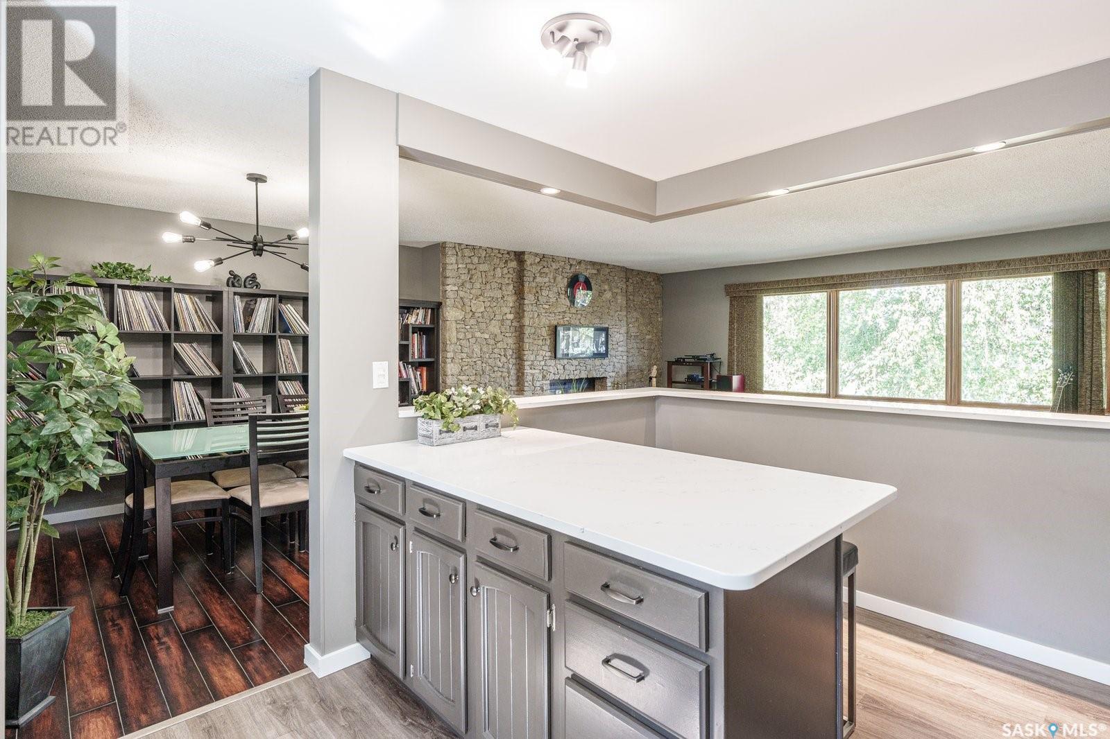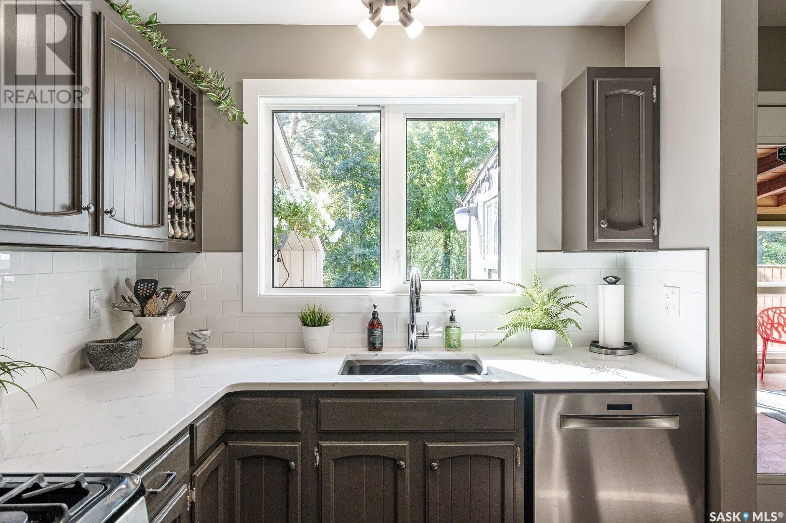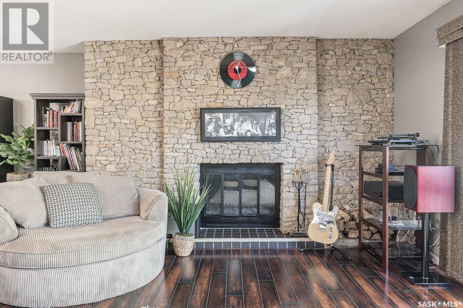 Live among the professionals in the highly sought, mature and safe neighborhood of Lakeview. This gorgeous property comes with modern touches, tons of updates and a warm inviting setting you’ll be happy to call home. The fully landscaped and low maintenance front yard leads you to a gorgeous treed patio sitting area in front. Step inside and you’ll appreciate the open concept layout with a beautiful stonewall wood burning fireplace greeting your eyes in the living room. There is a formal dining room for large family gatherings and a huge eating bar island in the kitchen for those who prefer to sit close to the culinary magic! This kitchen gives everything for the chef in your family with beautiful quartz countertops, tons of cupboards space, stainless steel appliances, gas range, undermount sink and new vinyl plank flooring. The main floor has 3 bedrooms which includes a huge master with a 3 PC ensuite bath and there is a new 4 PC bath on the main floor too. Downstairs has another beautiful stonewall wood burning fireplace in the recreation room, large windows throughout, 2 more bedrooms and another 3 PC bath. Just when you didn’t think you could need more there is a 3 season sunroom off the kitchen to extend your outdoor time and appreciate the view of the picturesque back yard. Enjoy your private oasis of mature trees, fenced yard, patio area, deck with cozy dining nook and natural gas BBQ hook up! Recent updates include: Shingles 2019, main bath 2019, kitchen updates 2021, basement carpets 2017, deck 2015, sunroom 2015, most fence 2019, living/dining paint 2021 and more! A fantastic and convenient location with the one of kind Lakeview steps away, walking trails, nearby schools and down the street from the infamous Chardon Ice Cream for the kids (and the kids at heart)! Don't miss out on this stunning home in one of Saskatoon’s most desired areas! Call your favorite realtor and book your private viewing! (id:22211)