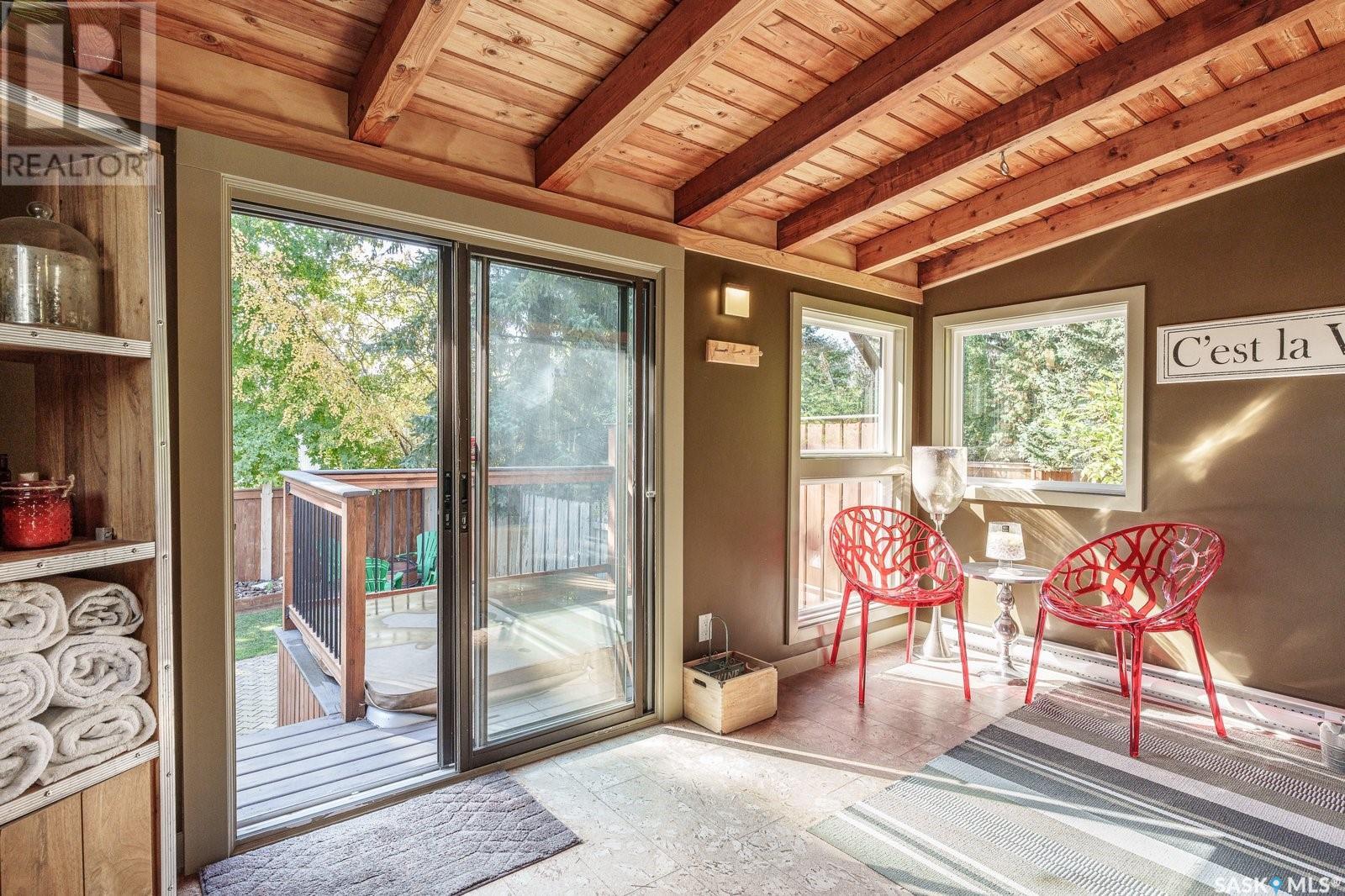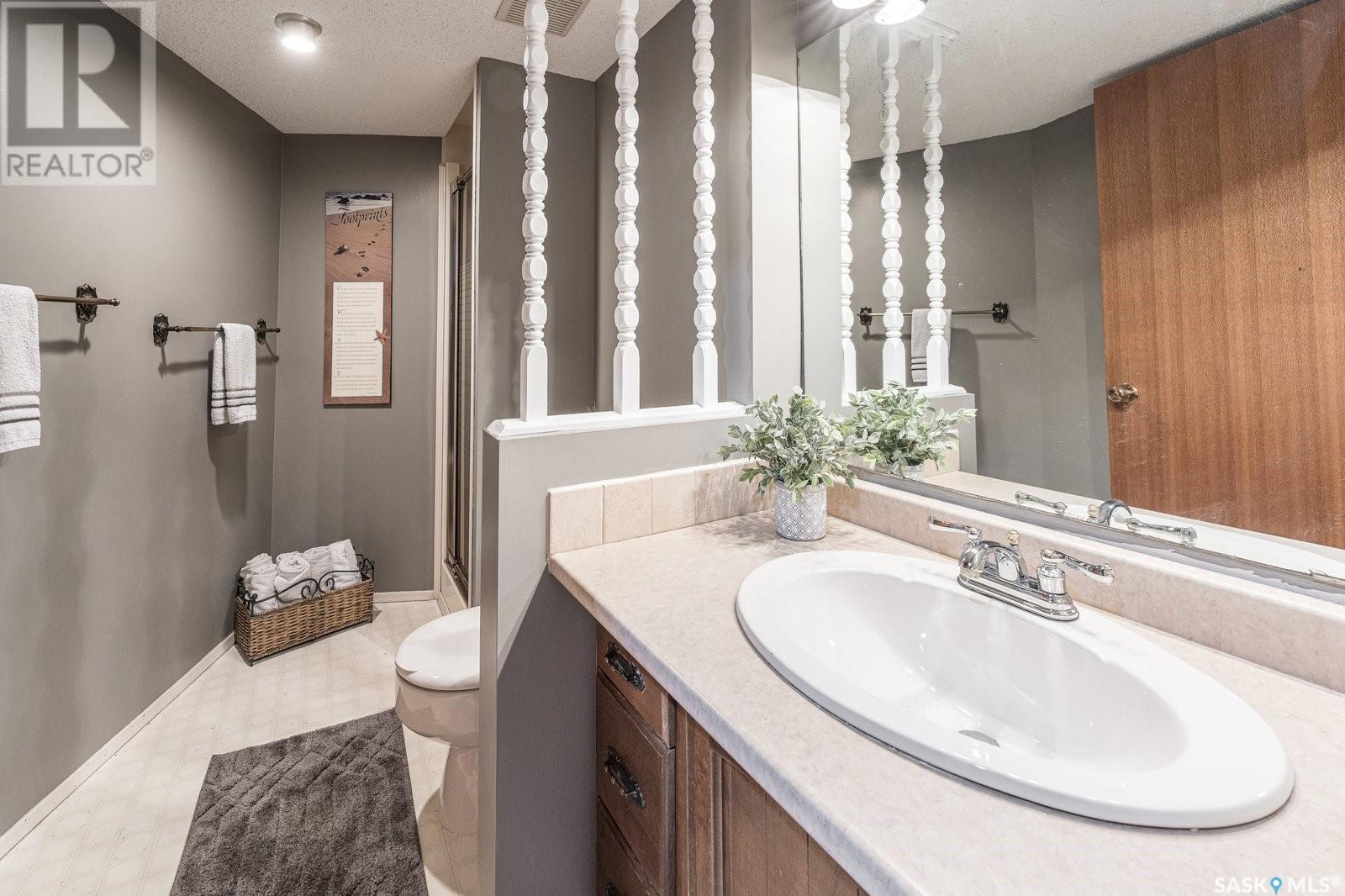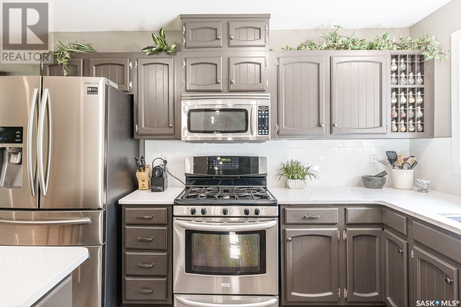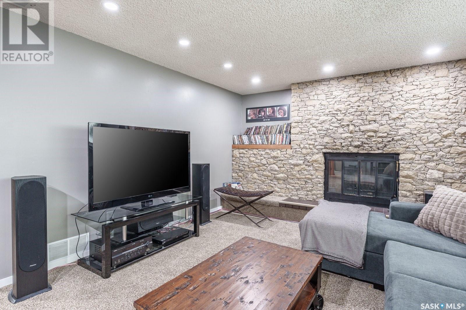 Live among the professionals in the highly sought, mature and safe neighborhood of Lakeview. This gorgeous property comes with modern touches, tons of updates and a warm inviting setting you’ll be happy to call home. The fully landscaped and low maintenance front yard leads you to a gorgeous treed patio sitting area in front. Step inside and you’ll appreciate the open concept layout with a beautiful stonewall wood burning fireplace greeting your eyes in the living room. There is a formal dining room for large family gatherings and a huge eating bar island in the kitchen for those who prefer to sit close to the culinary magic! This kitchen gives everything for the chef in your family with beautiful quartz countertops, tons of cupboards space, stainless steel appliances, gas range, undermount sink and new vinyl plank flooring. The main floor has 3 bedrooms which includes a huge master with a 3 PC ensuite bath and there is a new 4 PC bath on the main floor too. Downstairs has another beautiful stonewall wood burning fireplace in the recreation room, large windows throughout, 2 more bedrooms and another 3 PC bath. Just when you didn’t think you could need more there is a 3 season sunroom off the kitchen to extend your outdoor time and appreciate the view of the picturesque back yard. Enjoy your private oasis of mature trees, fenced yard, patio area, deck with cozy dining nook and natural gas BBQ hook up! Recent updates include: Shingles 2019, main bath 2019, kitchen updates 2021, basement carpets 2017, deck 2015, sunroom 2015, most fence 2019, living/dining paint 2021 and more! A fantastic and convenient location with the one of kind Lakeview steps away, walking trails, nearby schools and down the street from the infamous Chardon Ice Cream for the kids (and the kids at heart)! Don't miss out on this stunning home in one of Saskatoon’s most desired areas! Call your favorite realtor and book your private viewing! (id:22211)