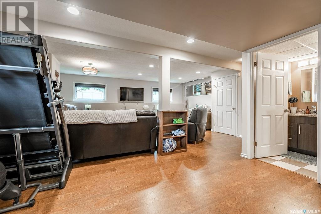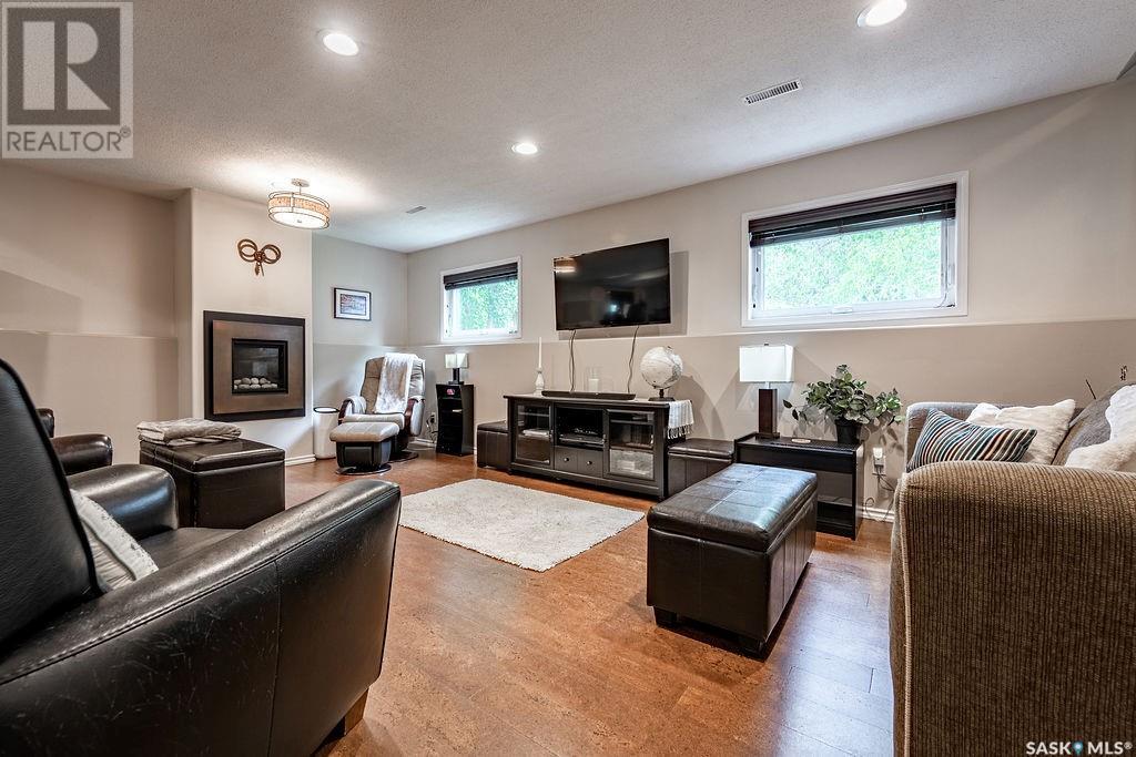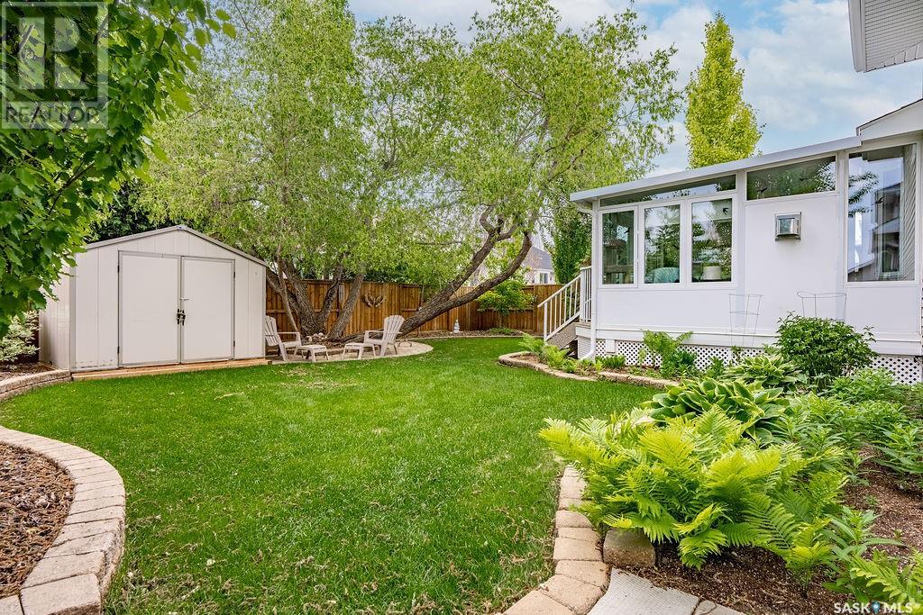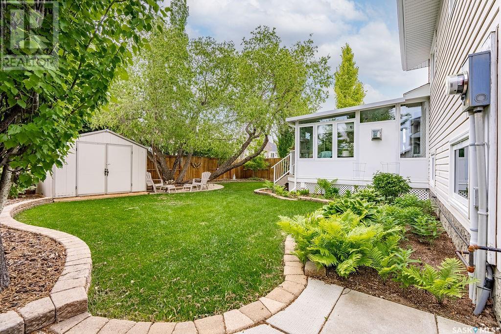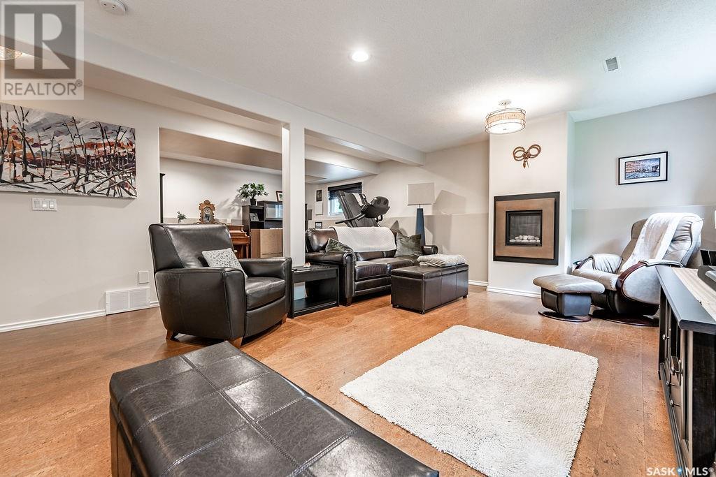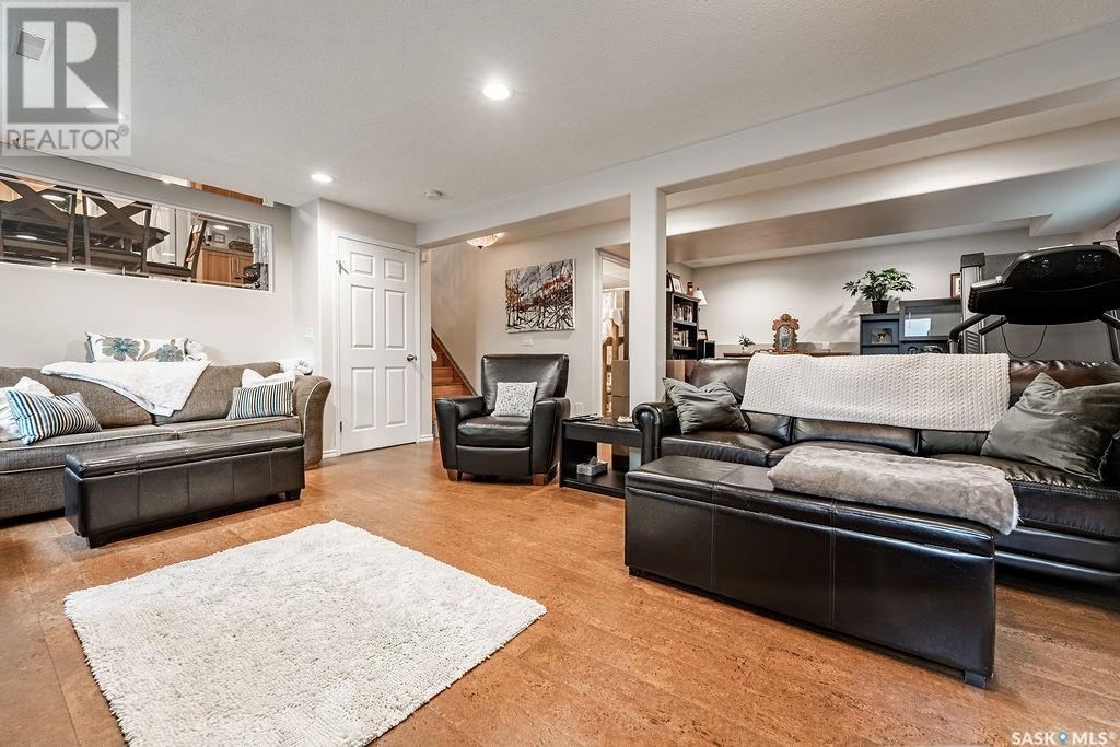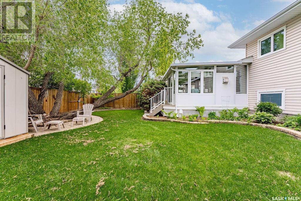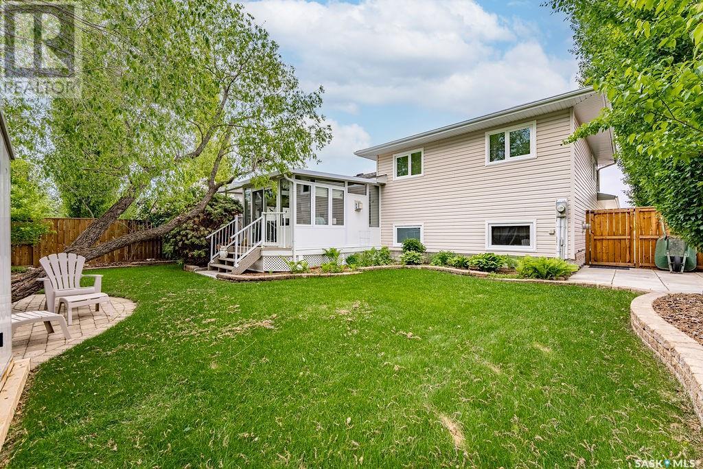 Welcome to 218 Rever Road in the desirable Silverspring community! This immaculate, updated fully-developed 4-level split is move in ready. Enter in through the tiled front foyer, into the open concept, airy living room with vaulted ceilings and enjoy the views of the garden through the large picture window. The kitchen features granite countertops, a charming coffee bar, and open dining area with views down to the third level. Off the kitchen,through the patio doors, you can relax in the serene all-season sunroom. Enjoy views of the custom landscaped backyard in the summer or cozy up to the gas fireplace in the colder months. Upstairs you will find the primary bedroom, 3pc ensuite, and 2 additional large bedrooms with upgraded cork flooring and a 4 piece bathroom. The open concept third level has a large family room, gas fireplace, nook for potential office, gym or playroom use and a 3 pcs bath. The living space continues to the fully finished basement with a fourth bedroom, den, laundry, and large storage room with shelving. Both front and back yards have been beautifully maintained and intentionally designed complete with front porch, underground sprinklers, back deck, patio, and storage shed. This home has plenty of parking with a double attached garage, and concrete driveway with RV parking. Close to public and separate schools, parks, walking trails, the Saskatoon Zoo, University of Saskatchewan, and all amenities. Take a look at the 3D tour. Call for your showing today! (id:22211)