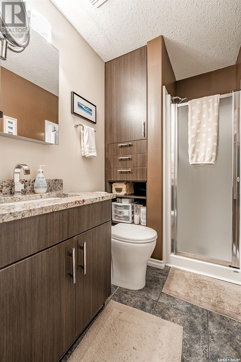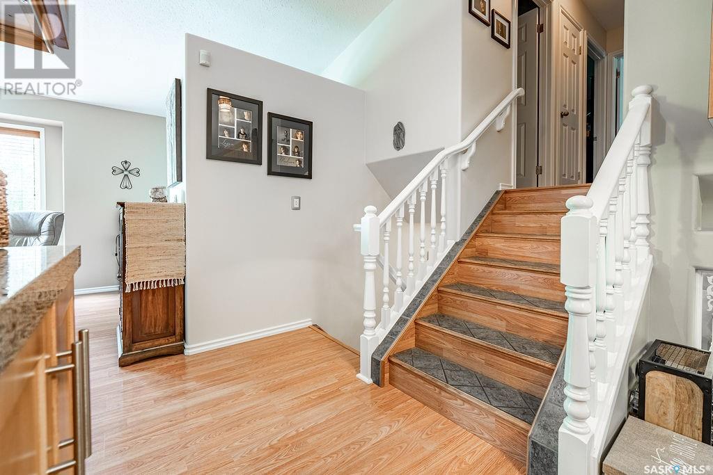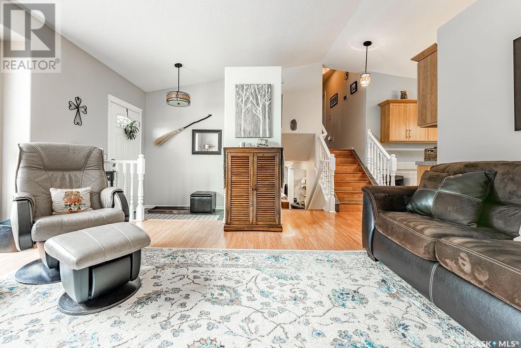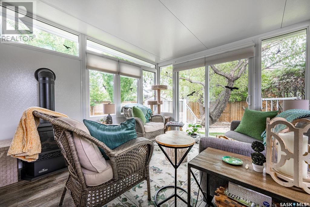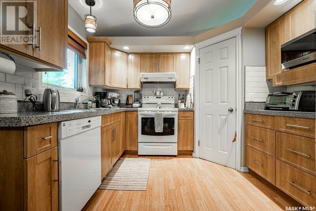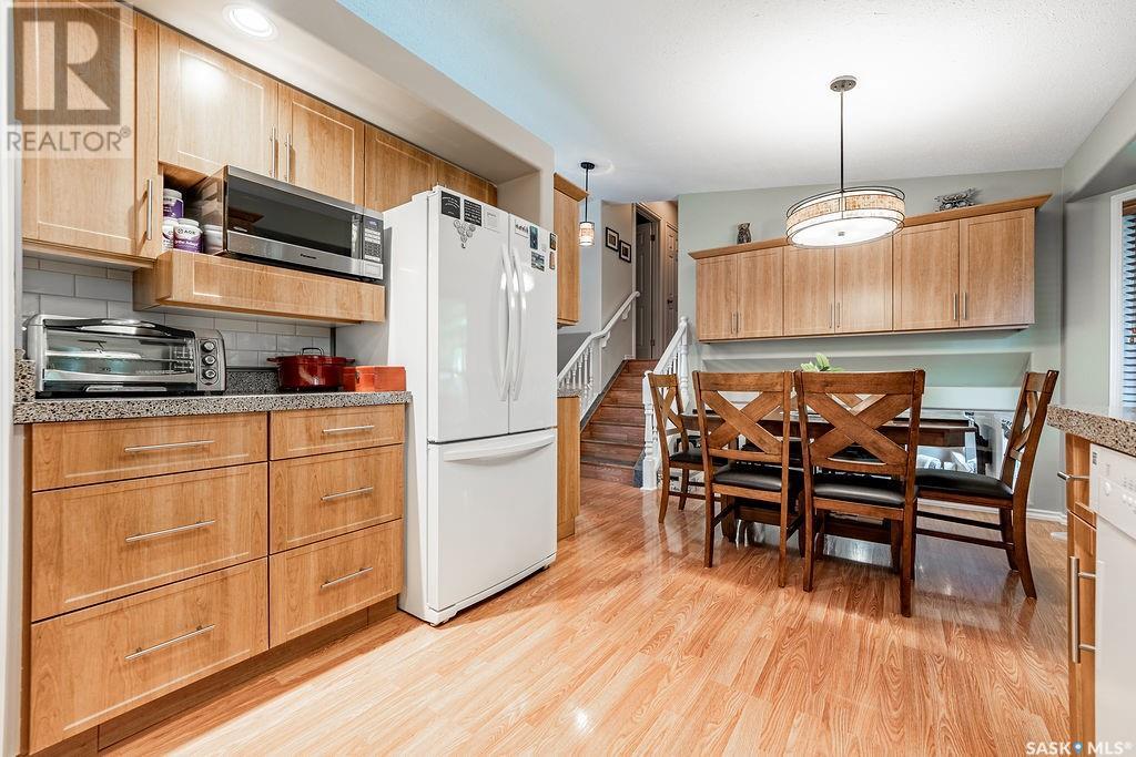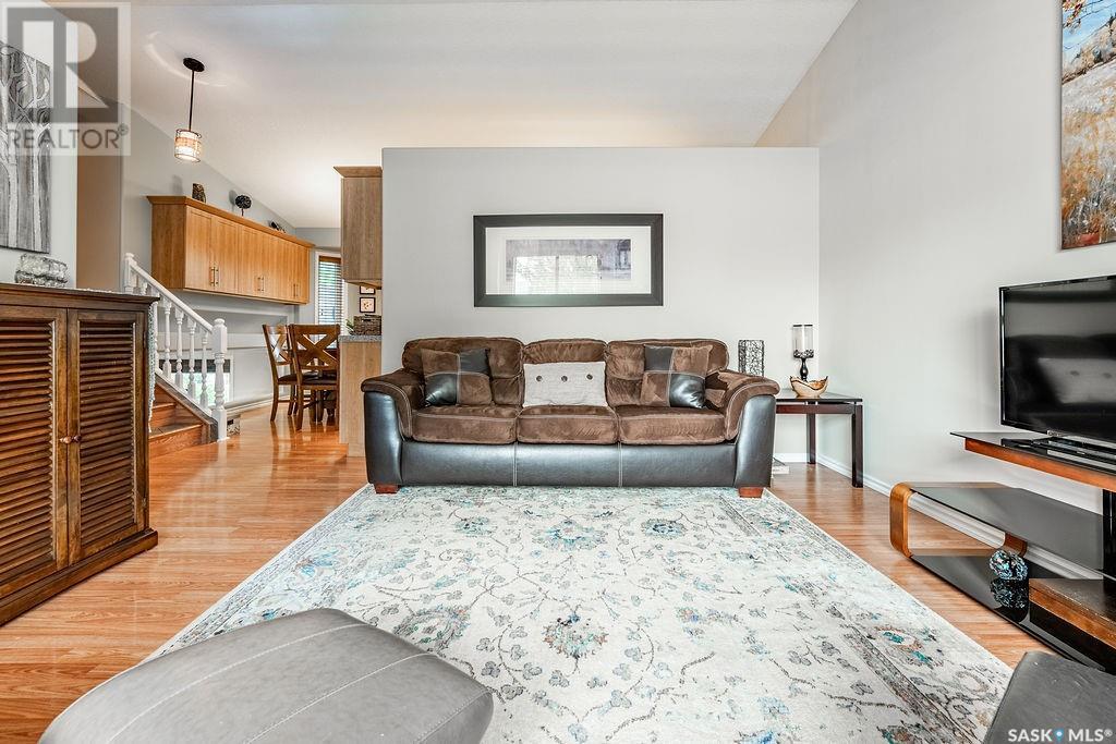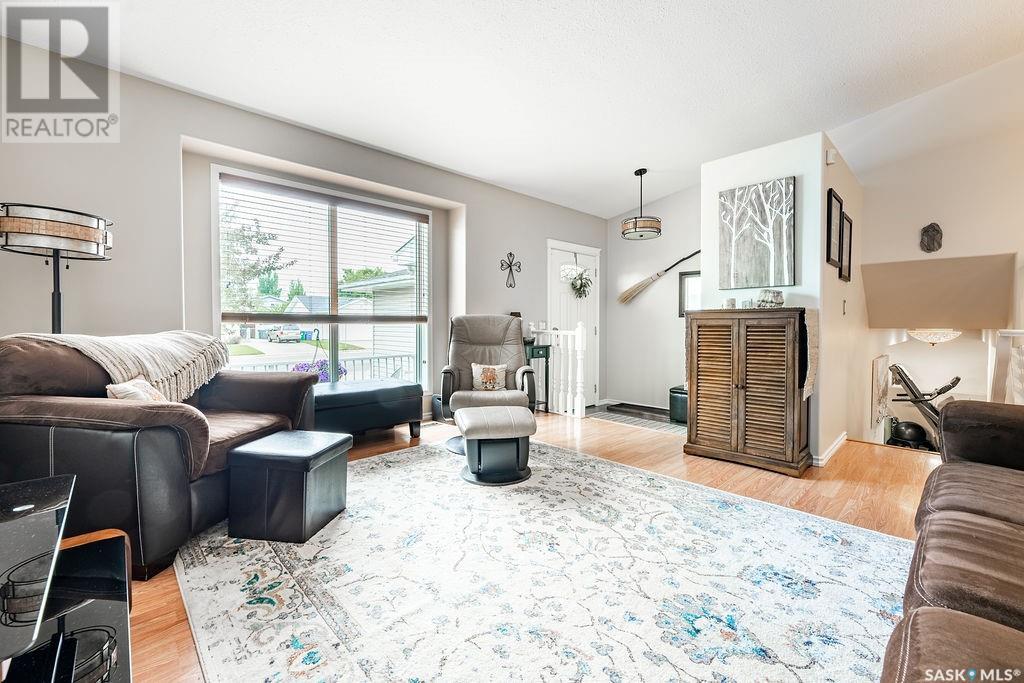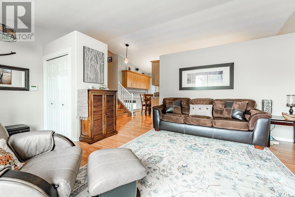 Welcome to 218 Rever Road in the desirable Silverspring community! This immaculate, updated fully-developed 4-level split is move in ready. Enter in through the tiled front foyer, into the open concept, airy living room with vaulted ceilings and enjoy the views of the garden through the large picture window. The kitchen features granite countertops, a charming coffee bar, and open dining area with views down to the third level. Off the kitchen,through the patio doors, you can relax in the serene all-season sunroom. Enjoy views of the custom landscaped backyard in the summer or cozy up to the gas fireplace in the colder months. Upstairs you will find the primary bedroom, 3pc ensuite, and 2 additional large bedrooms with upgraded cork flooring and a 4 piece bathroom. The open concept third level has a large family room, gas fireplace, nook for potential office, gym or playroom use and a 3 pcs bath. The living space continues to the fully finished basement with a fourth bedroom, den, laundry, and large storage room with shelving. Both front and back yards have been beautifully maintained and intentionally designed complete with front porch, underground sprinklers, back deck, patio, and storage shed. This home has plenty of parking with a double attached garage, and concrete driveway with RV parking. Close to public and separate schools, parks, walking trails, the Saskatoon Zoo, University of Saskatchewan, and all amenities. Take a look at the 3D tour. Call for your showing today! (id:22211)