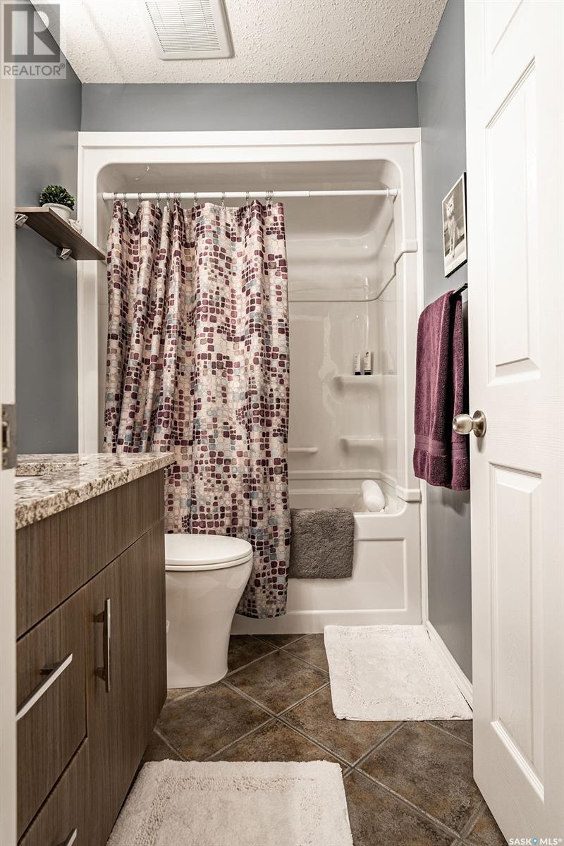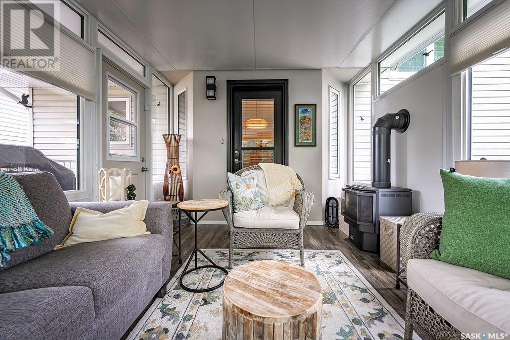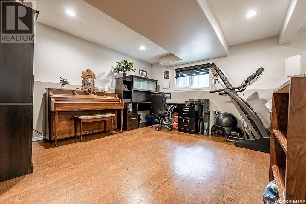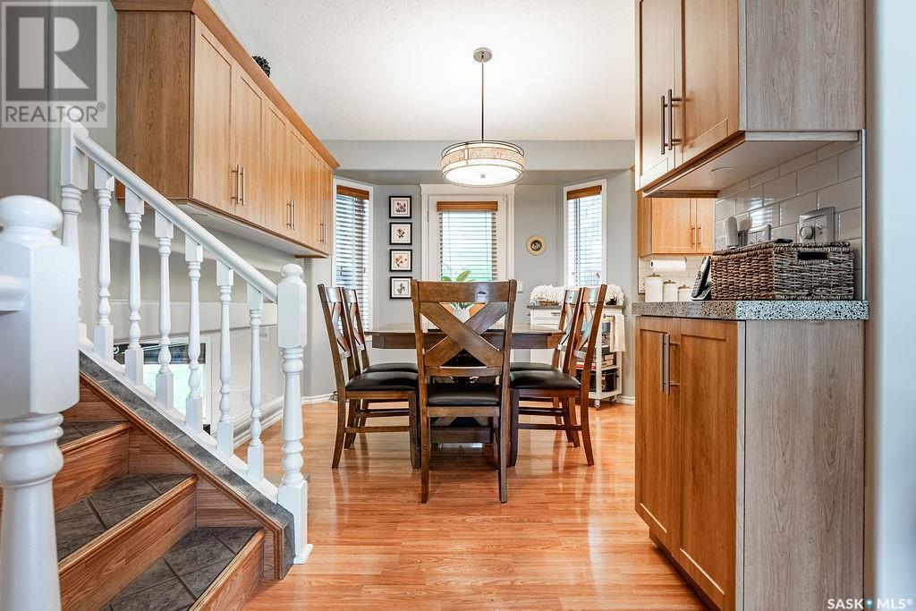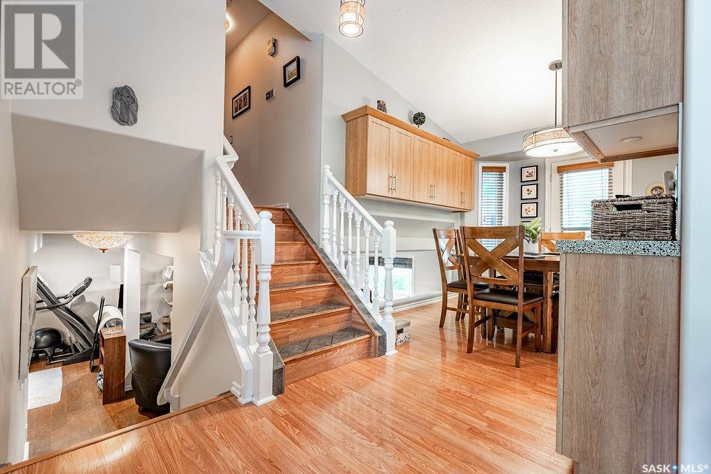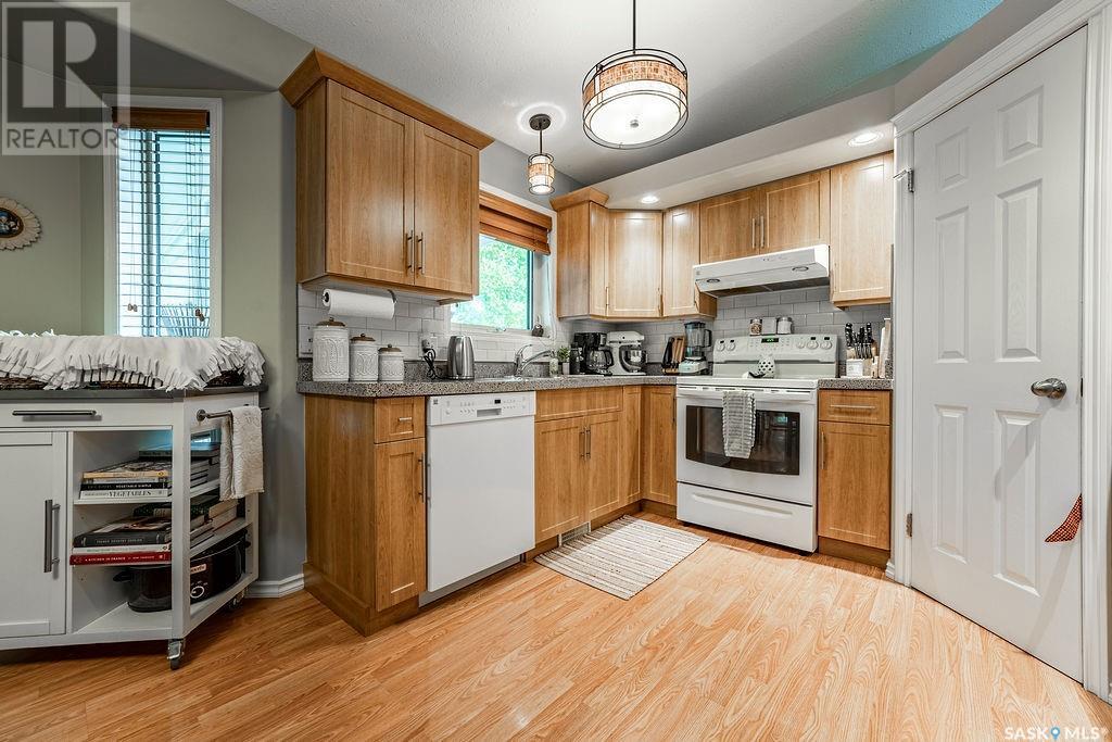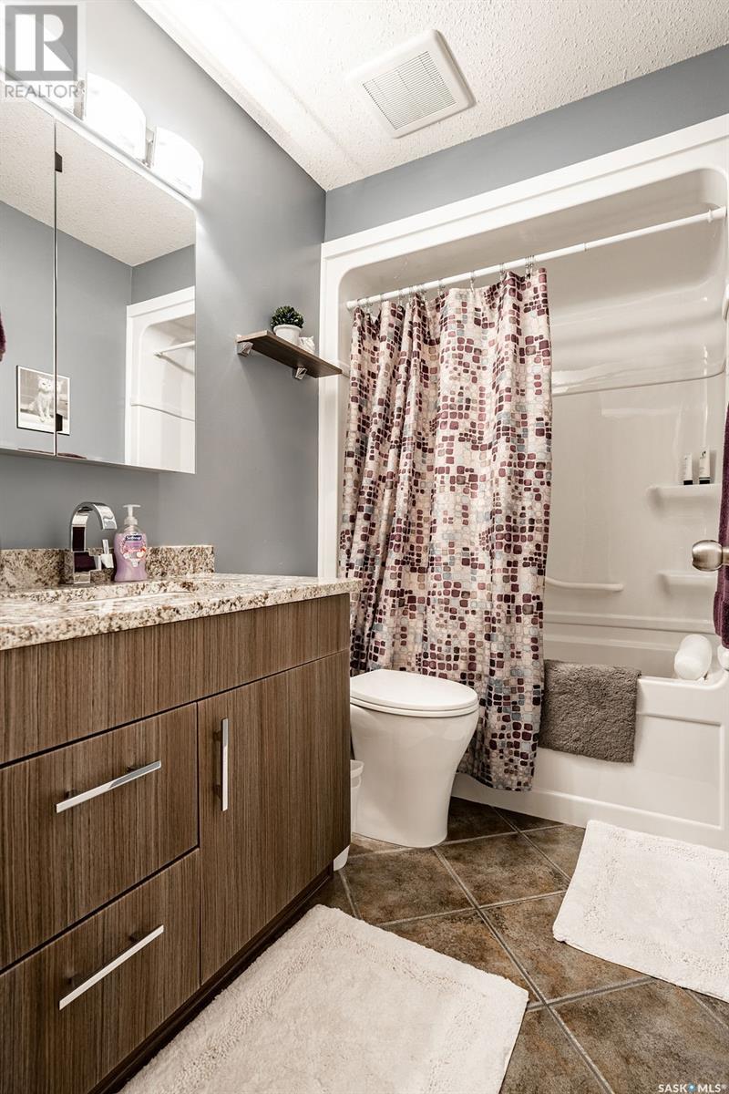 Welcome to 218 Rever Road in the desirable Silverspring community! This immaculate, updated fully-developed 4-level split is move in ready. Enter in through the tiled front foyer, into the open concept, airy living room with vaulted ceilings and enjoy the views of the garden through the large picture window. The kitchen features granite countertops, a charming coffee bar, and open dining area with views down to the third level. Off the kitchen,through the patio doors, you can relax in the serene all-season sunroom. Enjoy views of the custom landscaped backyard in the summer or cozy up to the gas fireplace in the colder months. Upstairs you will find the primary bedroom, 3pc ensuite, and 2 additional large bedrooms with upgraded cork flooring and a 4 piece bathroom. The open concept third level has a large family room, gas fireplace, nook for potential office, gym or playroom use and a 3 pcs bath. The living space continues to the fully finished basement with a fourth bedroom, den, laundry, and large storage room with shelving. Both front and back yards have been beautifully maintained and intentionally designed complete with front porch, underground sprinklers, back deck, patio, and storage shed. This home has plenty of parking with a double attached garage, and concrete driveway with RV parking. Close to public and separate schools, parks, walking trails, the Saskatoon Zoo, University of Saskatchewan, and all amenities. Take a look at the 3D tour. Call for your showing today! (id:22211)