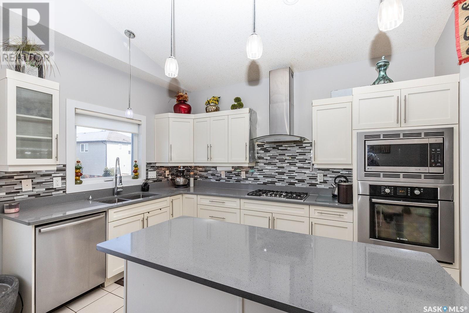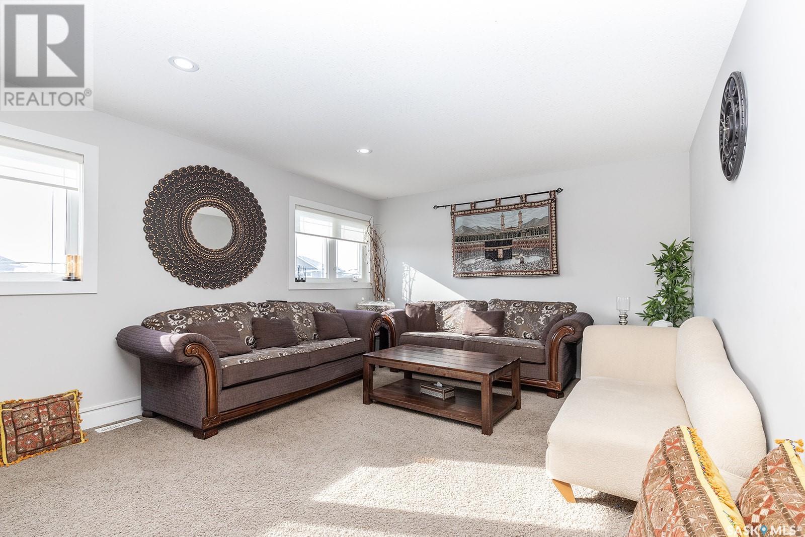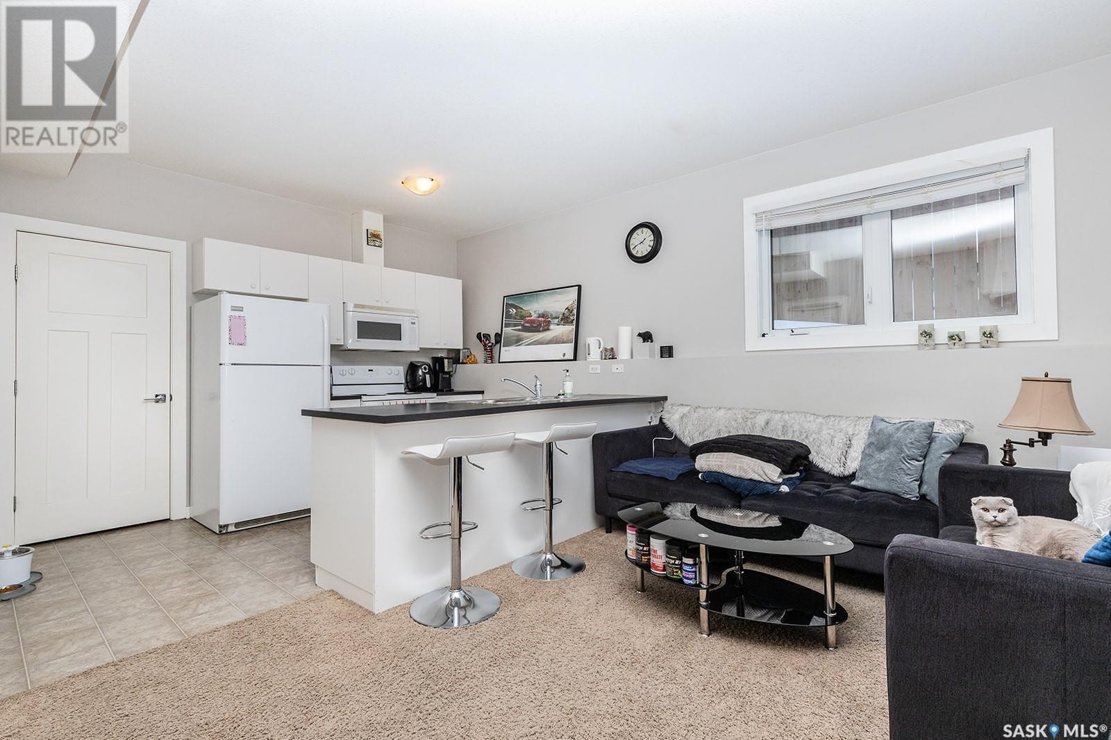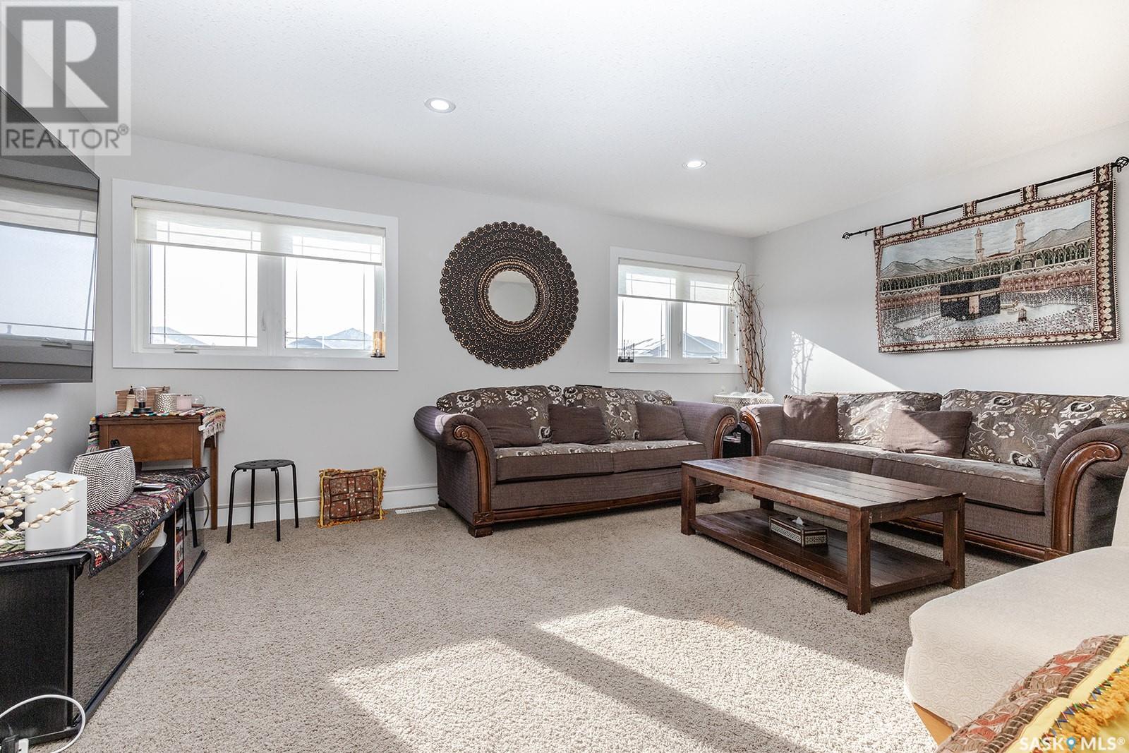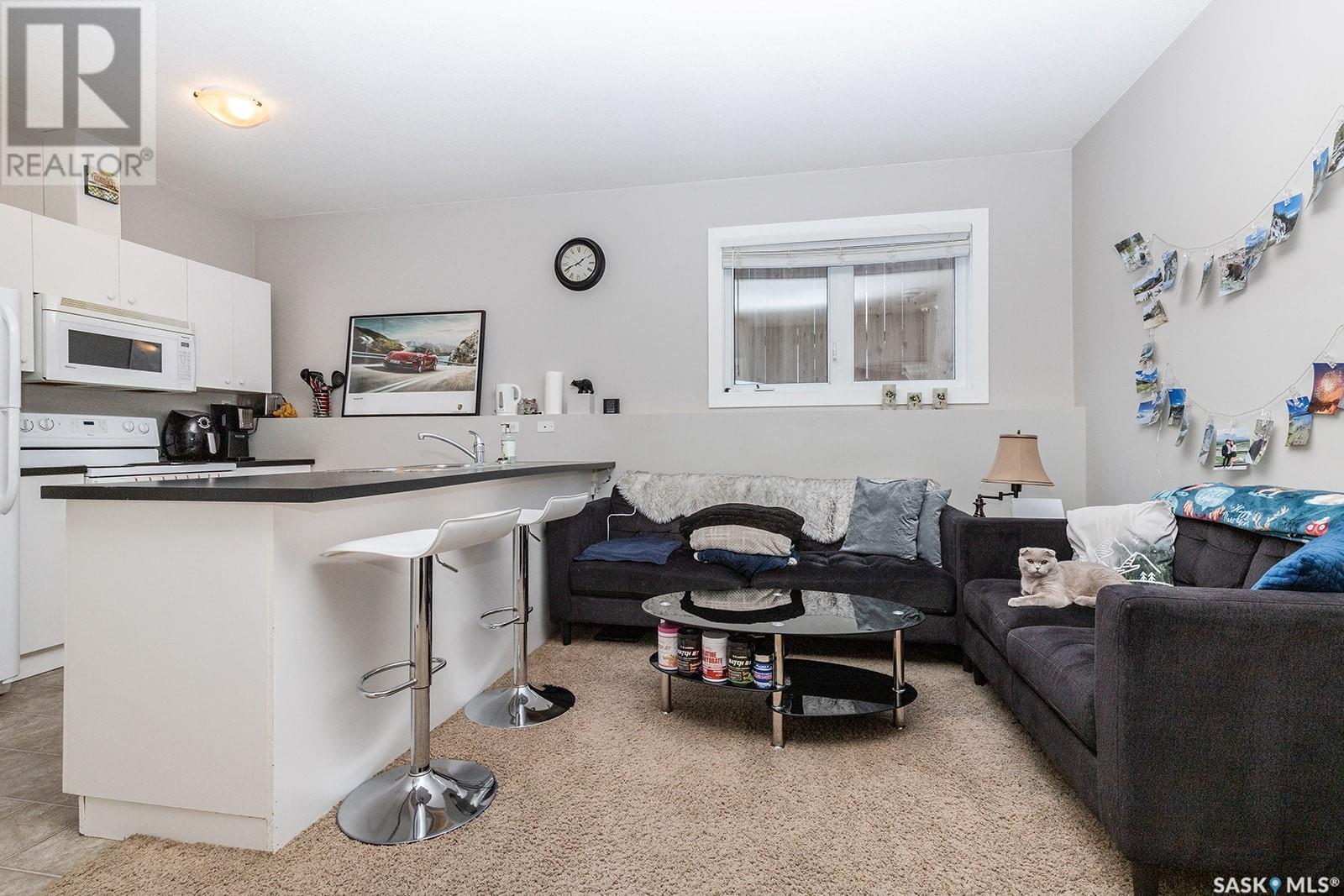 This modified bi-level is definitely not the same as most you see in Saskatoon, The second level features a large bonus space with lots of natural light overlooking the main floor. The large eat-in kitchen is separated from the living room, The kitchen has lots of cabinets with under mount lighting, island, soft close doors and drawers, walk-in pantry, built-in micorwave, gas stove and garden doors to a large deck. The primary bedroom features walk-in closet and 4 piece en-suite with air jet tub. In the lower level there is an open area that would work well for an additional entertaining space, 2 additional bedrooms and another 4 piece bath. The legal one bedroom suite with a private entrance has a functional layout. Additional features are Hunter Douglas blinds throughout, under deck storage and a natural gas bbq hook up, The Vivant monitored security system can be leased by new owner. Call your favourite Saskatoon Reatlor® to view. (id:22211)