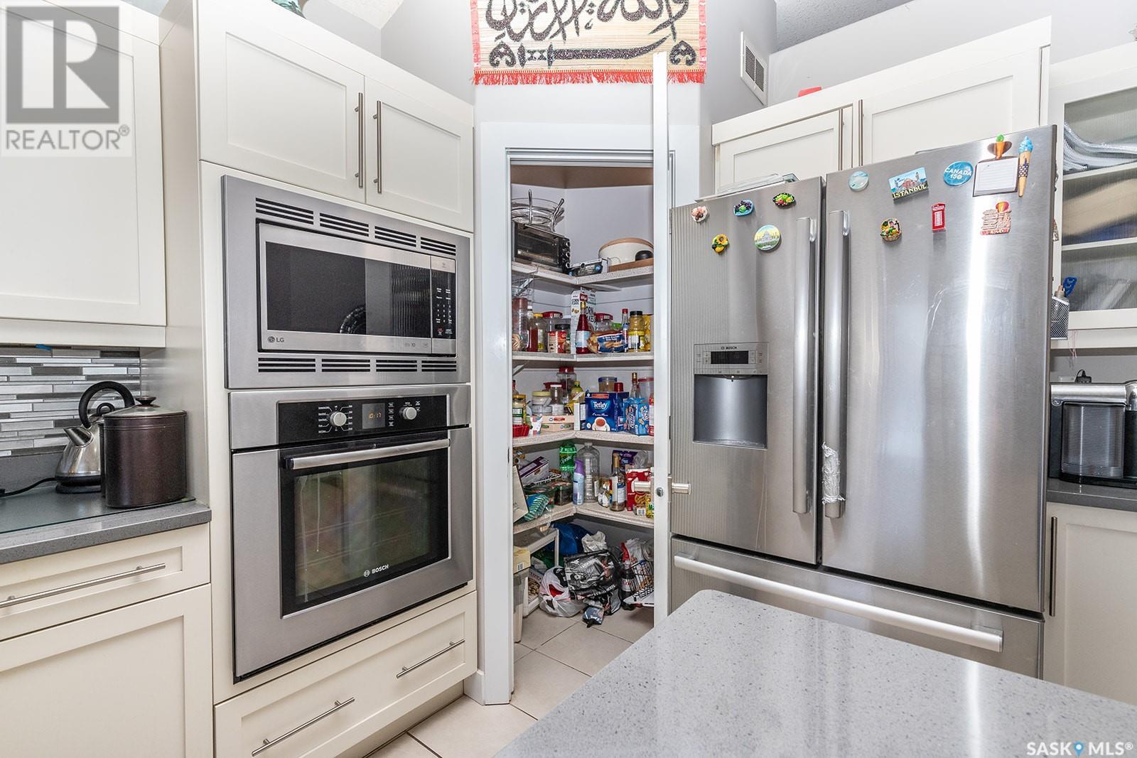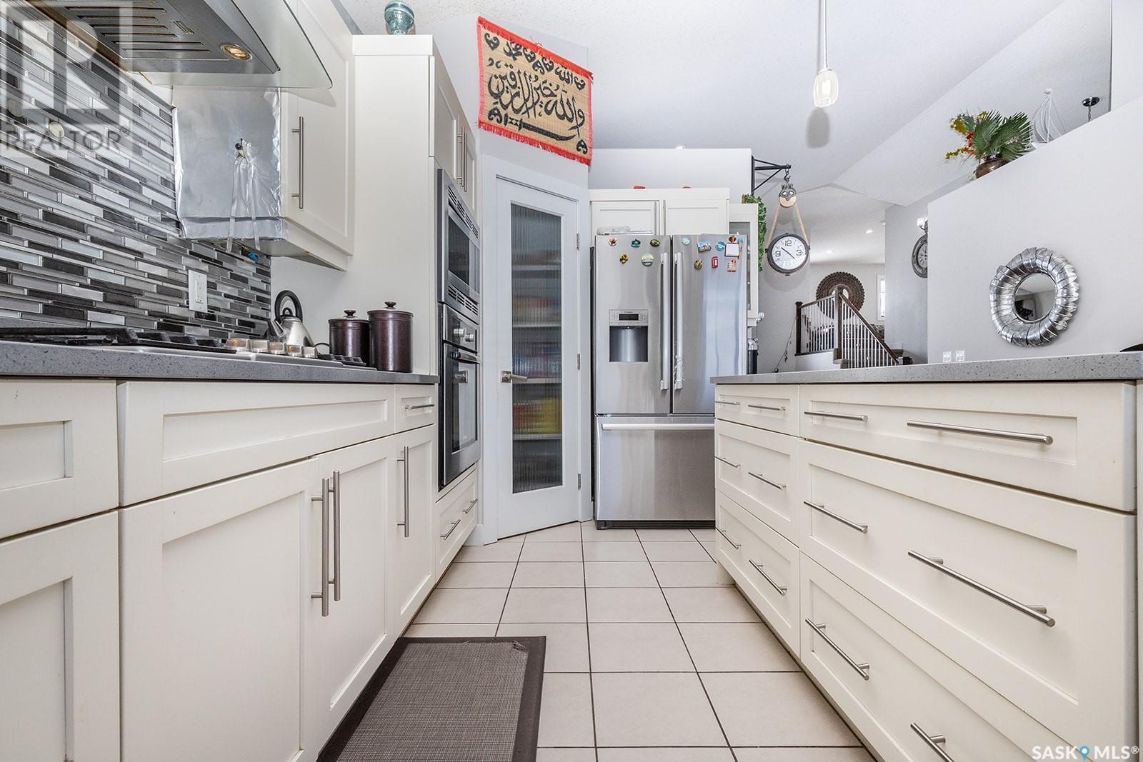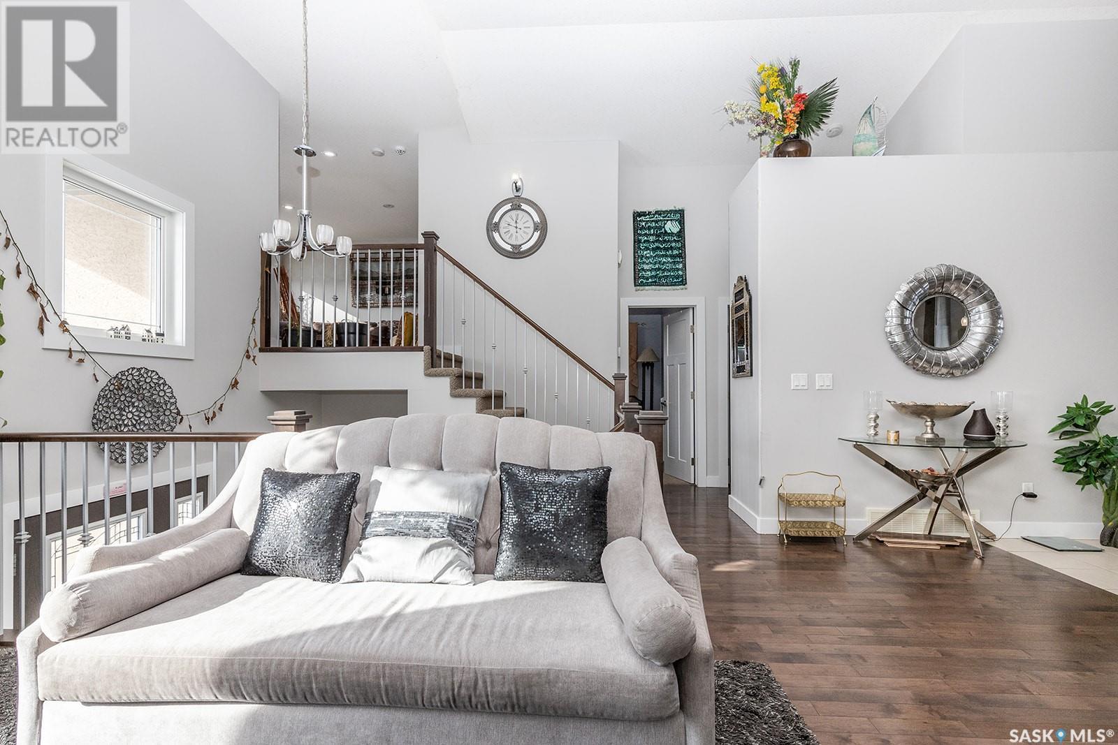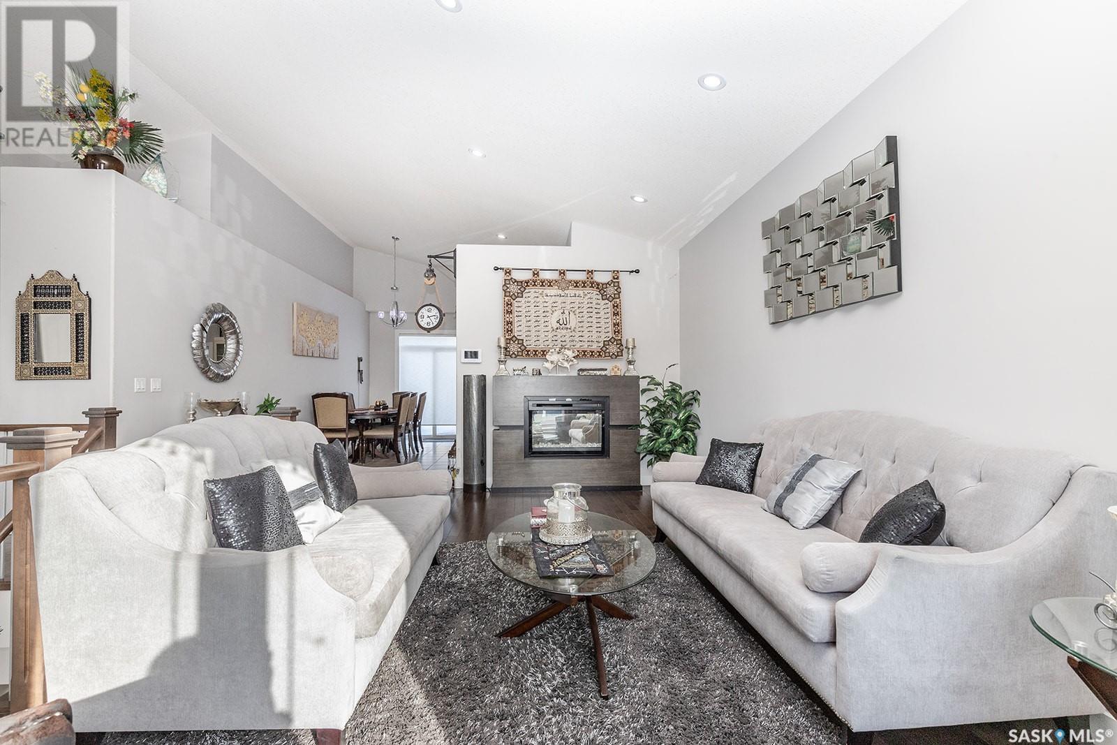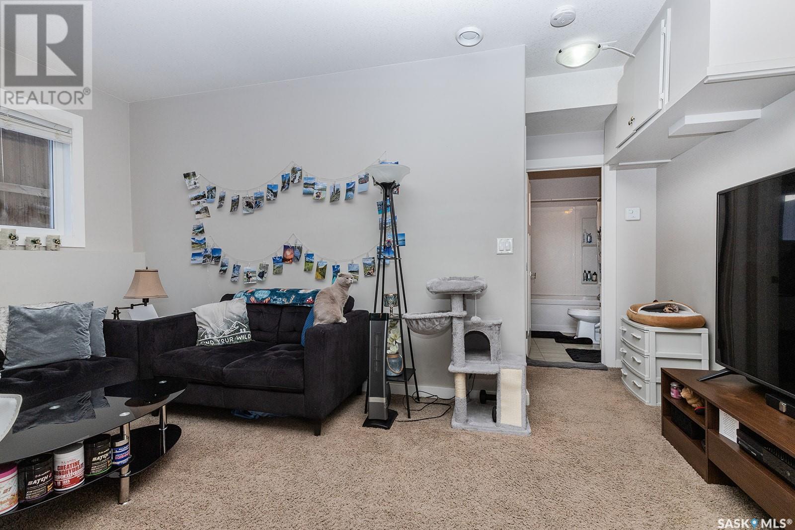 This modified bi-level is definitely not the same as most you see in Saskatoon, The second level features a large bonus space with lots of natural light overlooking the main floor. The large eat-in kitchen is separated from the living room, The kitchen has lots of cabinets with under mount lighting, island, soft close doors and drawers, walk-in pantry, built-in micorwave, gas stove and garden doors to a large deck. The primary bedroom features walk-in closet and 4 piece en-suite with air jet tub. In the lower level there is an open area that would work well for an additional entertaining space, 2 additional bedrooms and another 4 piece bath. The legal one bedroom suite with a private entrance has a functional layout. Additional features are Hunter Douglas blinds throughout, under deck storage and a natural gas bbq hook up, The Vivant monitored security system can be leased by new owner. Call your favourite Saskatoon Reatlor® to view. (id:22211)