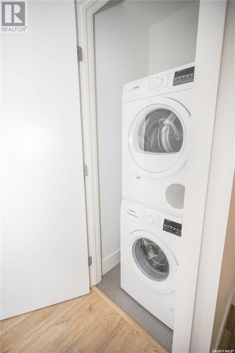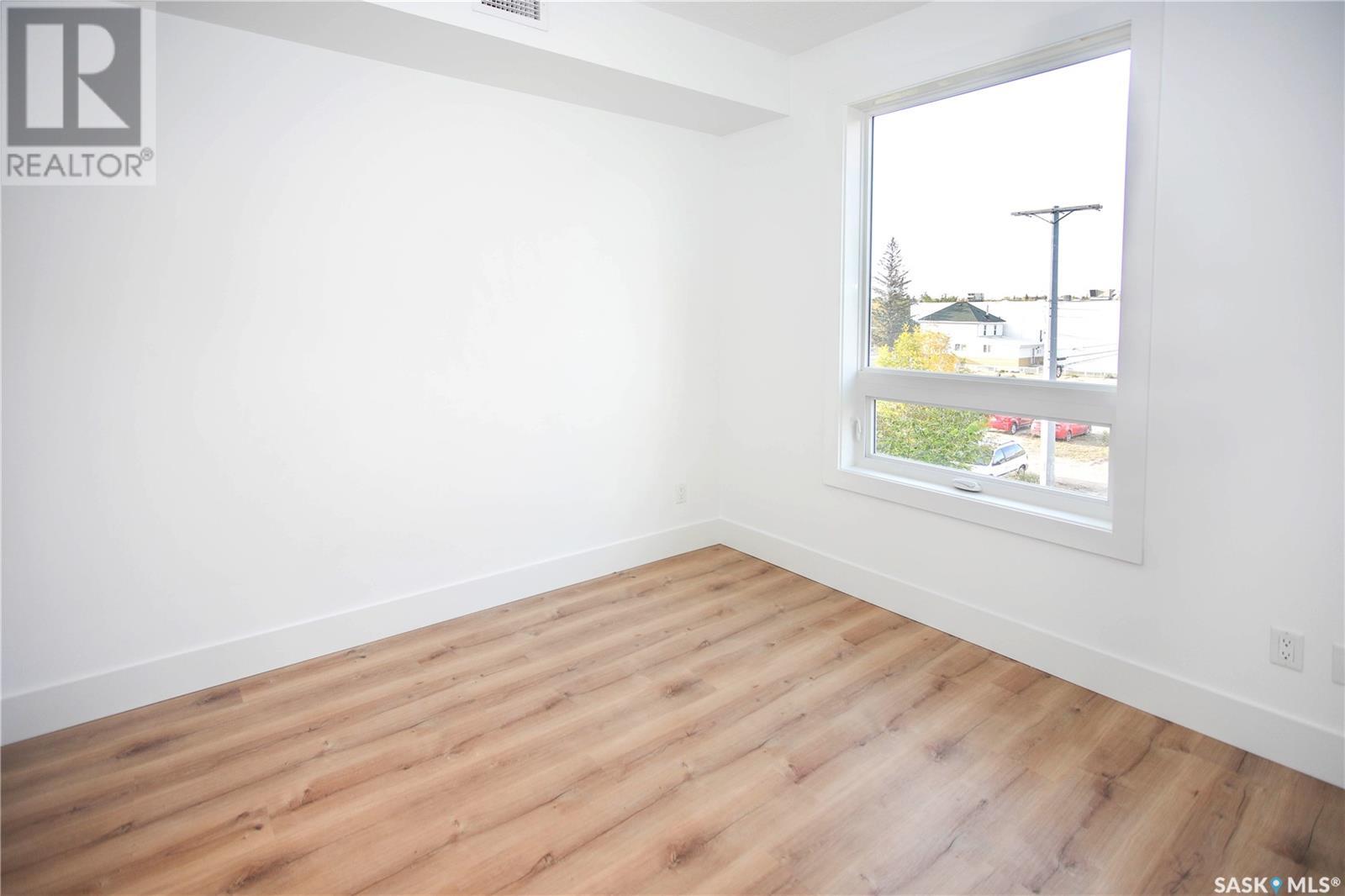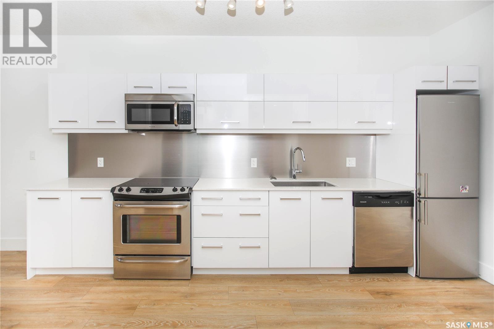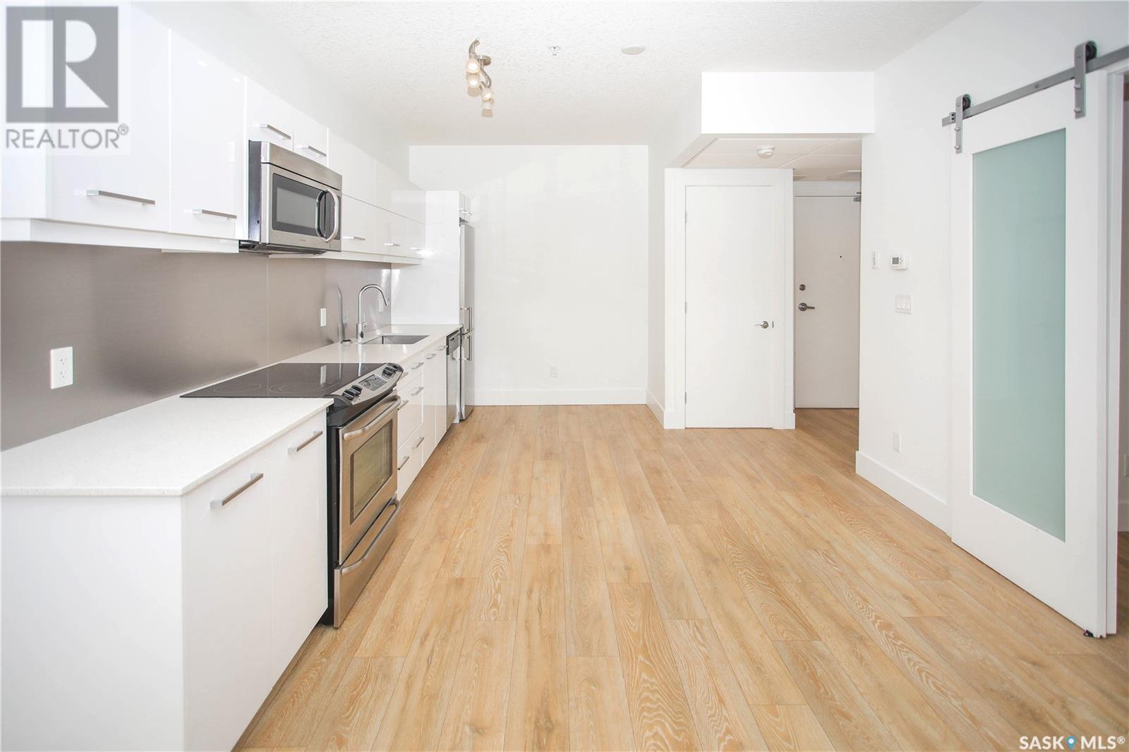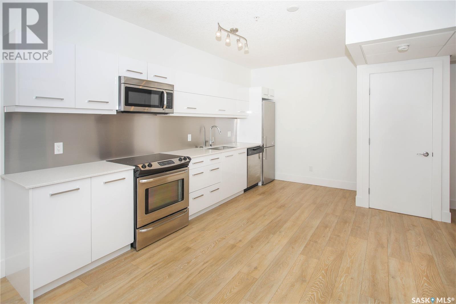 Discover urban living at its finest in this modern one-bedroom plus den condominium in the heart of downtown Riversdale. “The Banks” offers amenities such as a hair salon, massage therapy, and a coffee house/bakery. Nestled just steps away from the vibrant downtown scene and the tranquil riverfront, this condo offers the perfect blend of convenience and serenity. Step inside to find a sleek and stylish interior featuring quartz countertops, stainless steel appliances, and an open layout that maximizes space and flow. Natural light pours in through large windows, illuminating the laminate flooring throughout, except for the beautifully tiled bathroom. Enjoy the convenience of underground parking, a covered balcony perfect for sipping your morning coffee or evening cocktails, and the in-suite laundry. Whether you're a young professional or looking to downsize, this condo is a true gem. Don't miss the opportunity to make downtown Riversdale your new home. Schedule a viewing today and experience the best of city living! (id:22211)