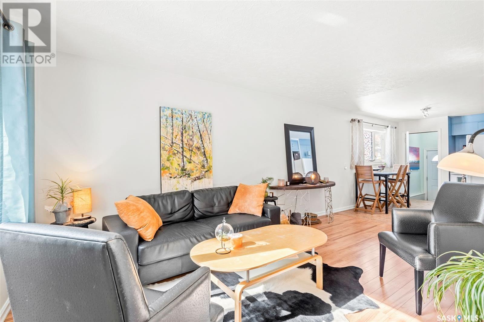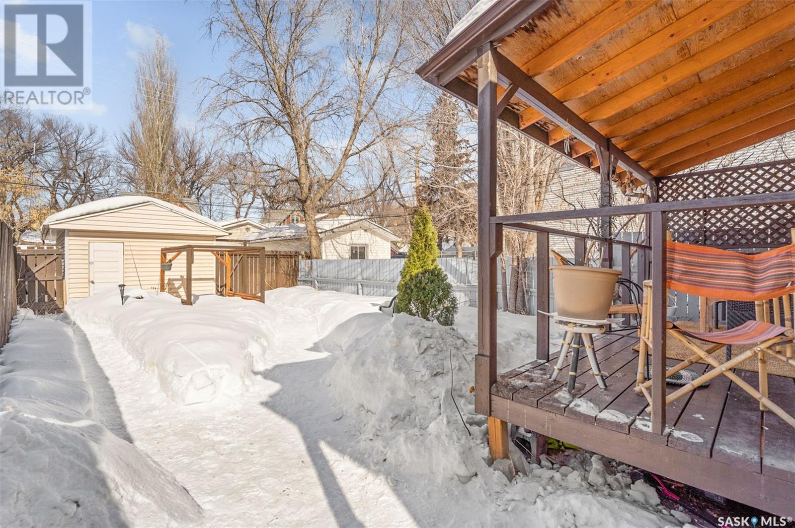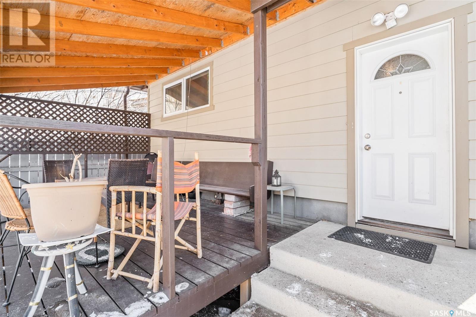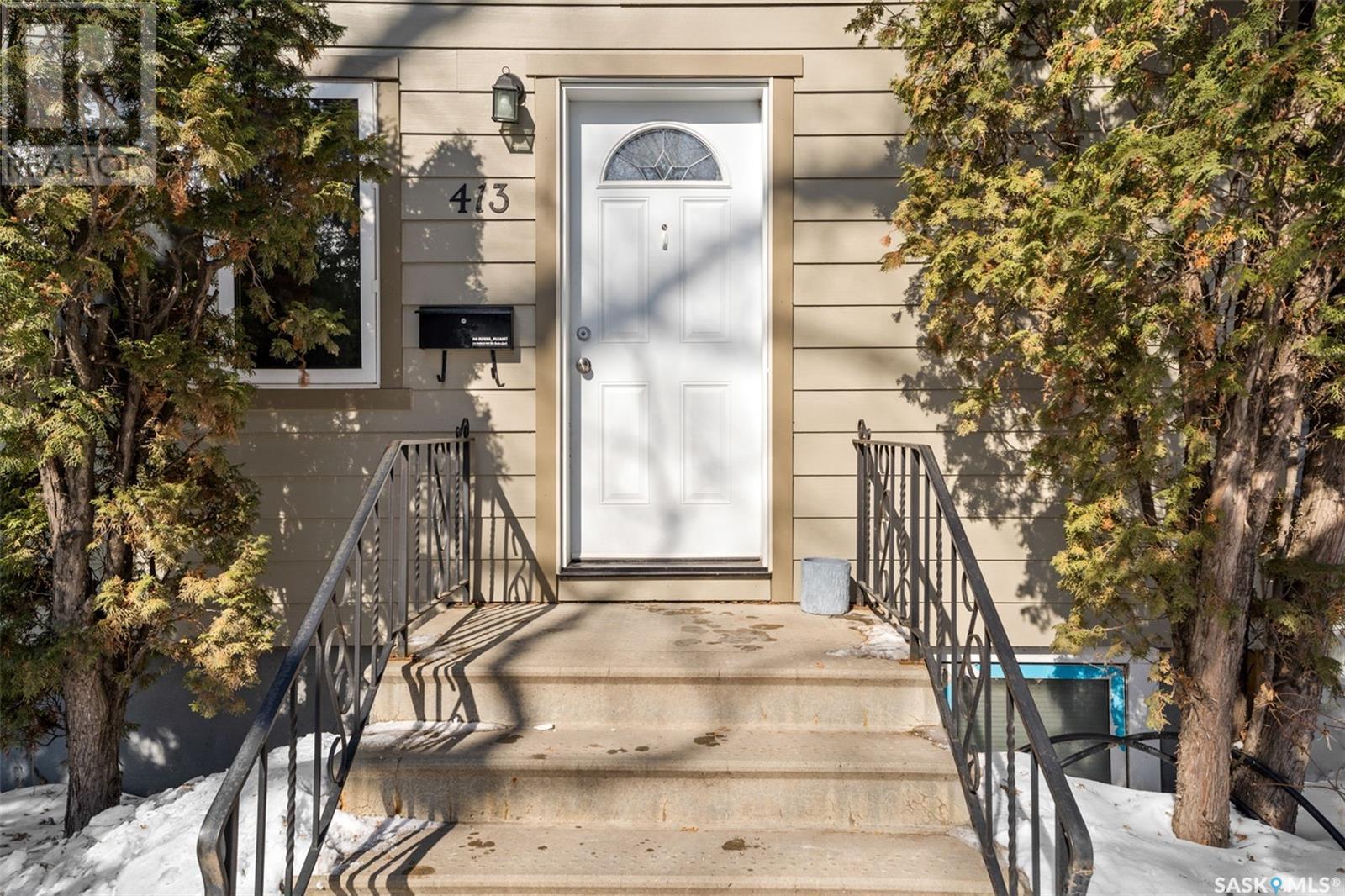 Welcome to 413 Main Street East located in the extremely popular and ever walkable Nutana. This 756 sqft raised bungalow has a ton of upgrades, as well as -the opportunity for BONOUS INCOME but you'll have to keep reading to find out. On the main floor you have an open concept living/ dining and kitchen. With two bedrooms tucked to the side with a 4-piece washroom separating the two. The Kitchen is off the back of the house with access to the large covered deck. The kitchen cabinets have recently been repainted, as well as new windows throughout the whole house- both UP and DOWN. Downstairs you enter into a storage/ den space, then onto your non-conforming suite. The suite features a large pantry, open kitchen, dining and living with one bedroom at the front of the property with a 4-piece washroom. Downstairs there is also a shared laundry and storage space. In the back of your 25x139ft lot you have a single detached garage, and separate parking space. The best part of this property is its location! NOT only for the walkability to downtown, las palapas, homestead ice cream and broadway but because its zoned RM3. Which makes this the perfect holding property for any investors looking to build a multi family apartment building at some point. With new shingles, eaves, facia, siding, electrical panel, mechanical, and AC there is tons of potential in this space for now and in the future. Contact your favorite Realtor® today! (id:22211)