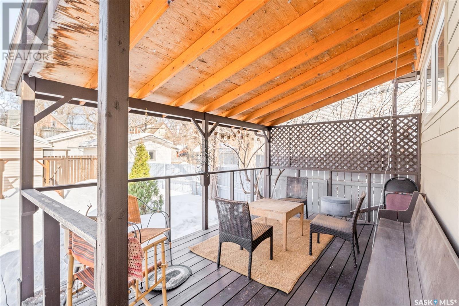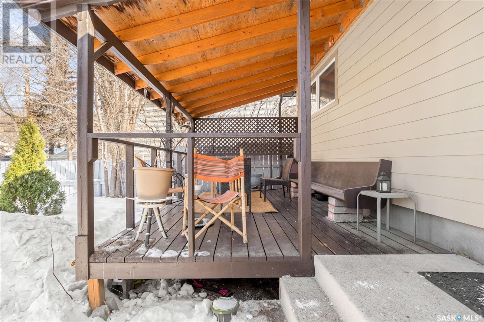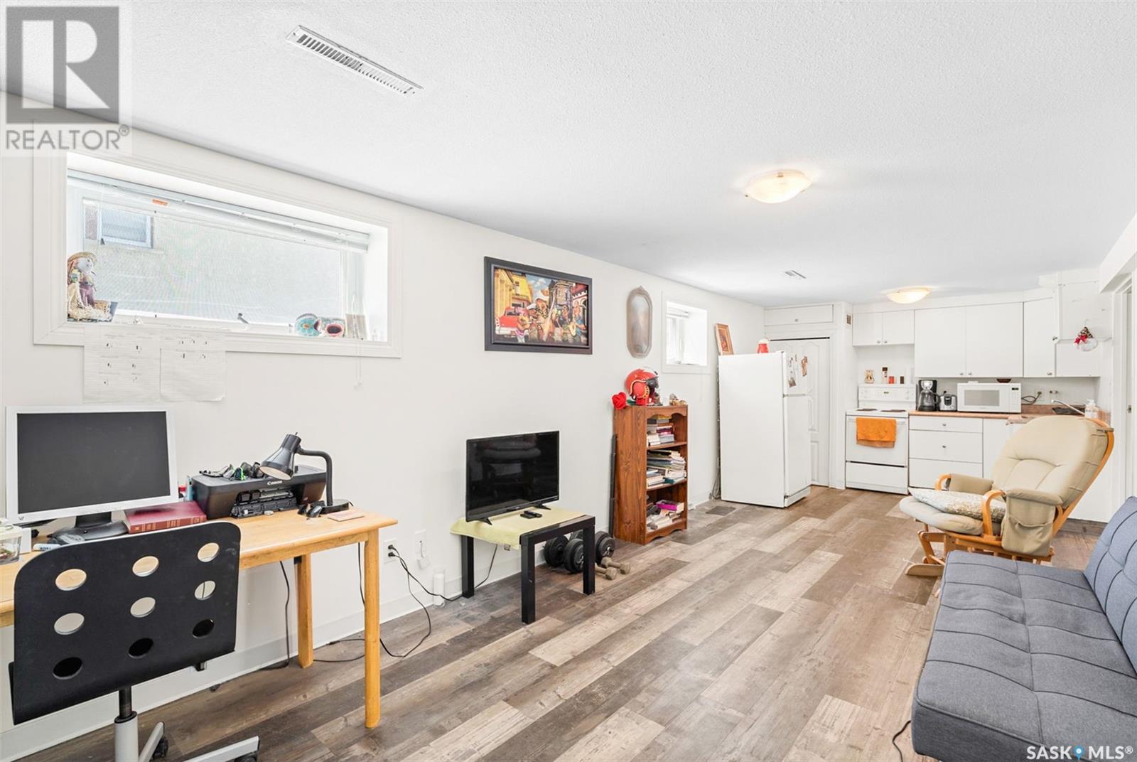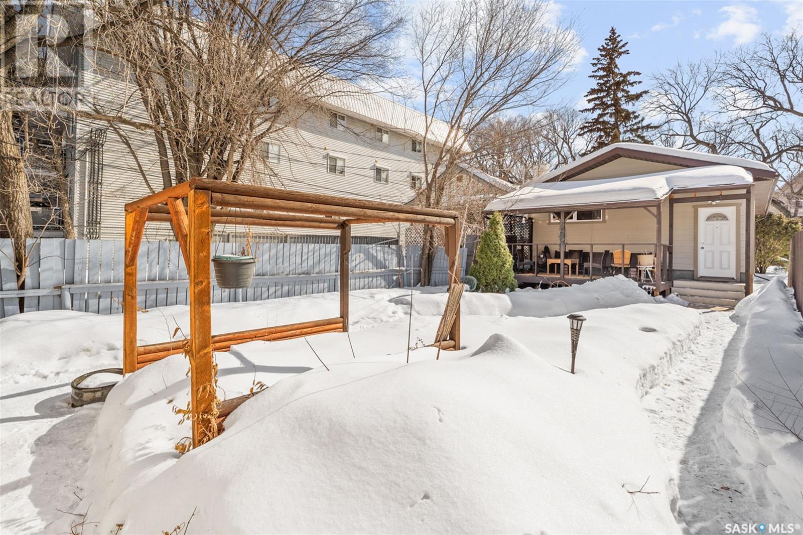 Welcome to 413 Main Street East located in the extremely popular and ever walkable Nutana. This 756 sqft raised bungalow has a ton of upgrades, as well as -the opportunity for BONOUS INCOME but you'll have to keep reading to find out. On the main floor you have an open concept living/ dining and kitchen. With two bedrooms tucked to the side with a 4-piece washroom separating the two. The Kitchen is off the back of the house with access to the large covered deck. The kitchen cabinets have recently been repainted, as well as new windows throughout the whole house- both UP and DOWN. Downstairs you enter into a storage/ den space, then onto your non-conforming suite. The suite features a large pantry, open kitchen, dining and living with one bedroom at the front of the property with a 4-piece washroom. Downstairs there is also a shared laundry and storage space. In the back of your 25x139ft lot you have a single detached garage, and separate parking space. The best part of this property is its location! NOT only for the walkability to downtown, las palapas, homestead ice cream and broadway but because its zoned RM3. Which makes this the perfect holding property for any investors looking to build a multi family apartment building at some point. With new shingles, eaves, facia, siding, electrical panel, mechanical, and AC there is tons of potential in this space for now and in the future. Contact your favorite Realtor® today! (id:22211)