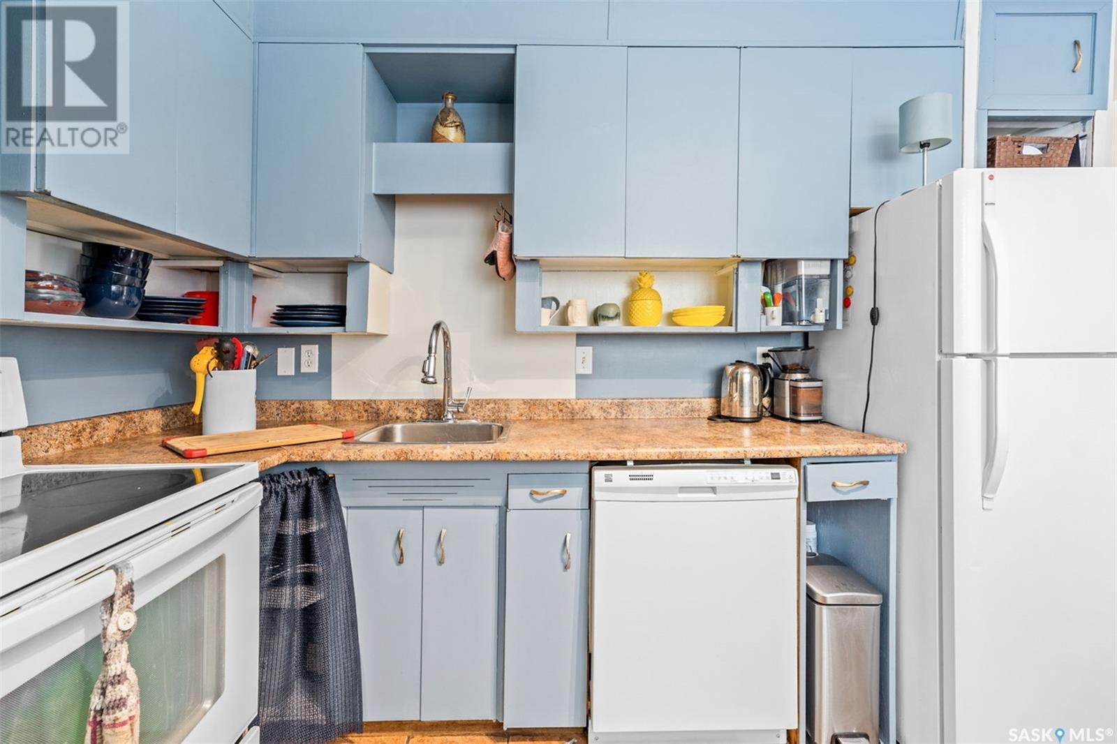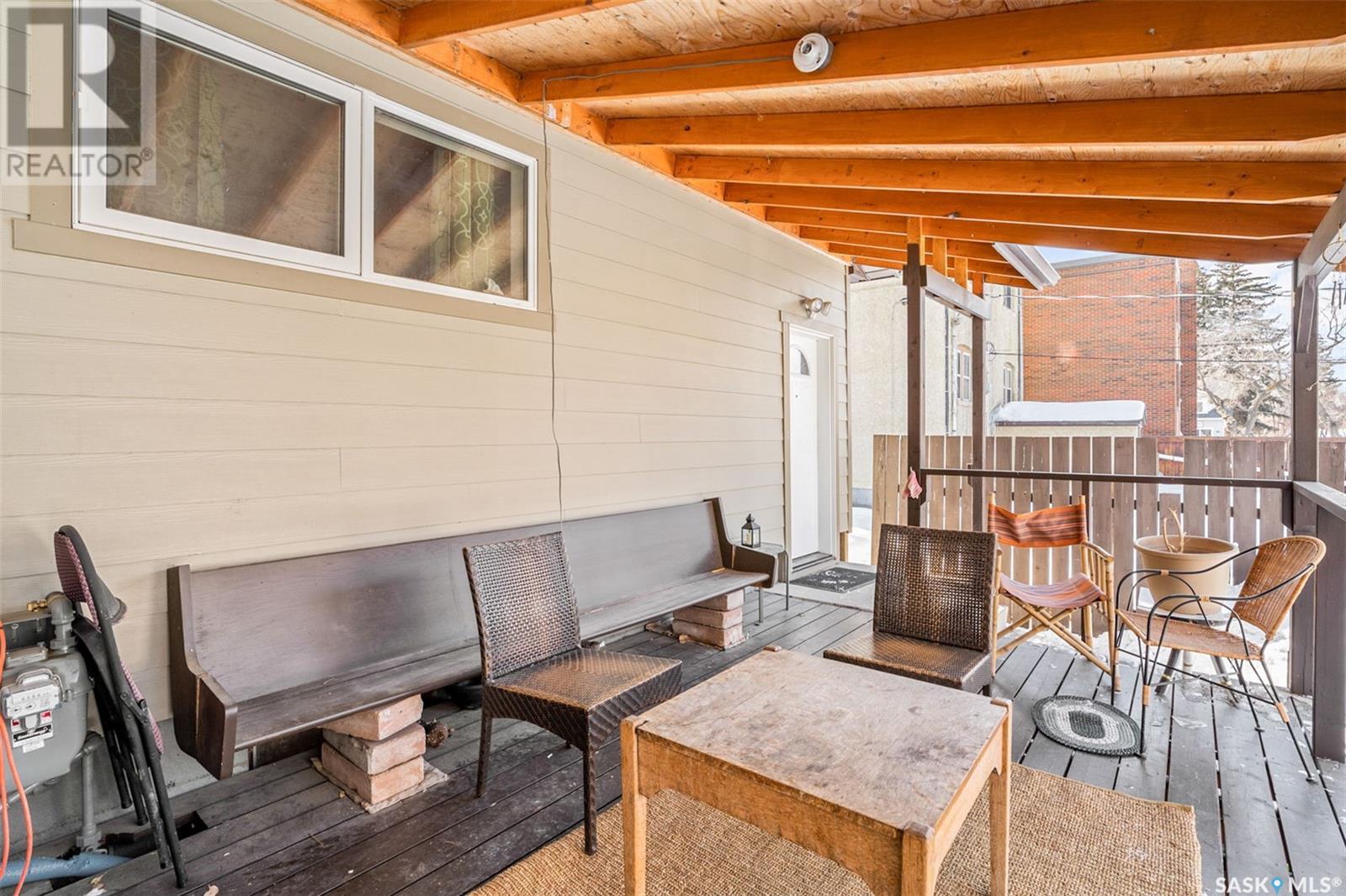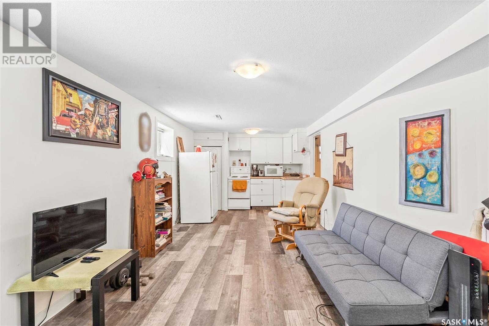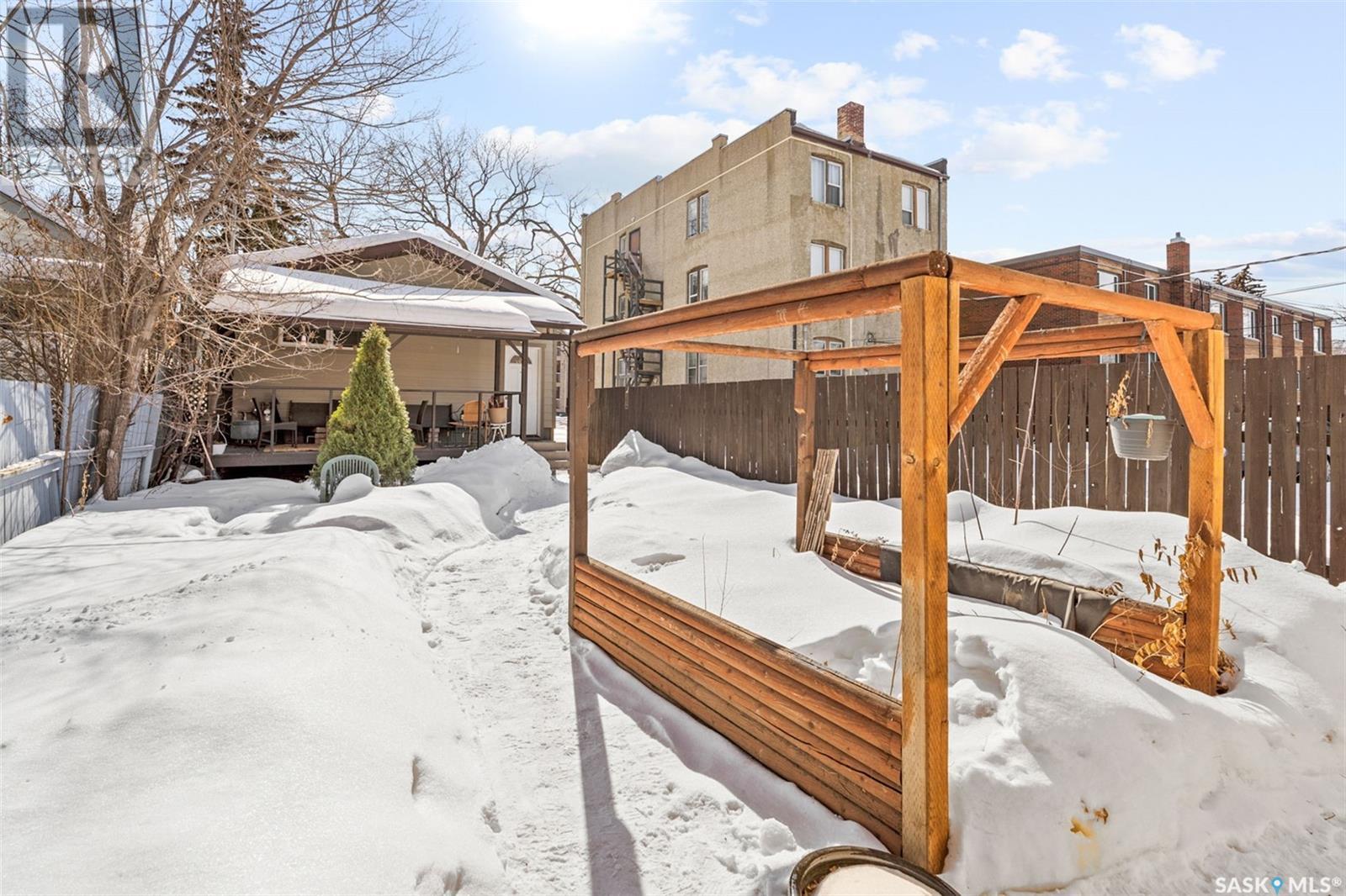 Welcome to 413 Main Street East located in the extremely popular and ever walkable Nutana. This 756 sqft raised bungalow has a ton of upgrades, as well as -the opportunity for BONOUS INCOME but you'll have to keep reading to find out. On the main floor you have an open concept living/ dining and kitchen. With two bedrooms tucked to the side with a 4-piece washroom separating the two. The Kitchen is off the back of the house with access to the large covered deck. The kitchen cabinets have recently been repainted, as well as new windows throughout the whole house- both UP and DOWN. Downstairs you enter into a storage/ den space, then onto your non-conforming suite. The suite features a large pantry, open kitchen, dining and living with one bedroom at the front of the property with a 4-piece washroom. Downstairs there is also a shared laundry and storage space. In the back of your 25x139ft lot you have a single detached garage, and separate parking space. The best part of this property is its location! NOT only for the walkability to downtown, las palapas, homestead ice cream and broadway but because its zoned RM3. Which makes this the perfect holding property for any investors looking to build a multi family apartment building at some point. With new shingles, eaves, facia, siding, electrical panel, mechanical, and AC there is tons of potential in this space for now and in the future. Contact your favorite Realtor® today! (id:22211)