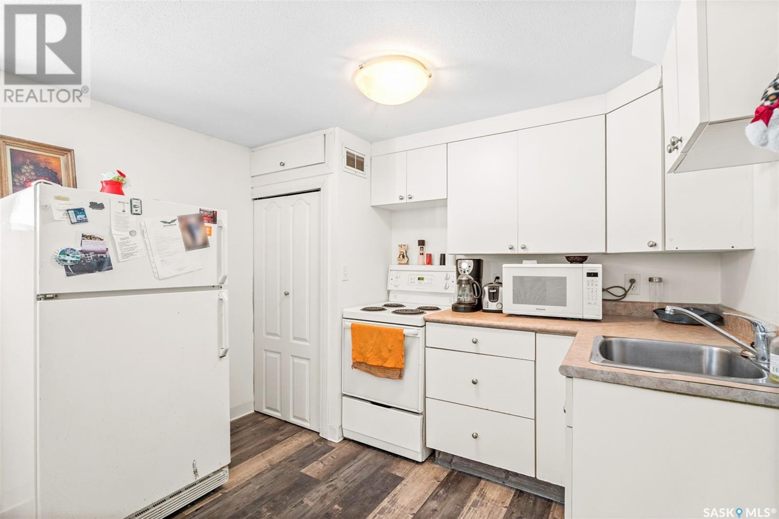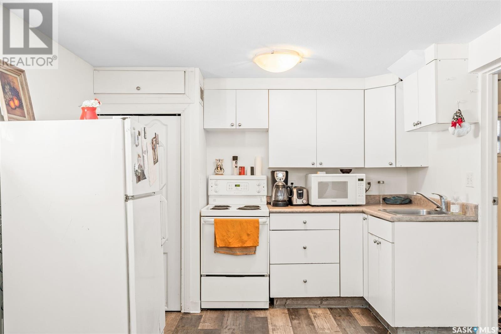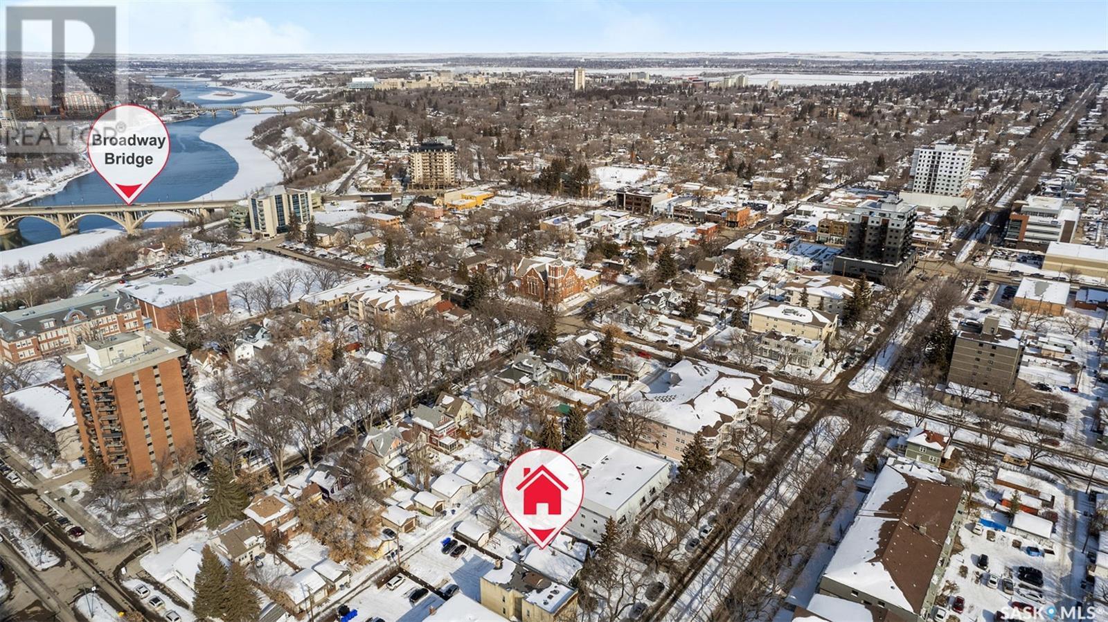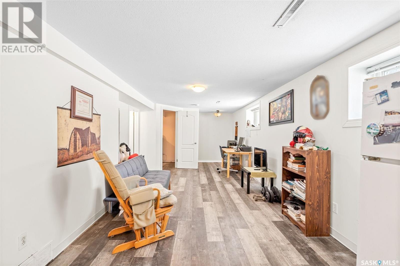 Welcome to 413 Main Street East located in the extremely popular and ever walkable Nutana. This 756 sqft raised bungalow has a ton of upgrades, as well as -the opportunity for BONOUS INCOME but you'll have to keep reading to find out. On the main floor you have an open concept living/ dining and kitchen. With two bedrooms tucked to the side with a 4-piece washroom separating the two. The Kitchen is off the back of the house with access to the large covered deck. The kitchen cabinets have recently been repainted, as well as new windows throughout the whole house- both UP and DOWN. Downstairs you enter into a storage/ den space, then onto your non-conforming suite. The suite features a large pantry, open kitchen, dining and living with one bedroom at the front of the property with a 4-piece washroom. Downstairs there is also a shared laundry and storage space. In the back of your 25x139ft lot you have a single detached garage, and separate parking space. The best part of this property is its location! NOT only for the walkability to downtown, las palapas, homestead ice cream and broadway but because its zoned RM3. Which makes this the perfect holding property for any investors looking to build a multi family apartment building at some point. With new shingles, eaves, facia, siding, electrical panel, mechanical, and AC there is tons of potential in this space for now and in the future. Contact your favorite Realtor® today! (id:22211)
